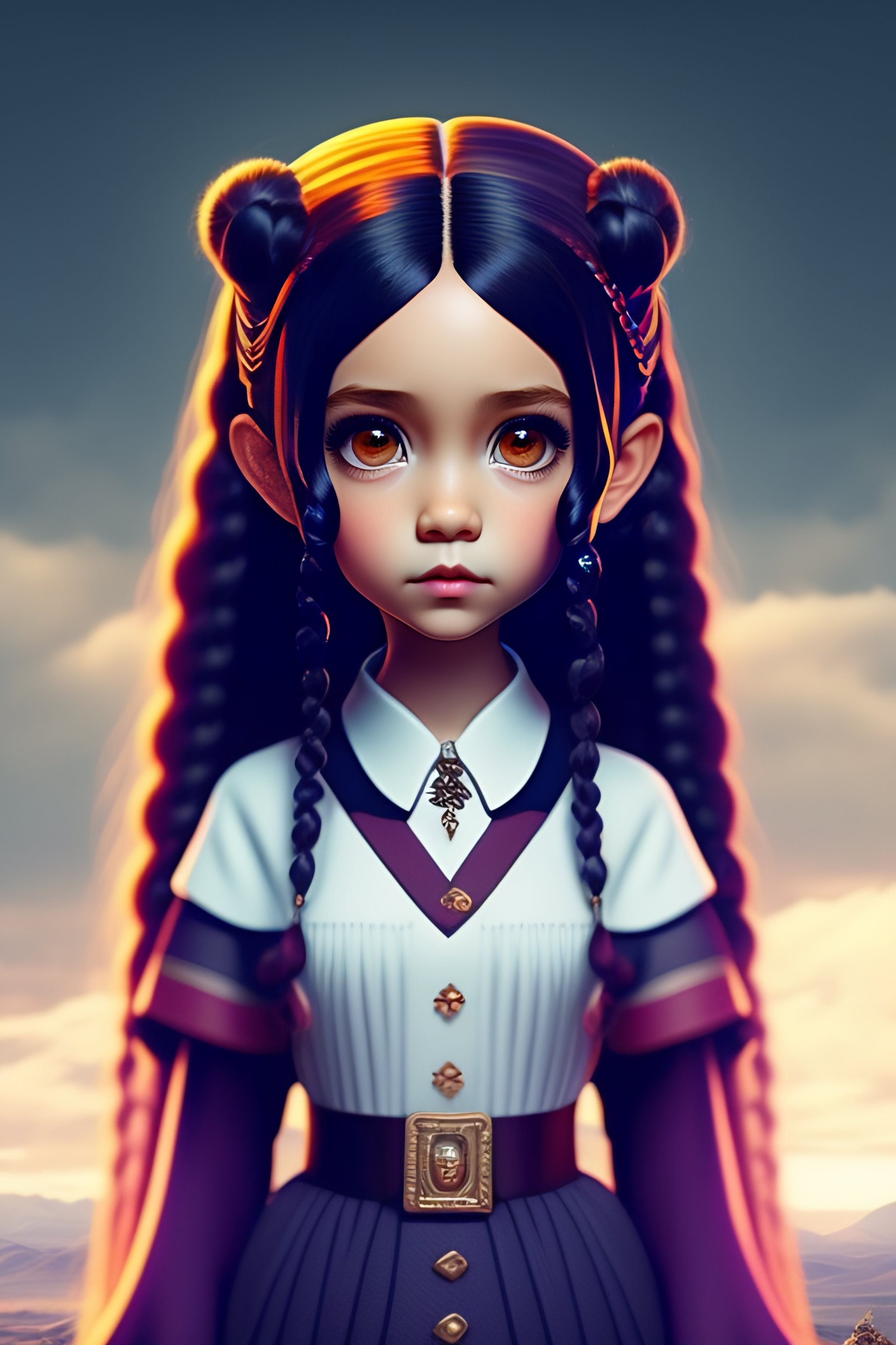 Wednesday pale gothic dark haired girl with braids jenna ortega tim burton anime retro 90s