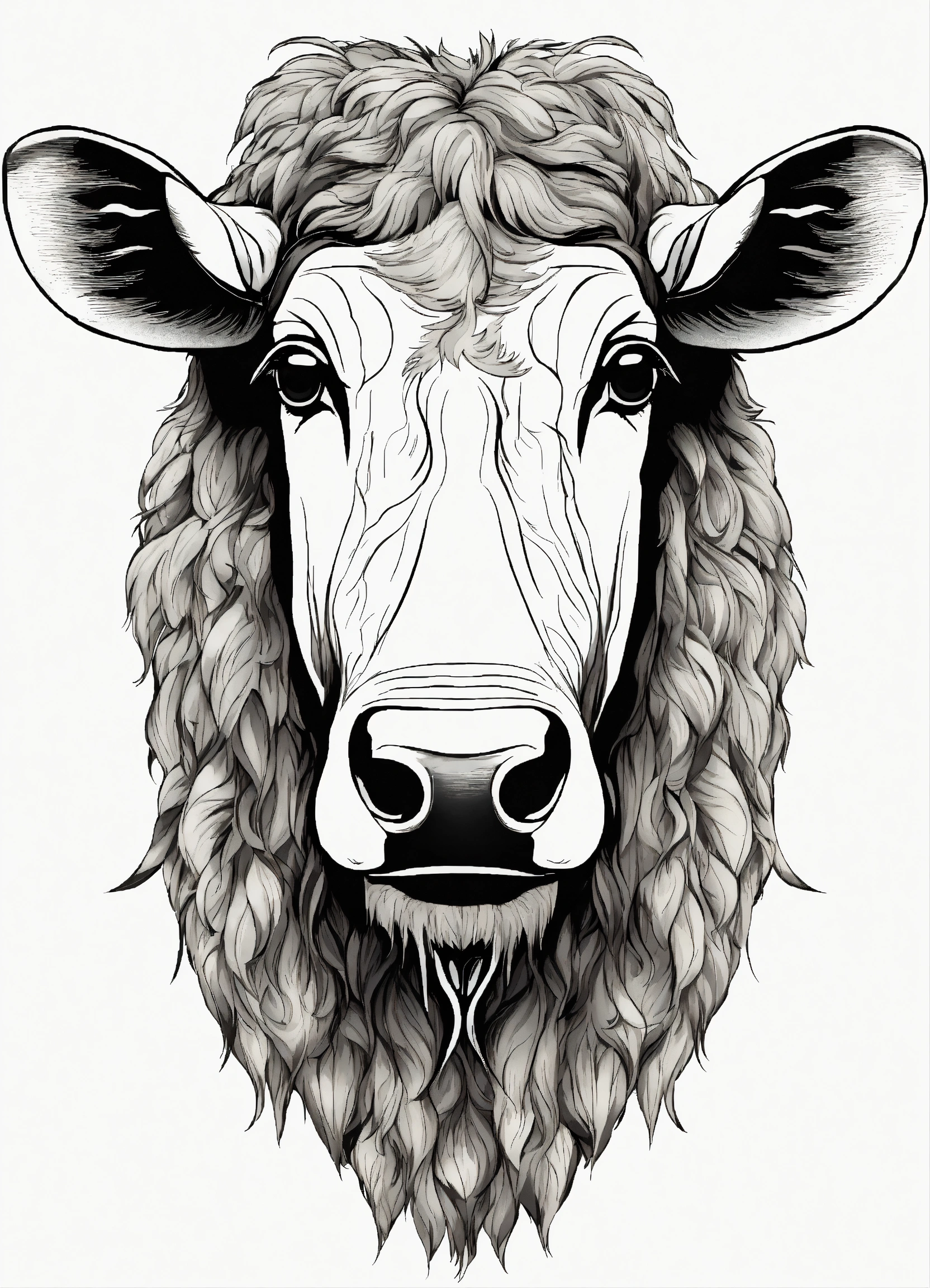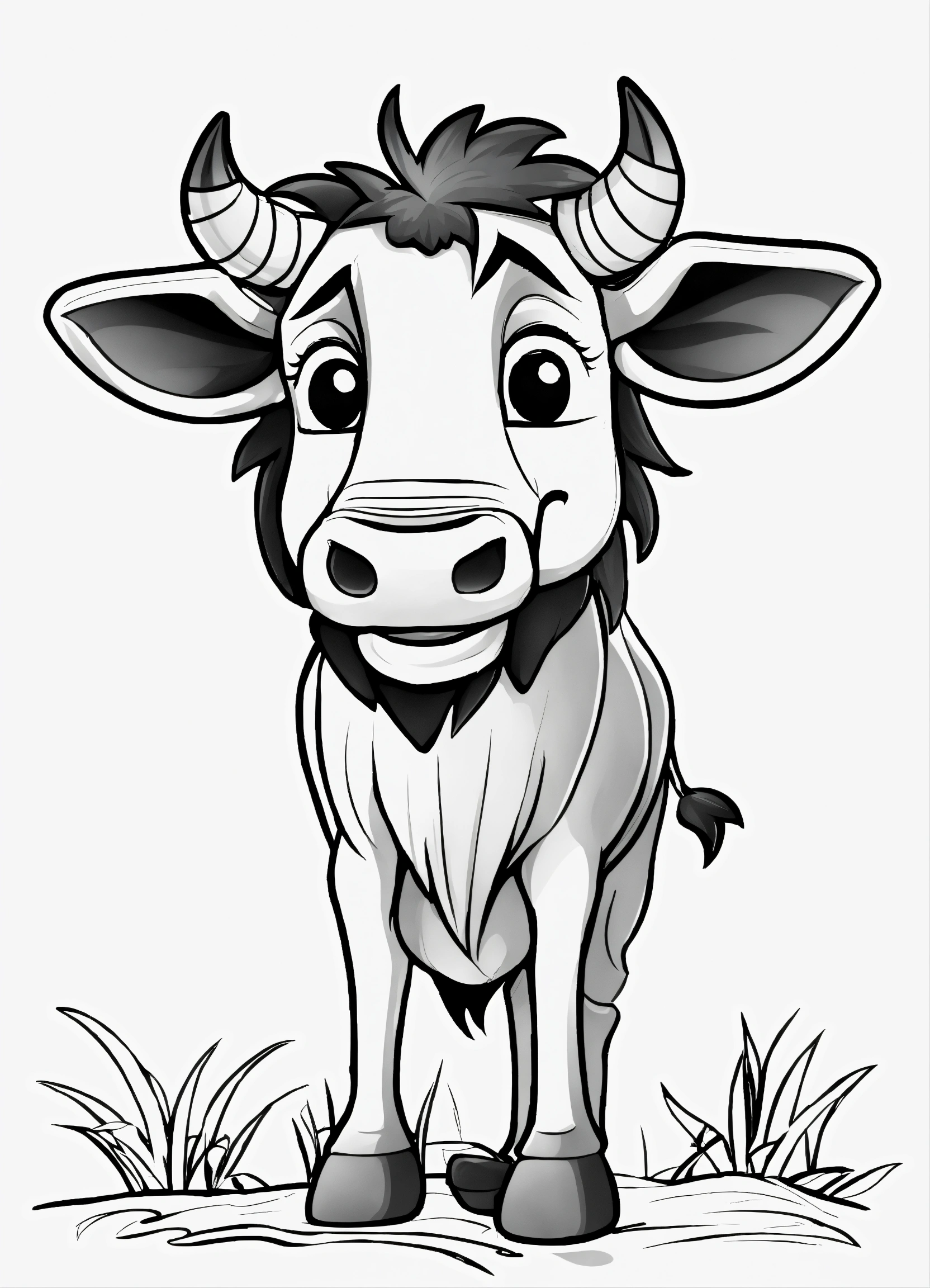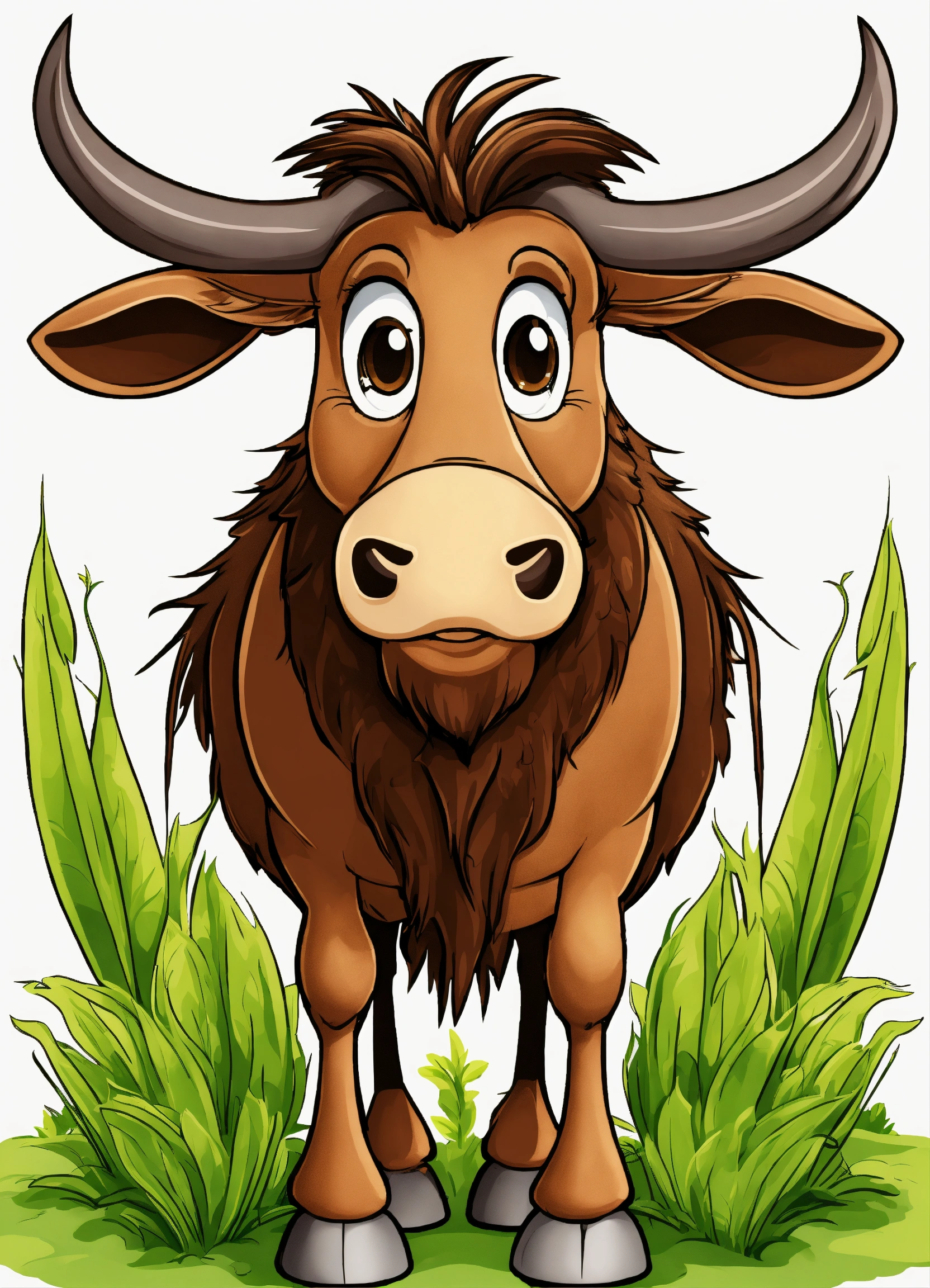 Generate a cute wildebeest illustration, resolution, cartoon-sticker style with clear lines on a pure white background suitable for a children's coloring book.