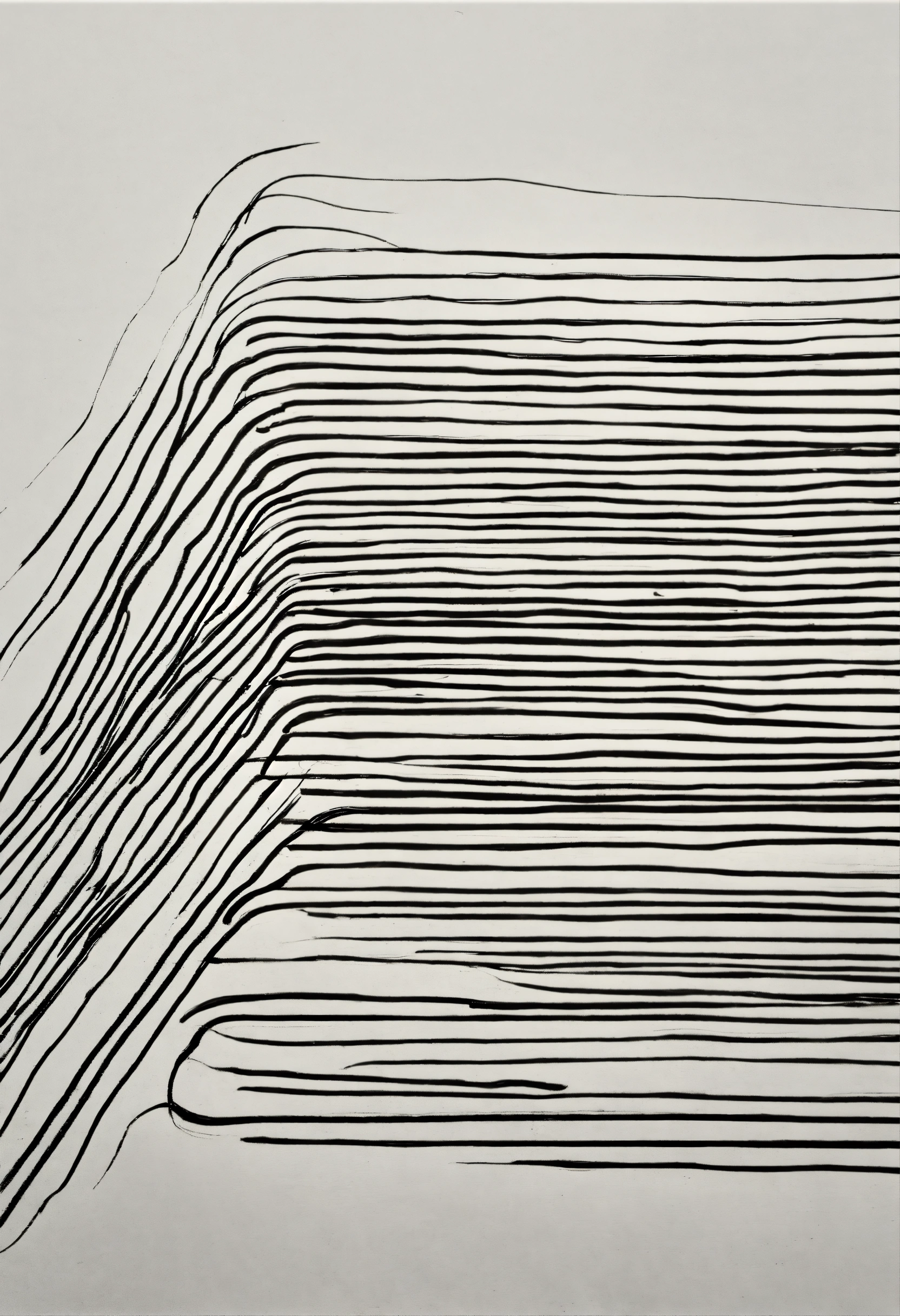 Painting of black lines drawing in white background, minimalist, simple, creative, some texture, 90s artistic style