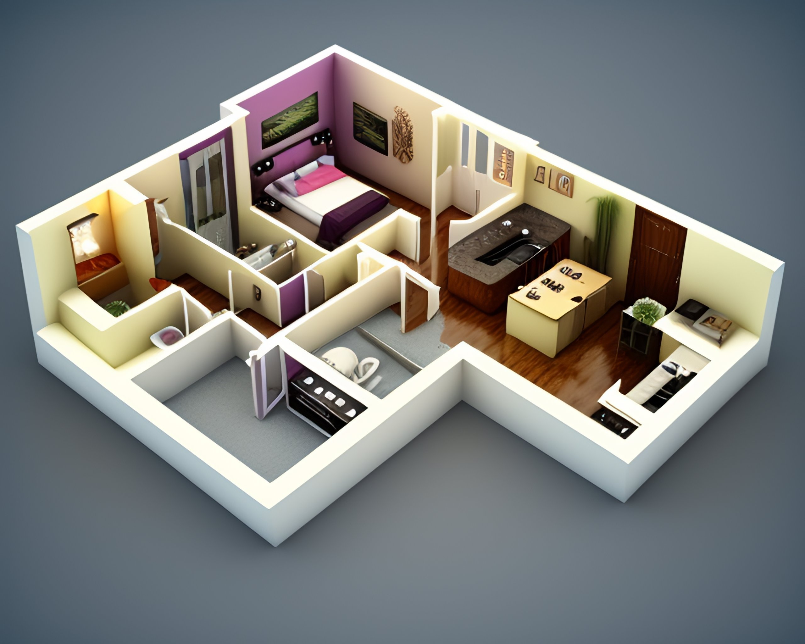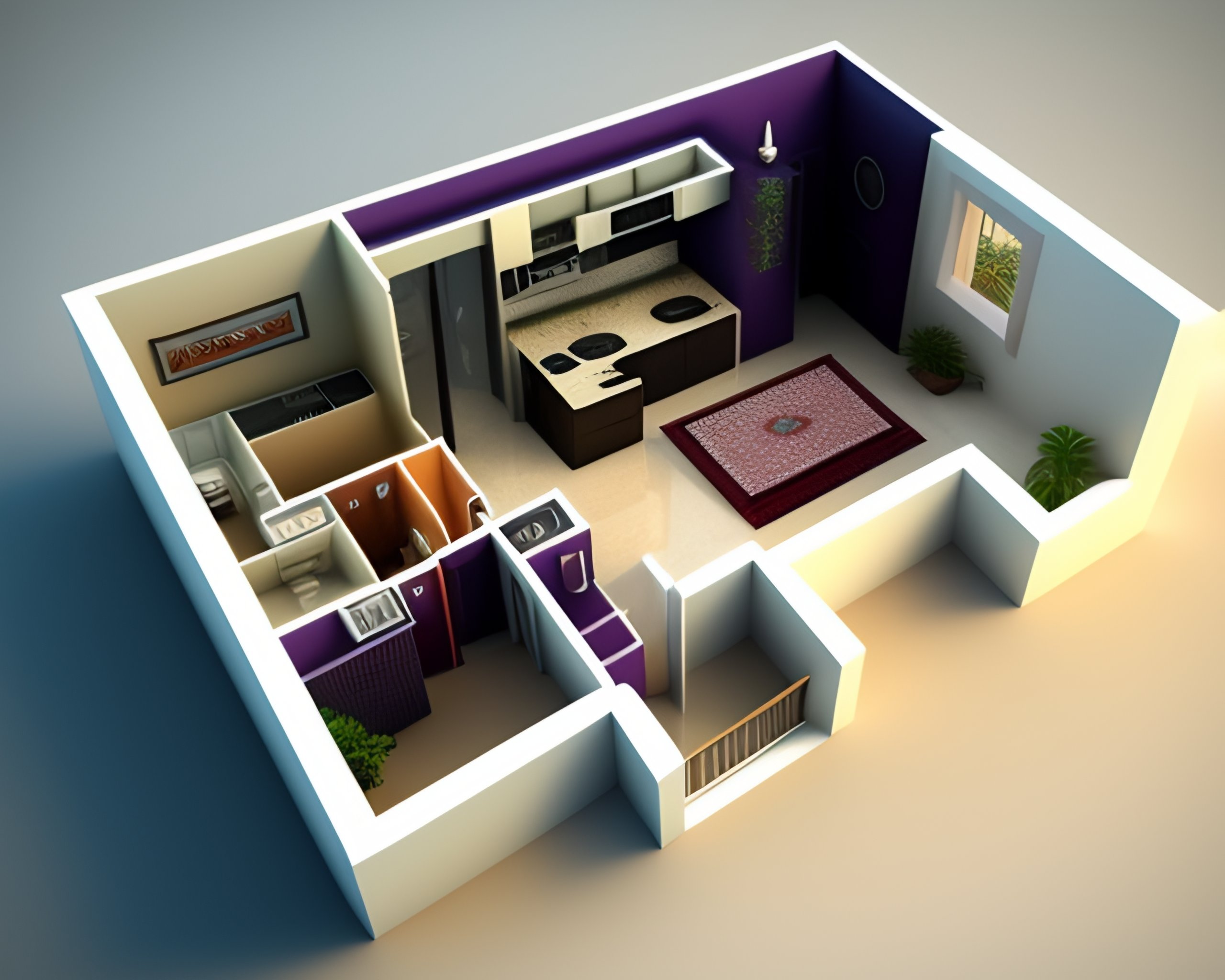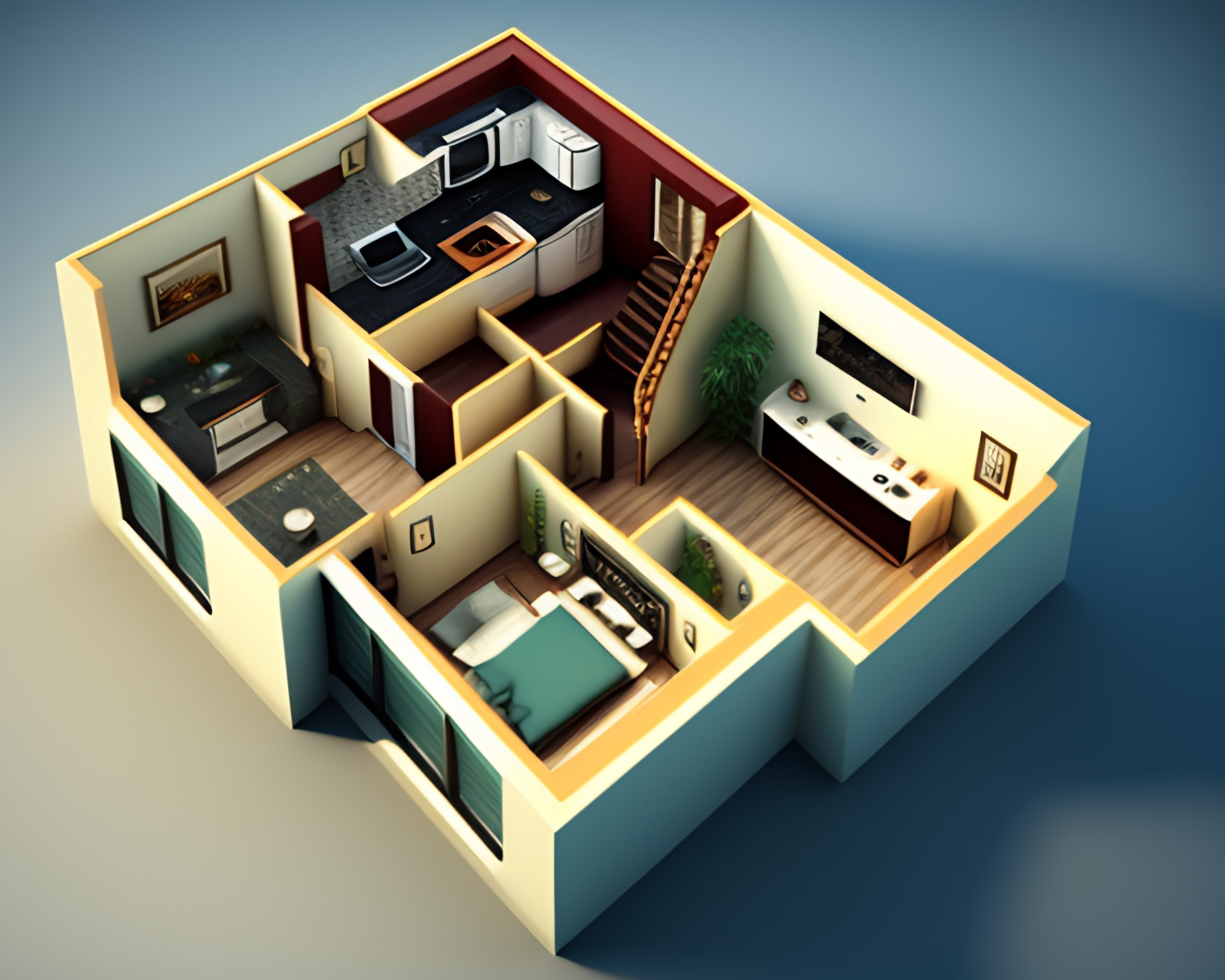 3d small house 1st floor plan design