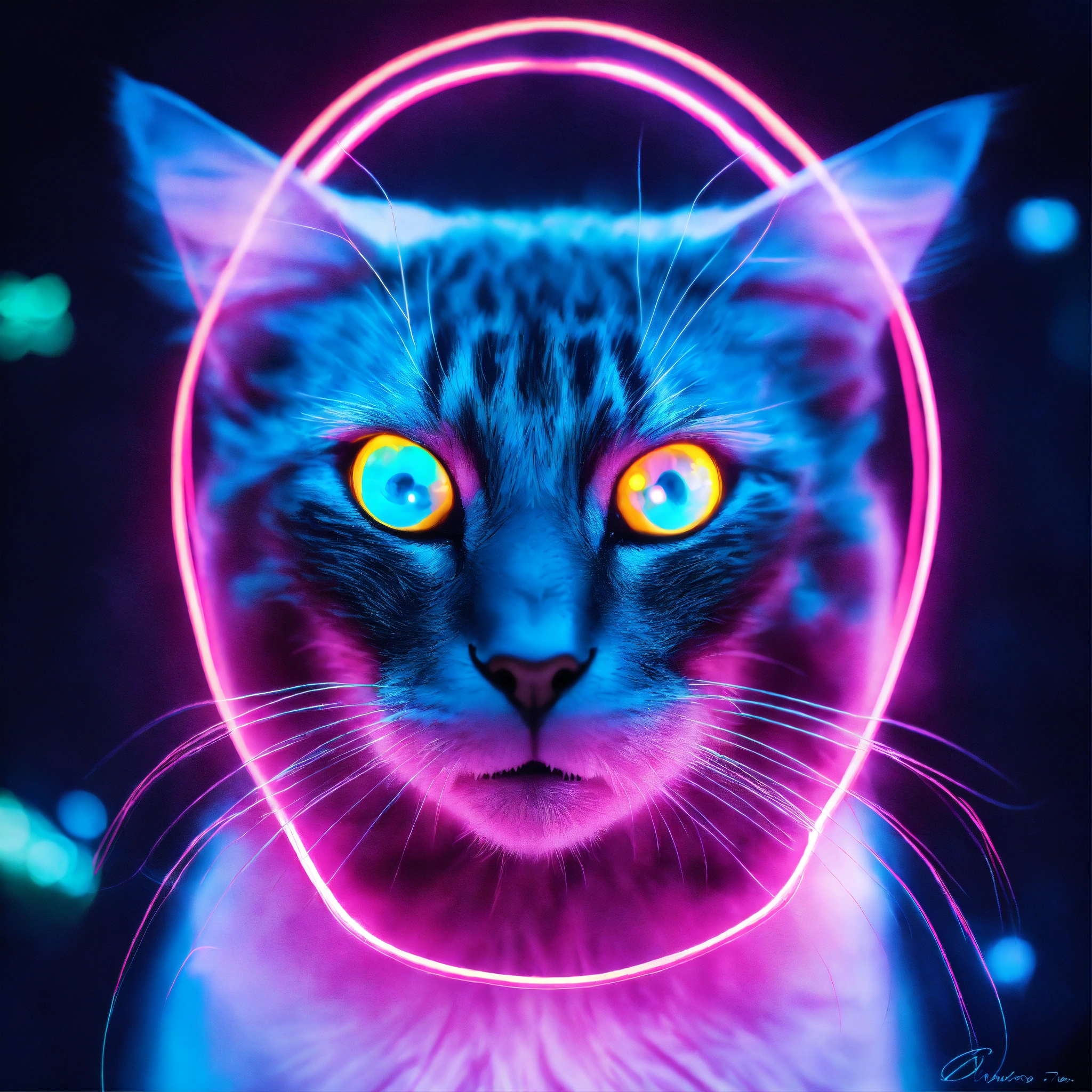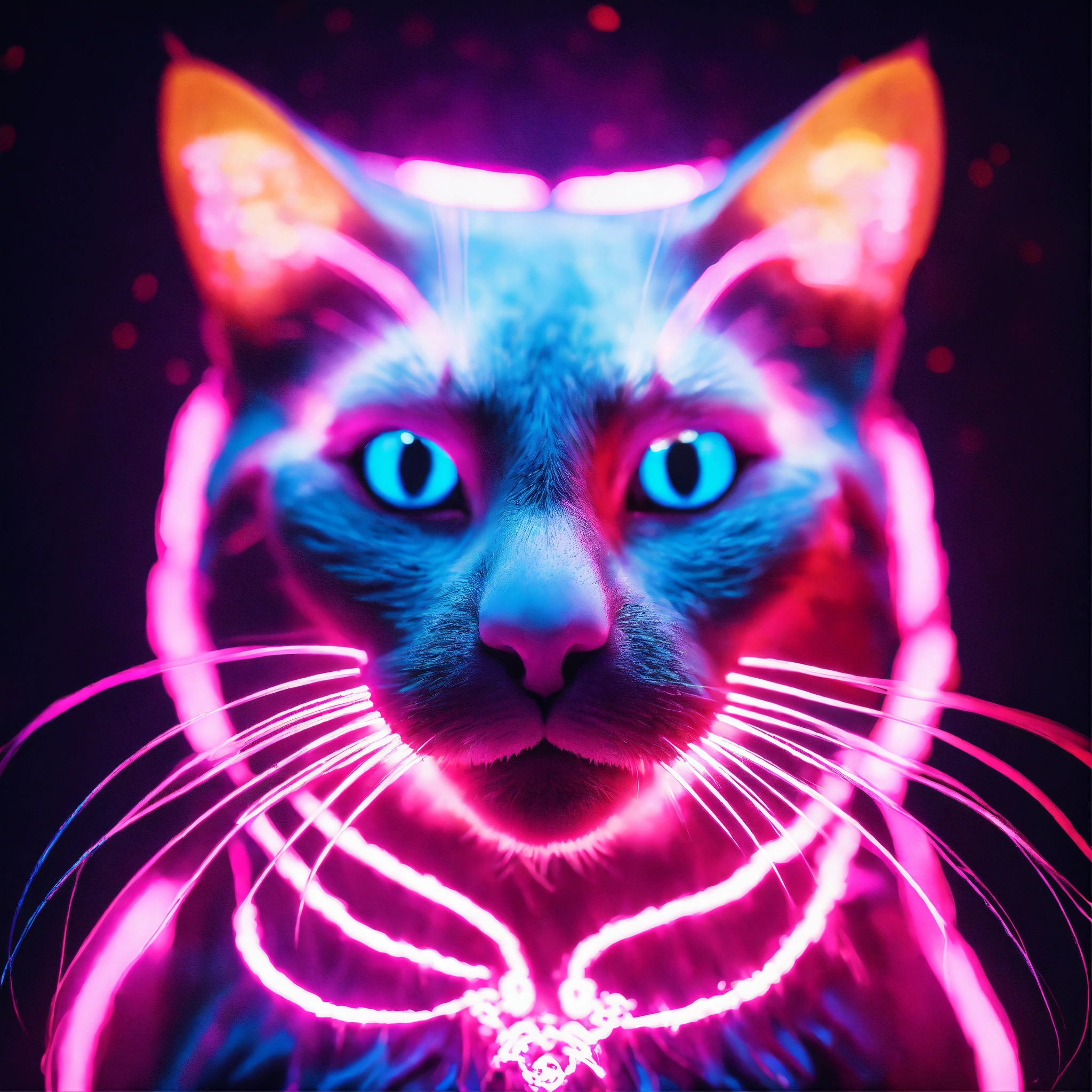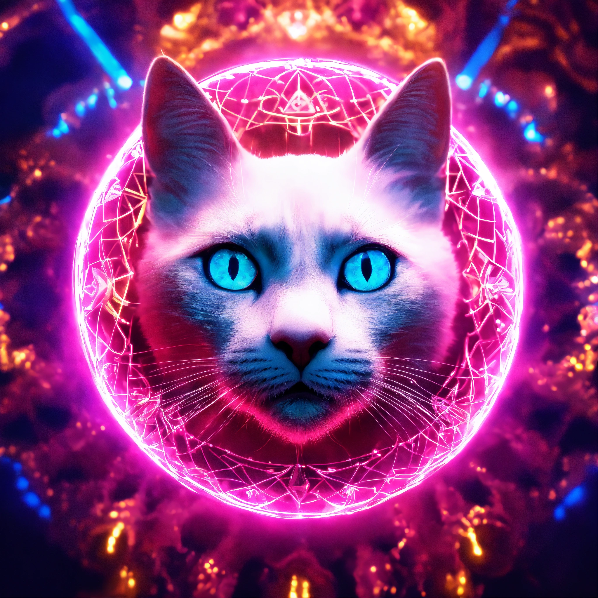 Underwater portrait photography, long exposure, powerful smiley mystic white and black cat face portrait facing front, blue eyes. front view. front portrait, no angle. backlit. pink neon glow. angelic face. sacred geometry patterns on the face, in the style of disney, pixar, tim burton, chronicles of narnia, beauty and the beast, and peter pan. enchanting glowing orb aura. fractal, volumetric lighting, backlit. the power of the god. god-like, spirit-like.