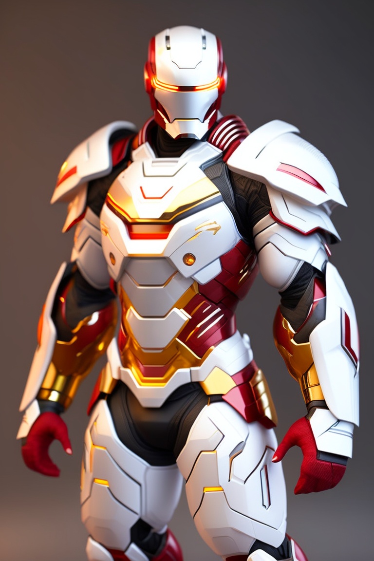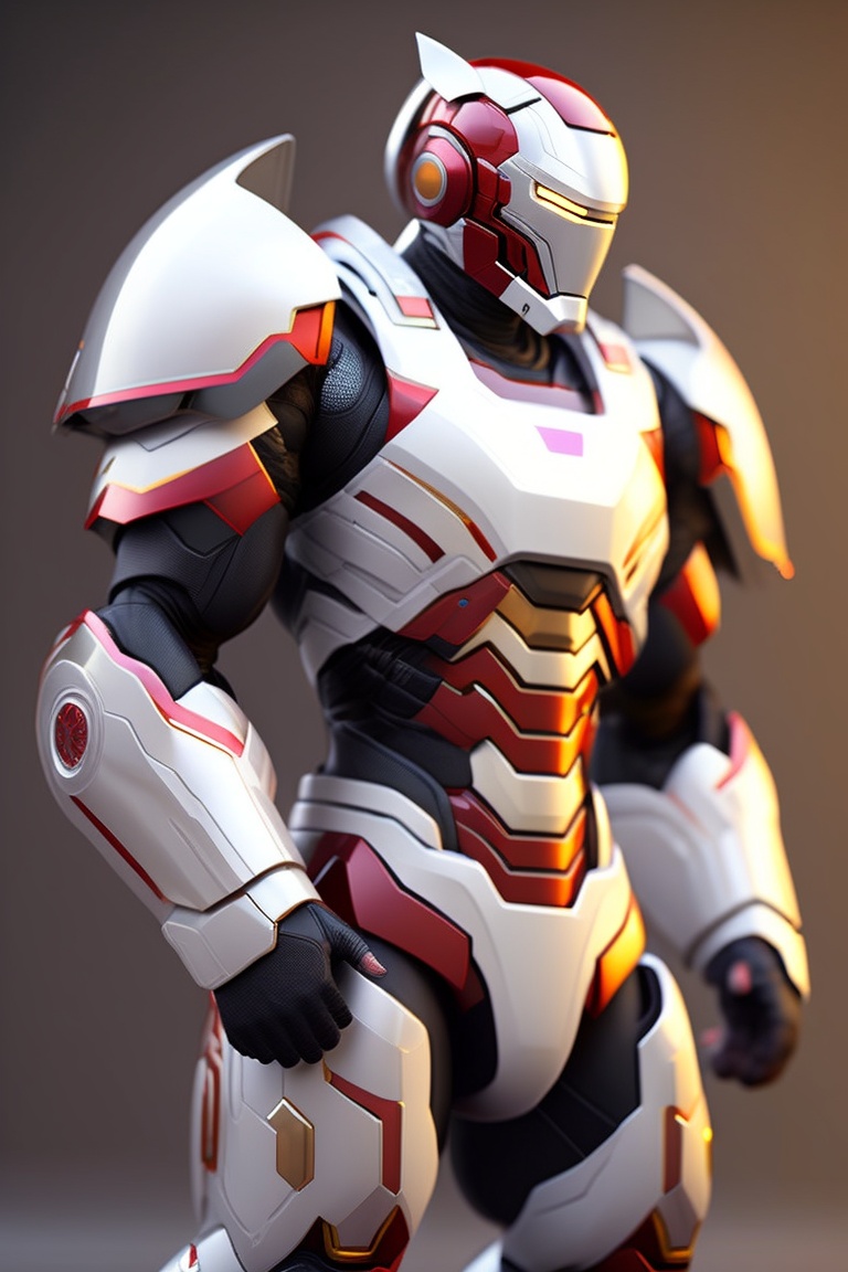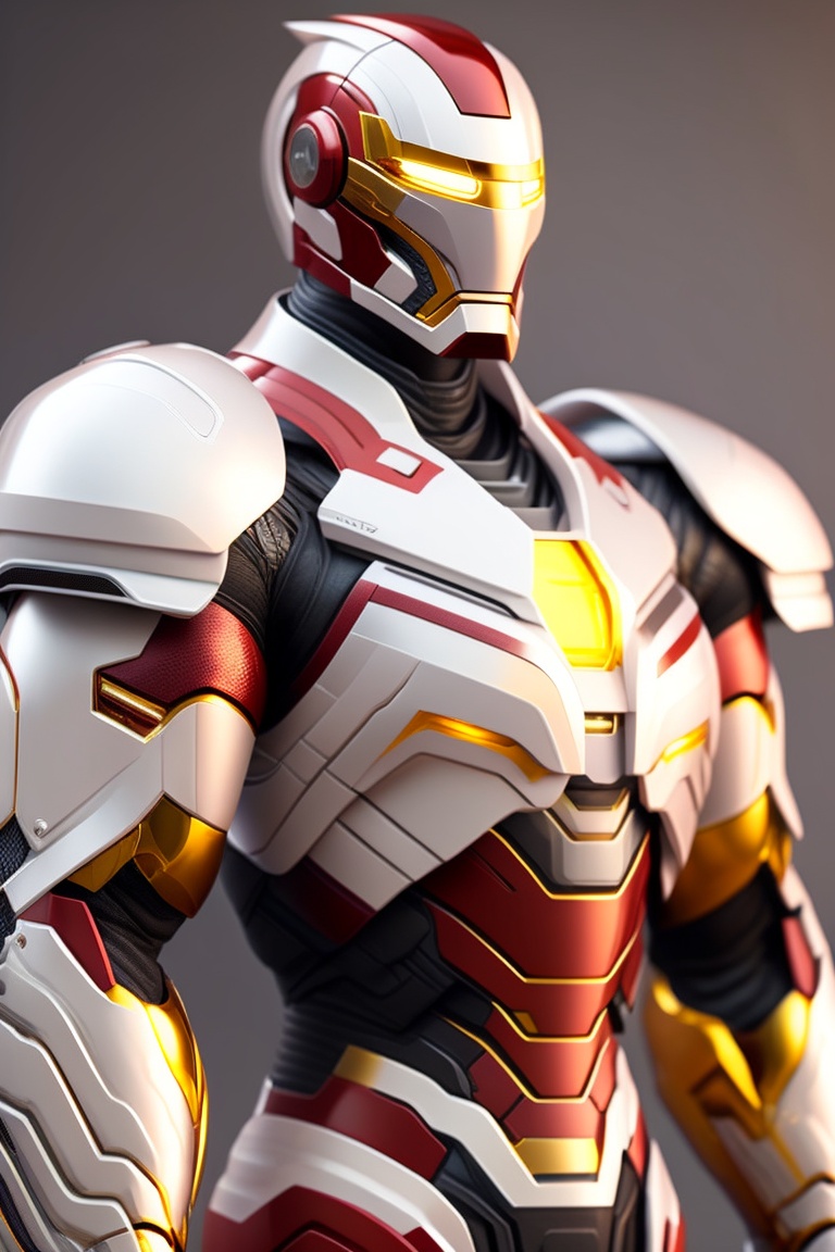 White tech armor ninja, inspired by iron man, full body, 3d model, japan, futuristic, 4k, ultra realistic