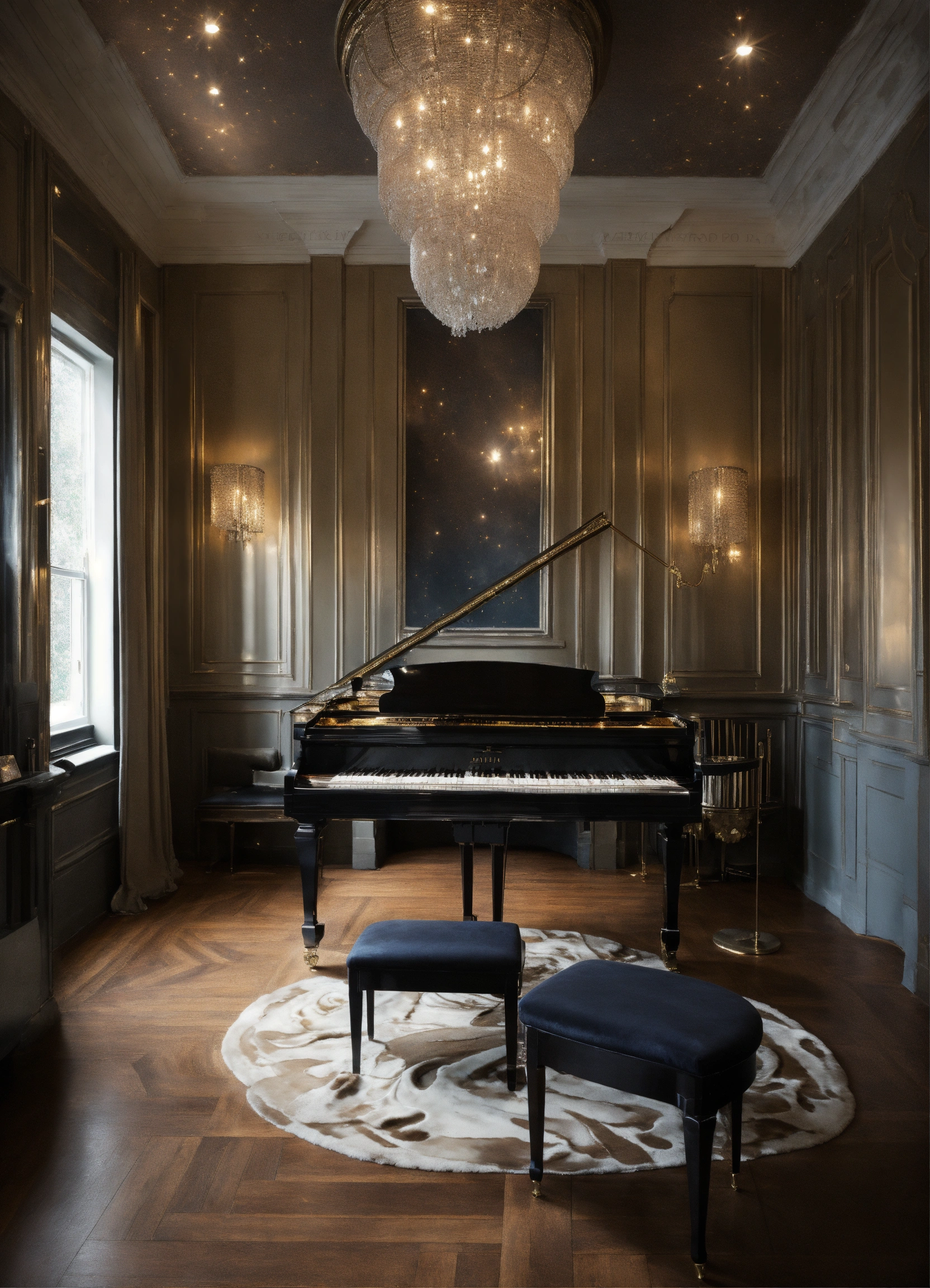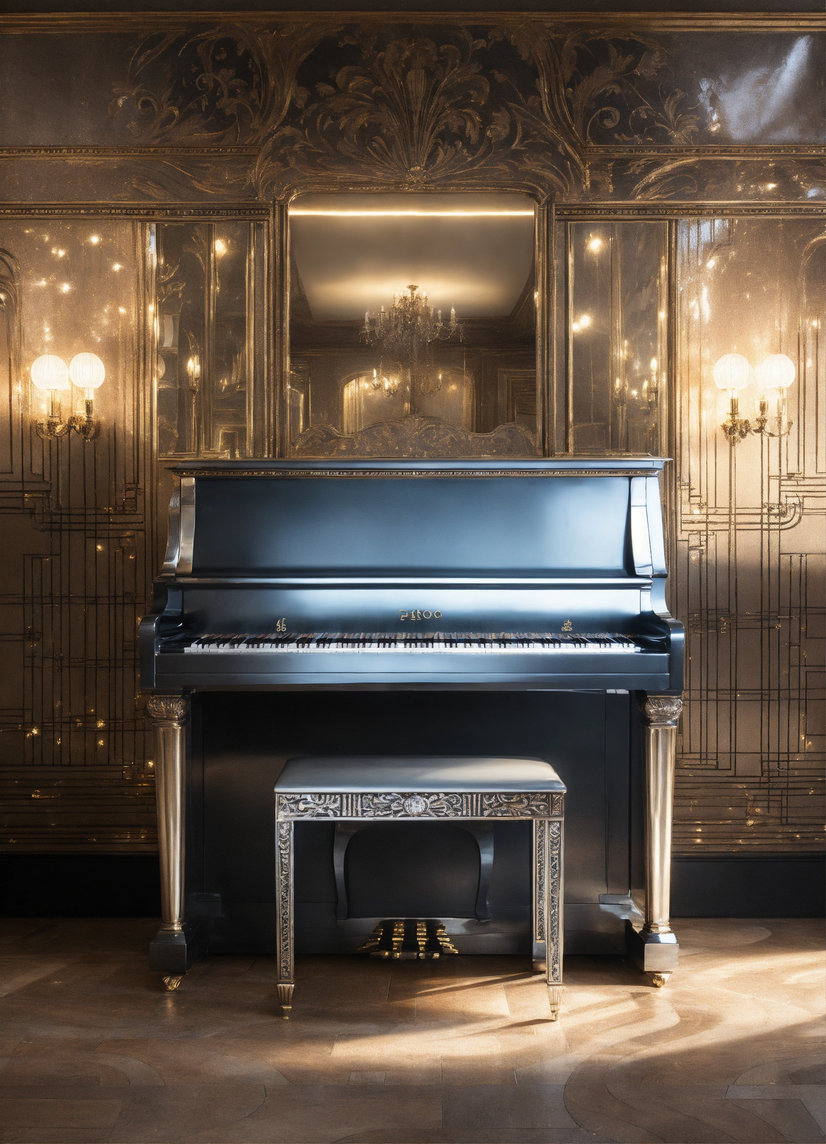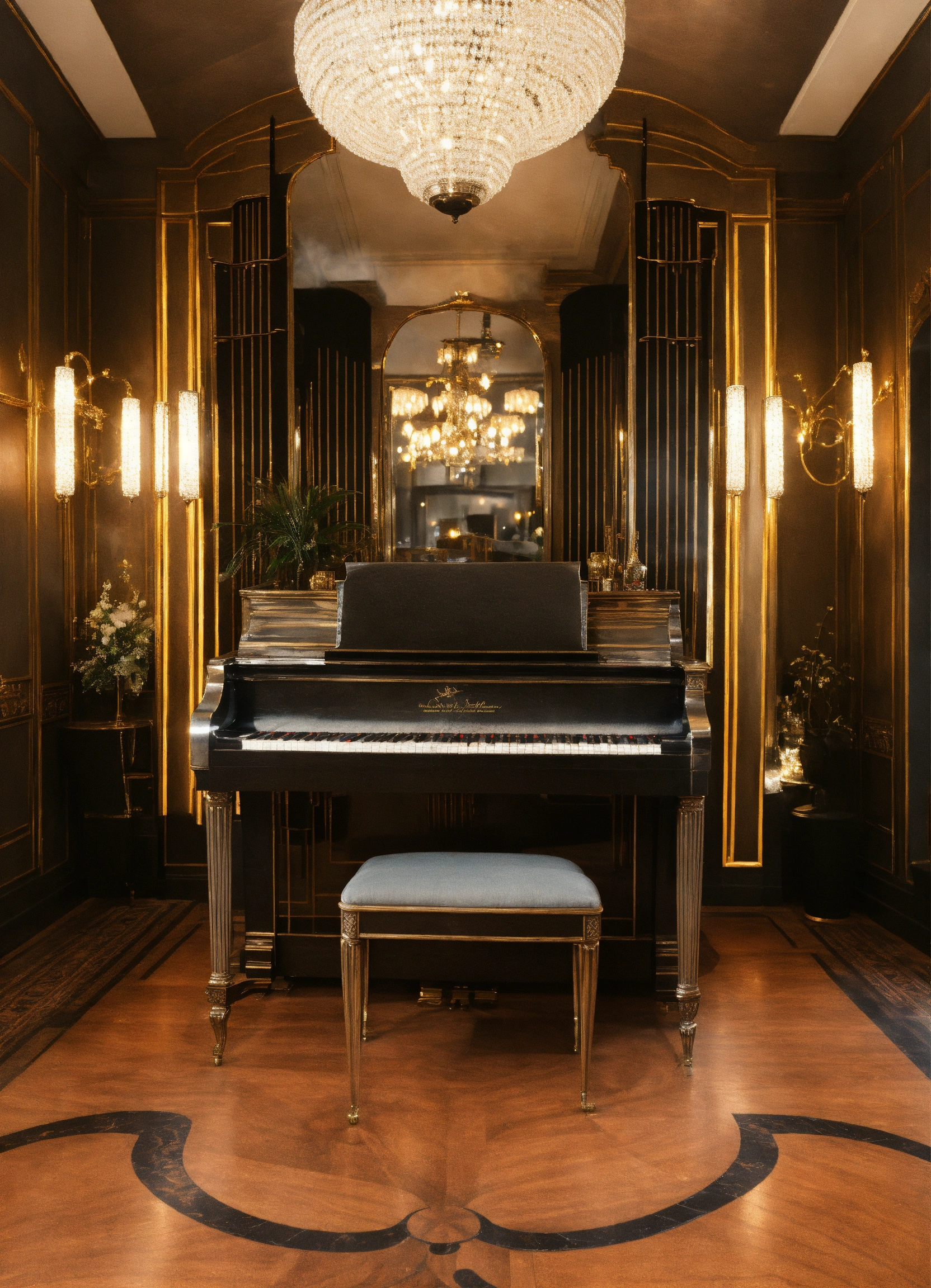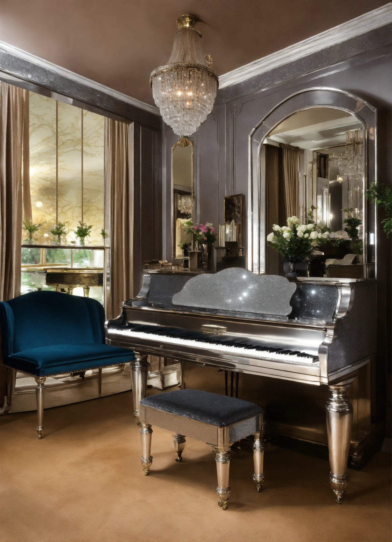 Smoke nouveau art deco silver flash sparkle salon interior regency piano