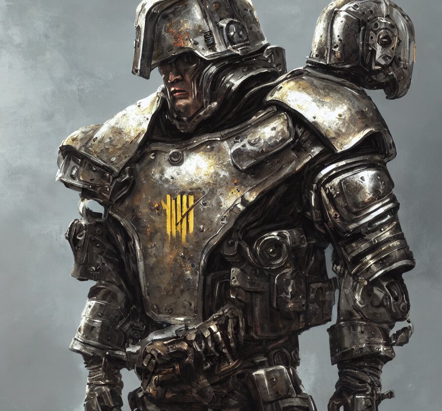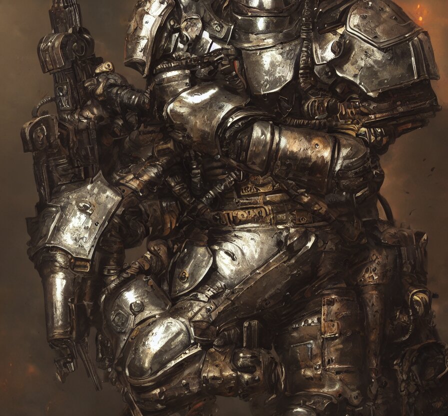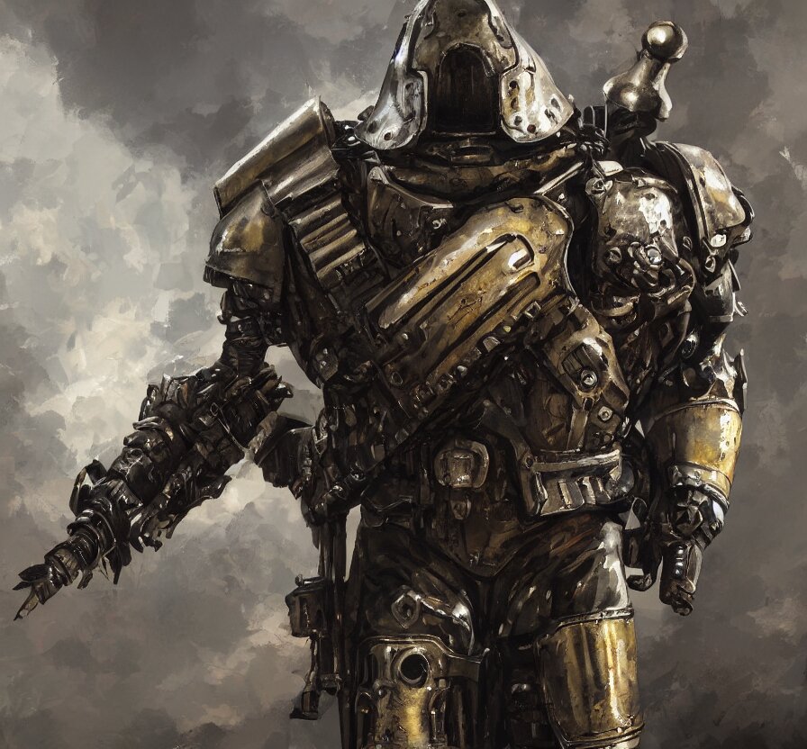 Wolfenstein dark metal armor, acrilic paint, brush paint, heavenly atmosphere, paint, ultra detailed, beautiful image, resolution, artstation
