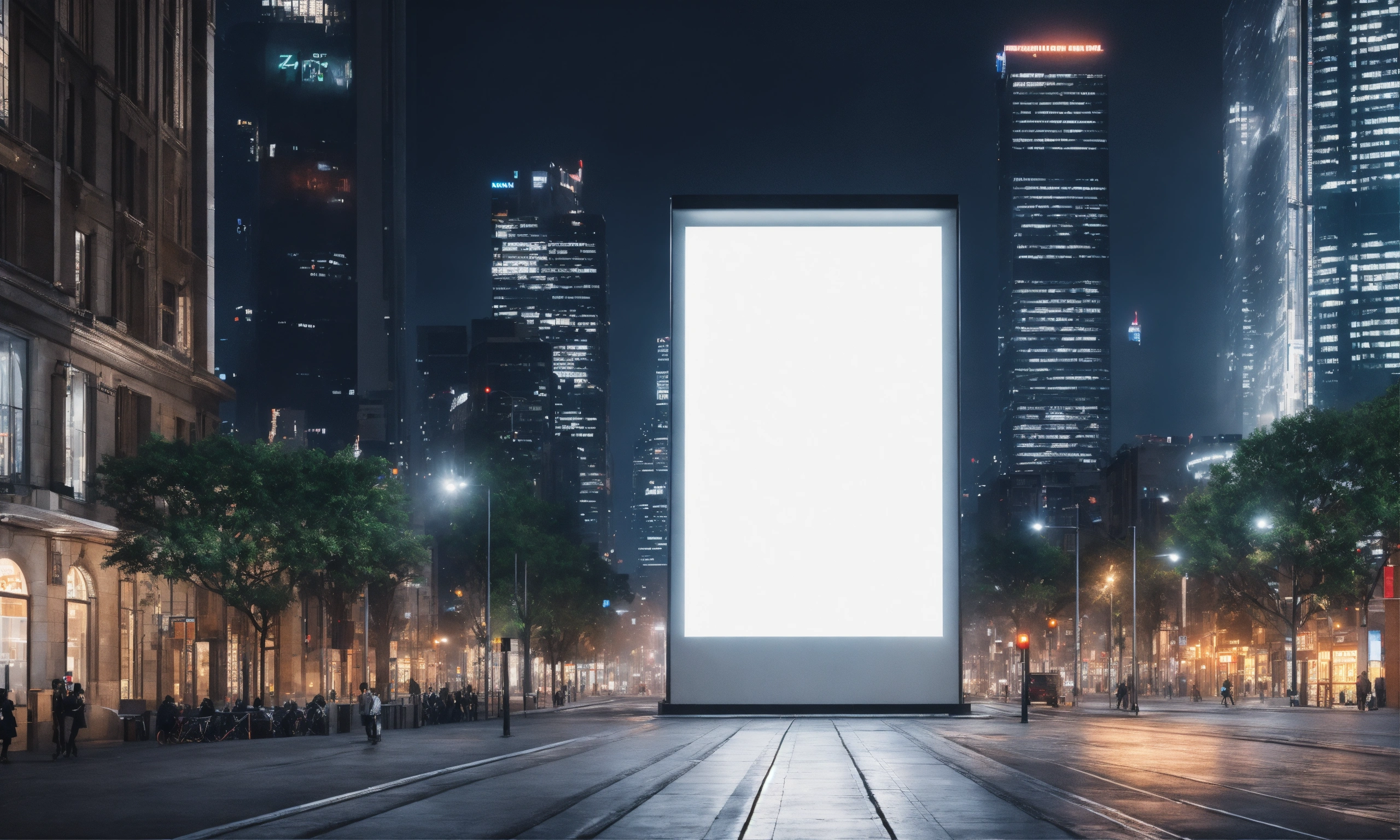 Mockup white empty poster on the building. blank mock-up of an outdoor info banner. big blank poster with copy space for text message or content in center of city. modern street with tall skyscrapers, driving cars and walking crowd pedestrians. empty copy space for inscription. day, daylight. octane render, trending on artstation, highly detailed, lighting, professional, realistic, sharp focus, 4k, 8k, high resolution, candid, personal, –testp, bright lighting, ultra-detailed, bright lighting, photo, high quality photo, cinematic shot, volumetric light, imax