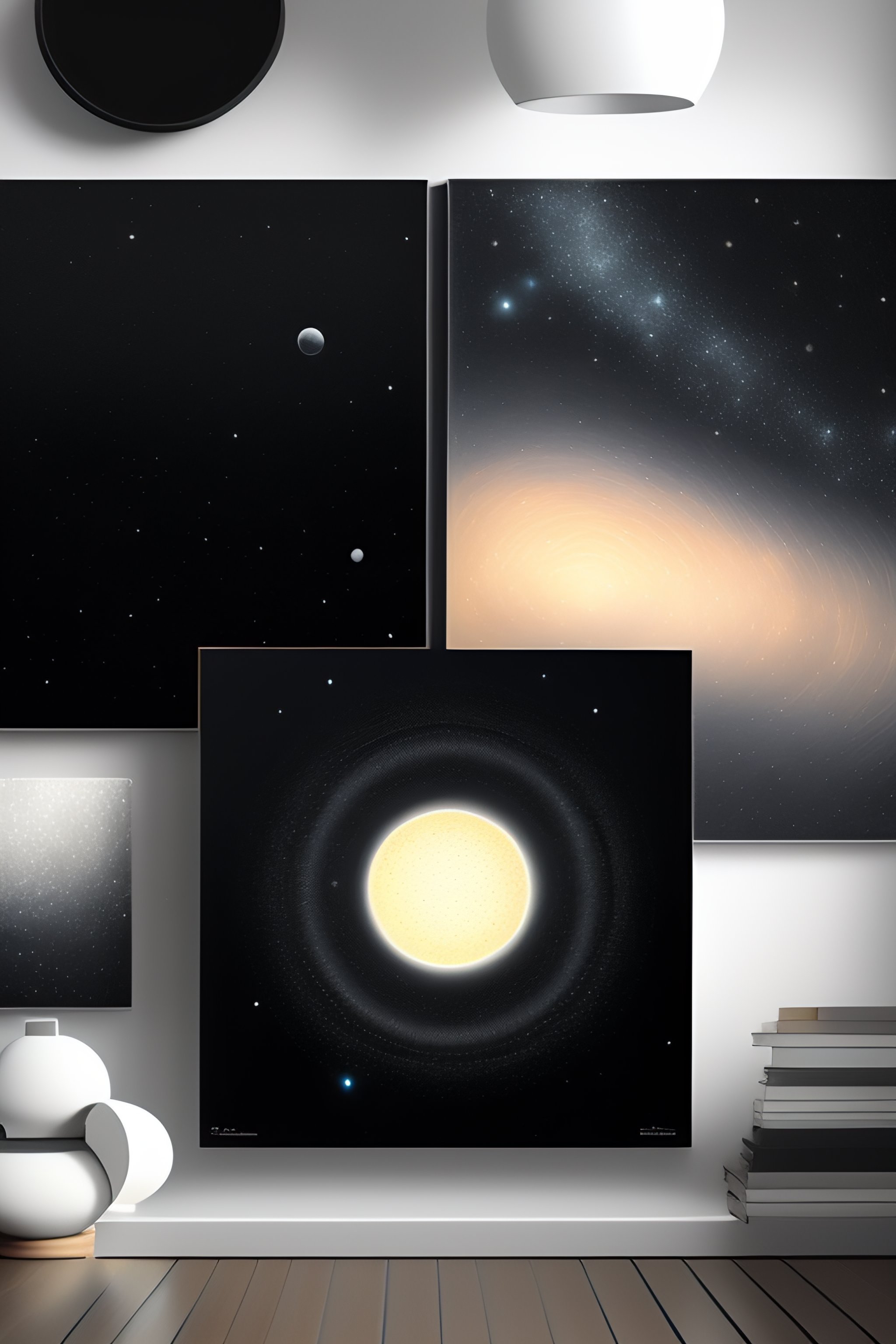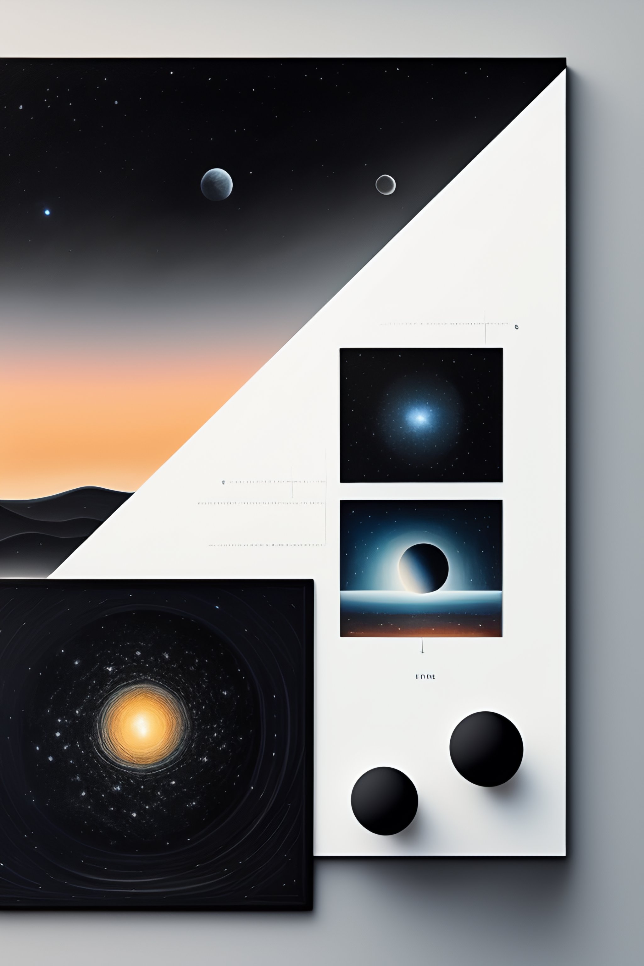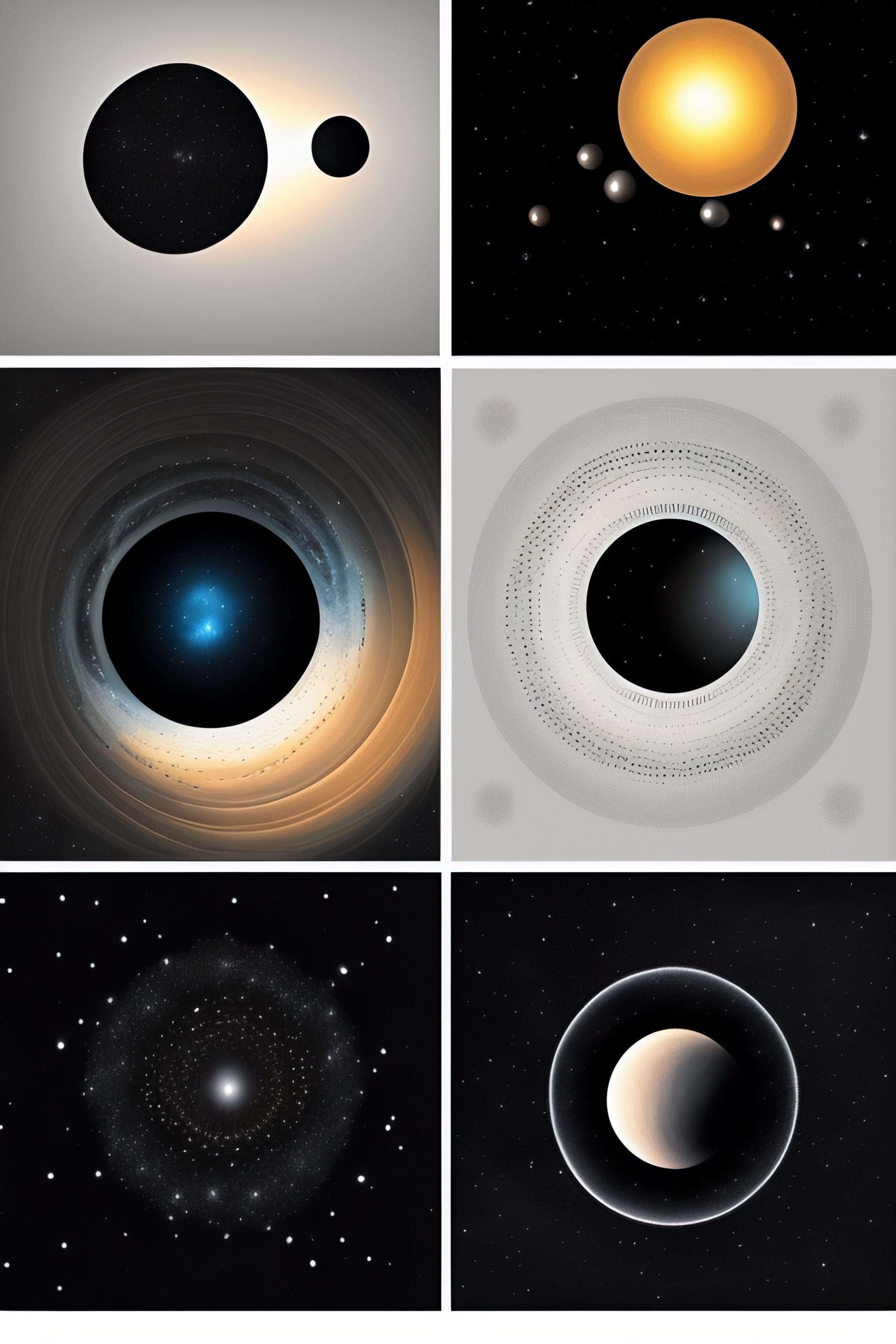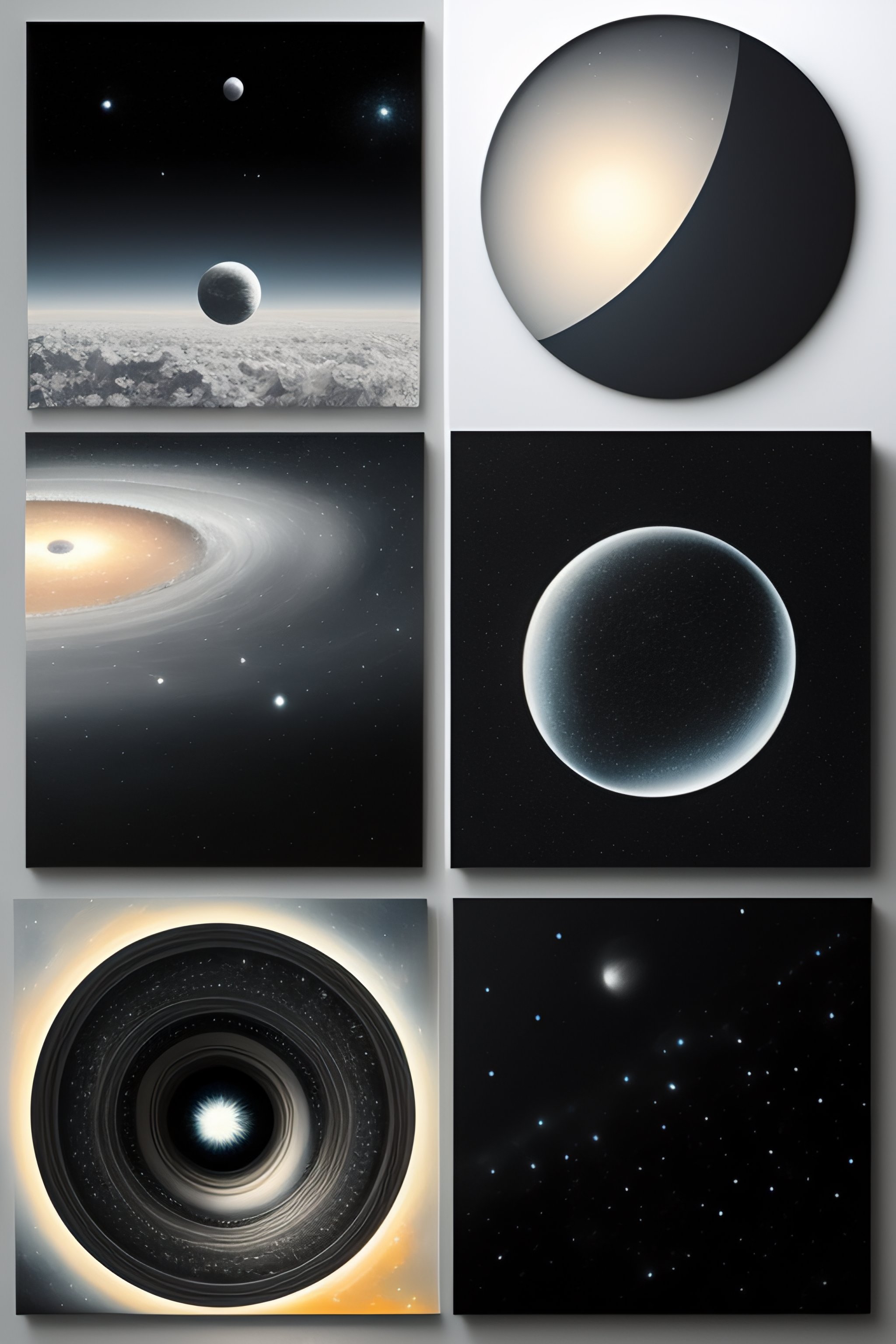 Create a painting and greyscale abstract mathematical with alien perspective and a constellation of black holes
