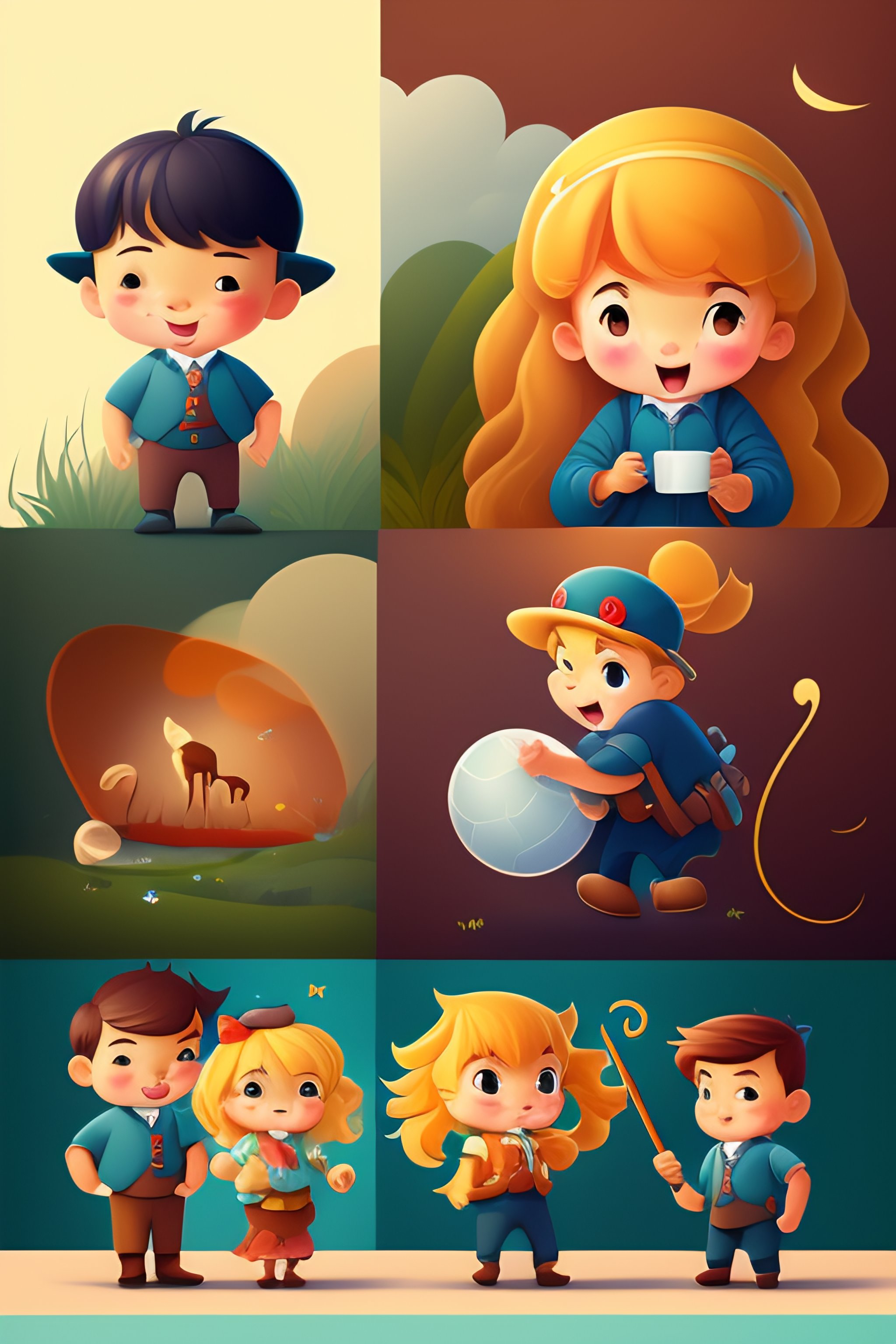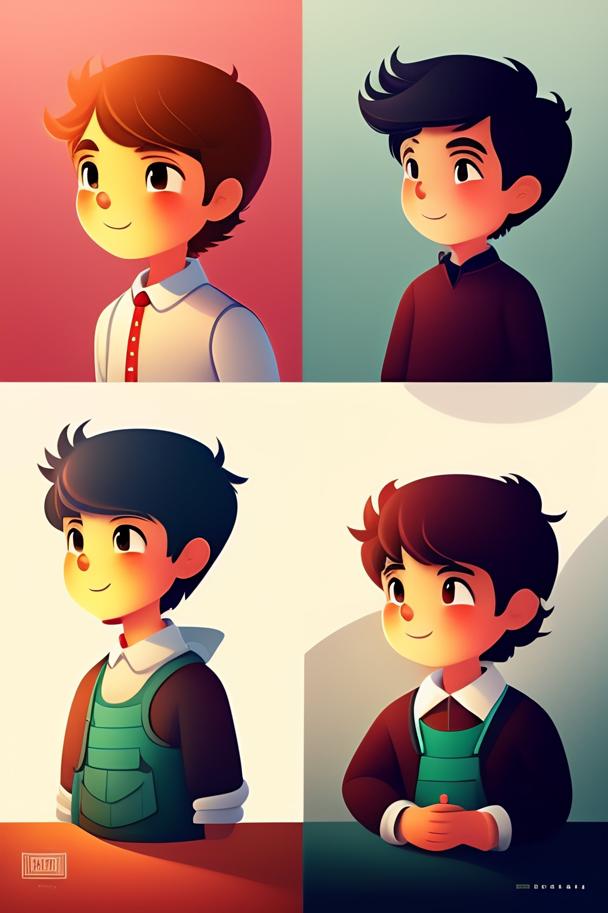 Storybook boy character set drawing illustration in different poses and expressions