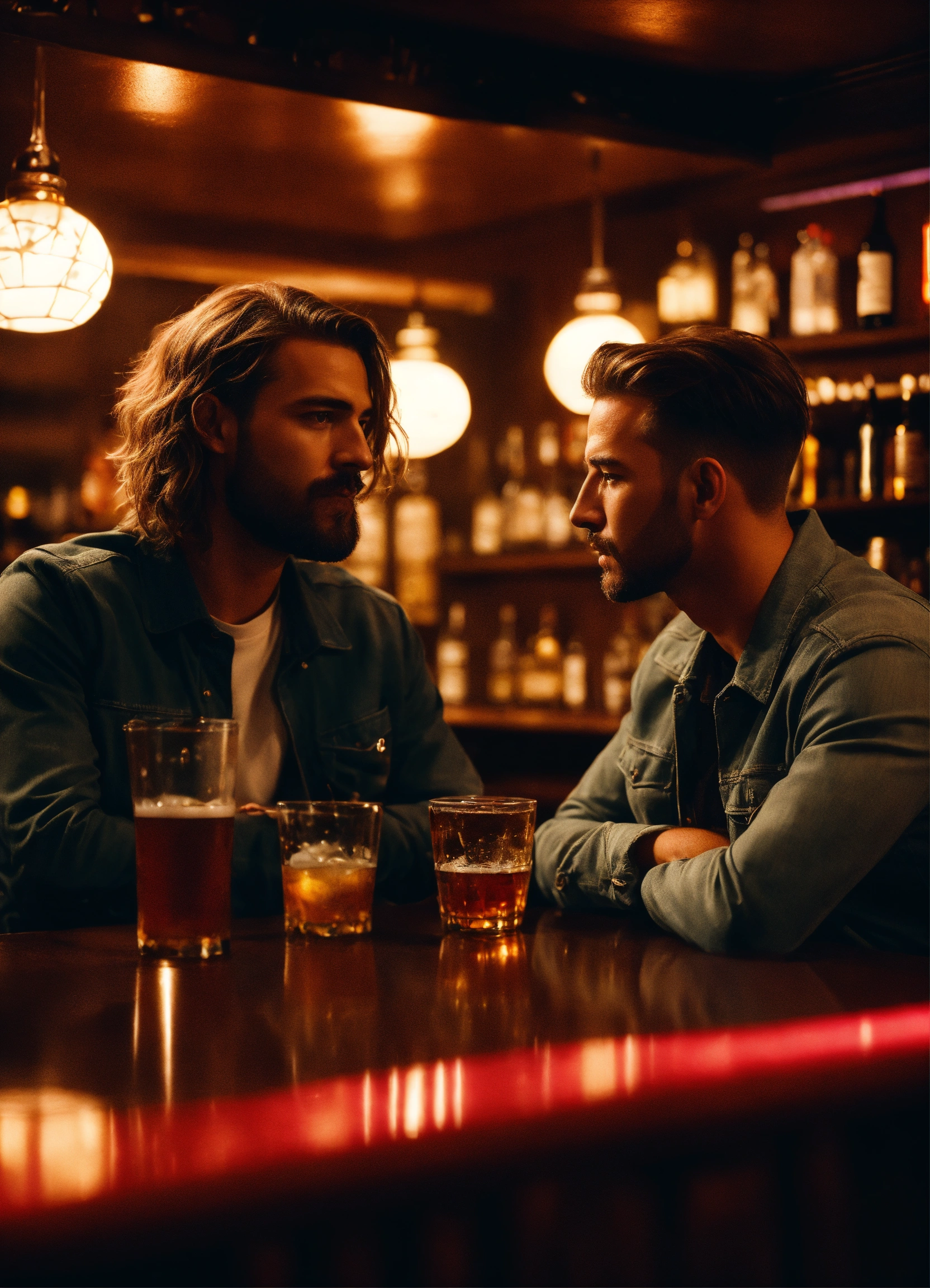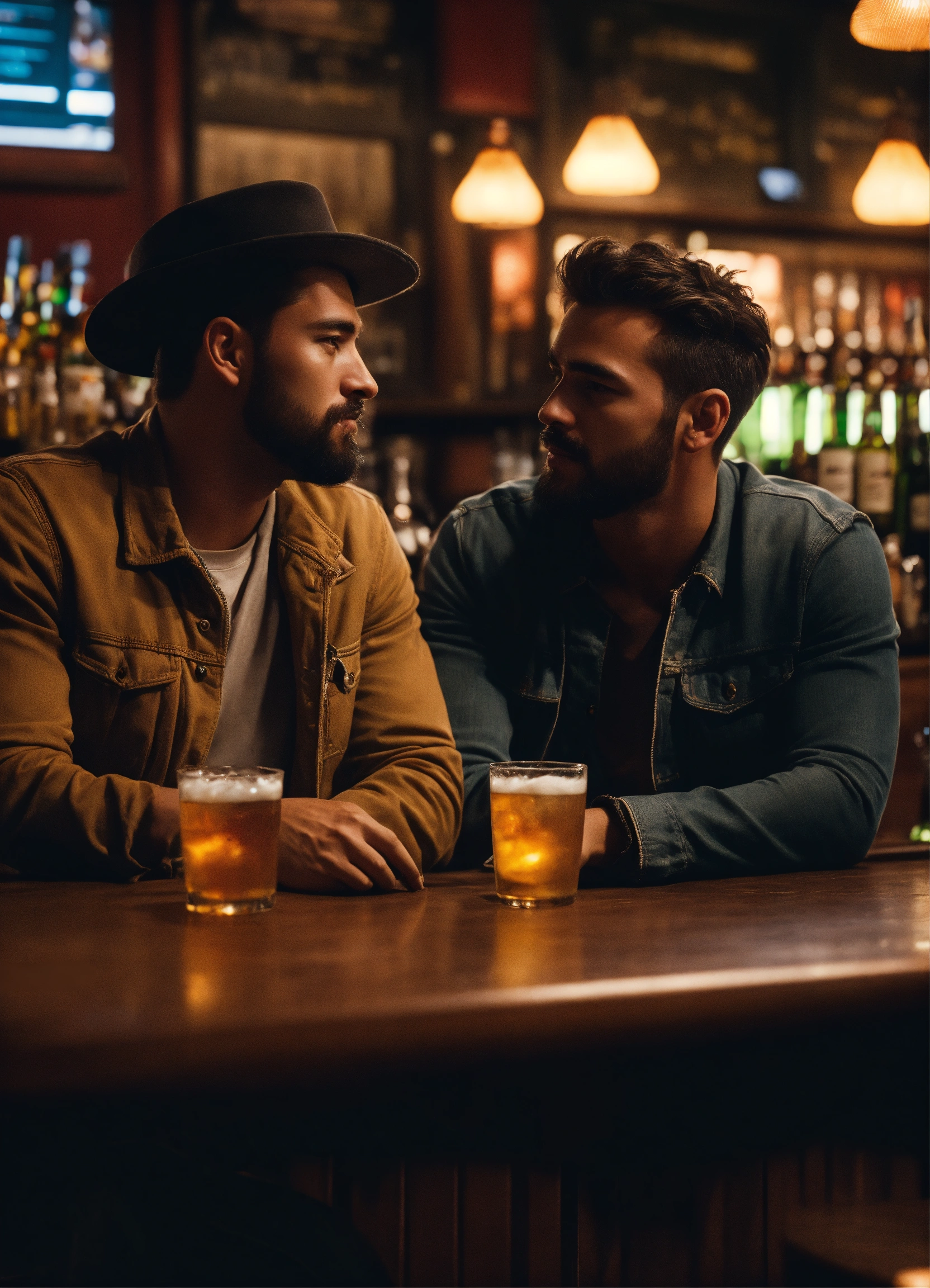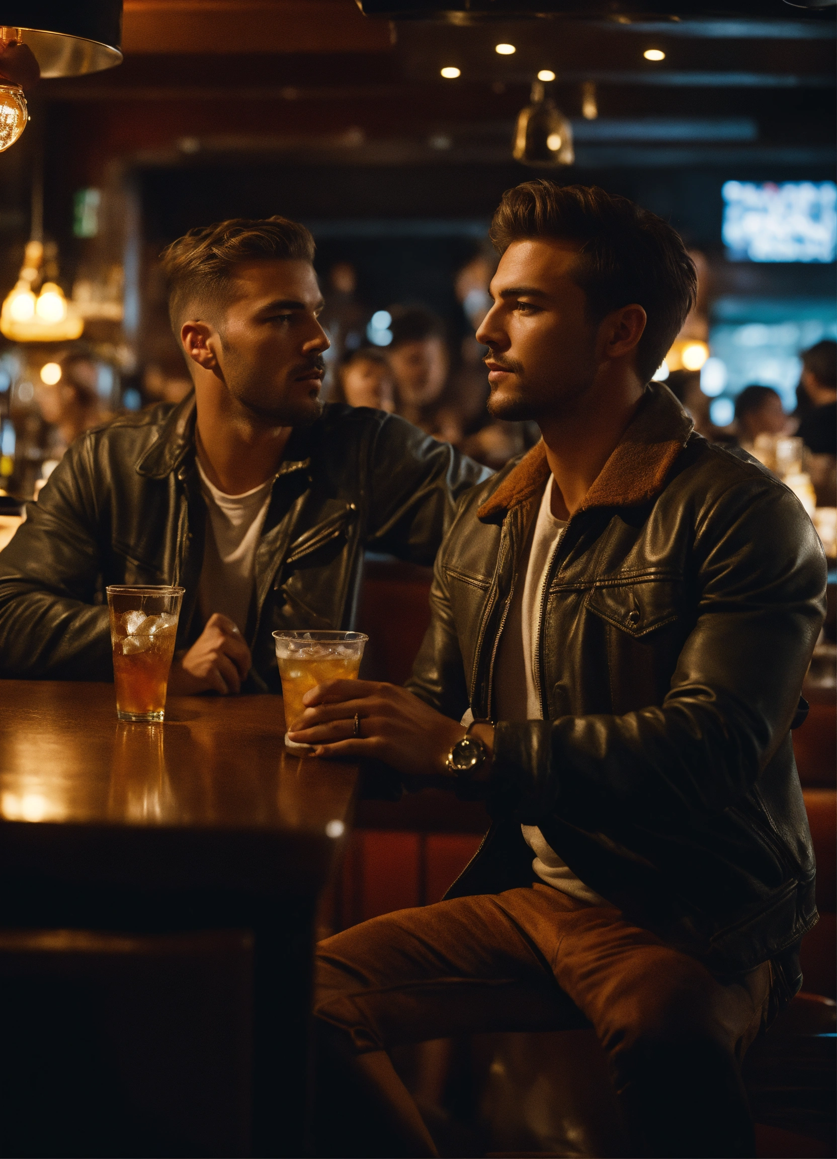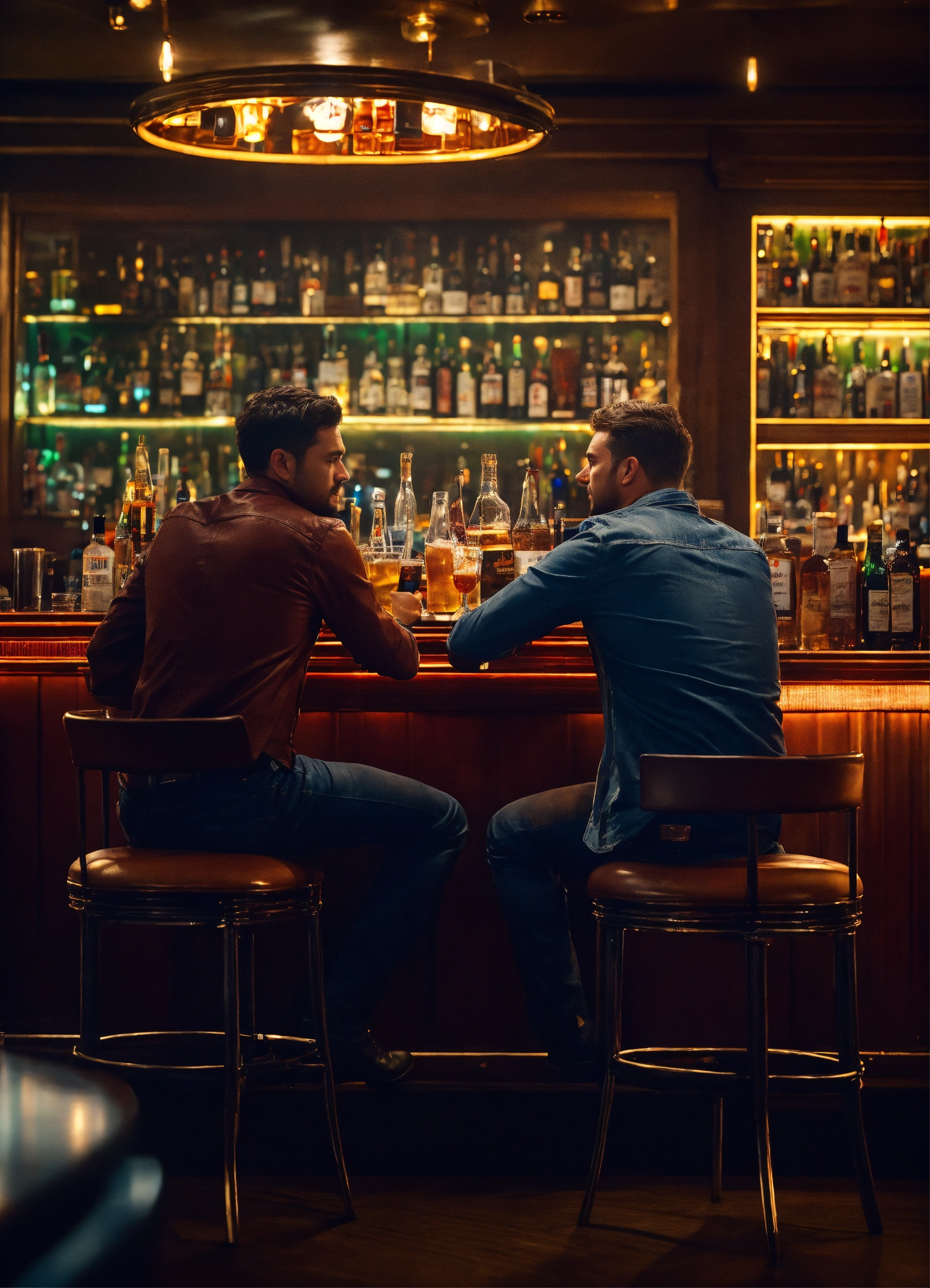 Cinematic photo two friends at a bar