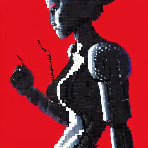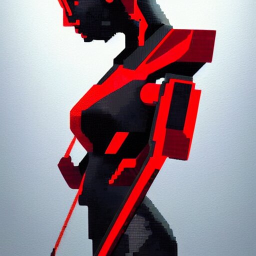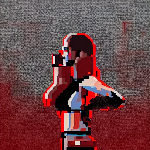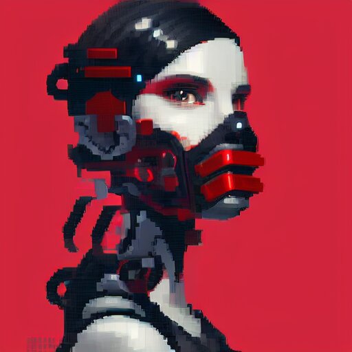 Pixel art of a cyborg girl with black and red robotic parts, medium shot, asymmetrical, profile picture, organic painting, sunny day, matte painting, bold shapes, hard edges, street art, trending on artstation, by huang guangjian and gil elvgren and sachin teng