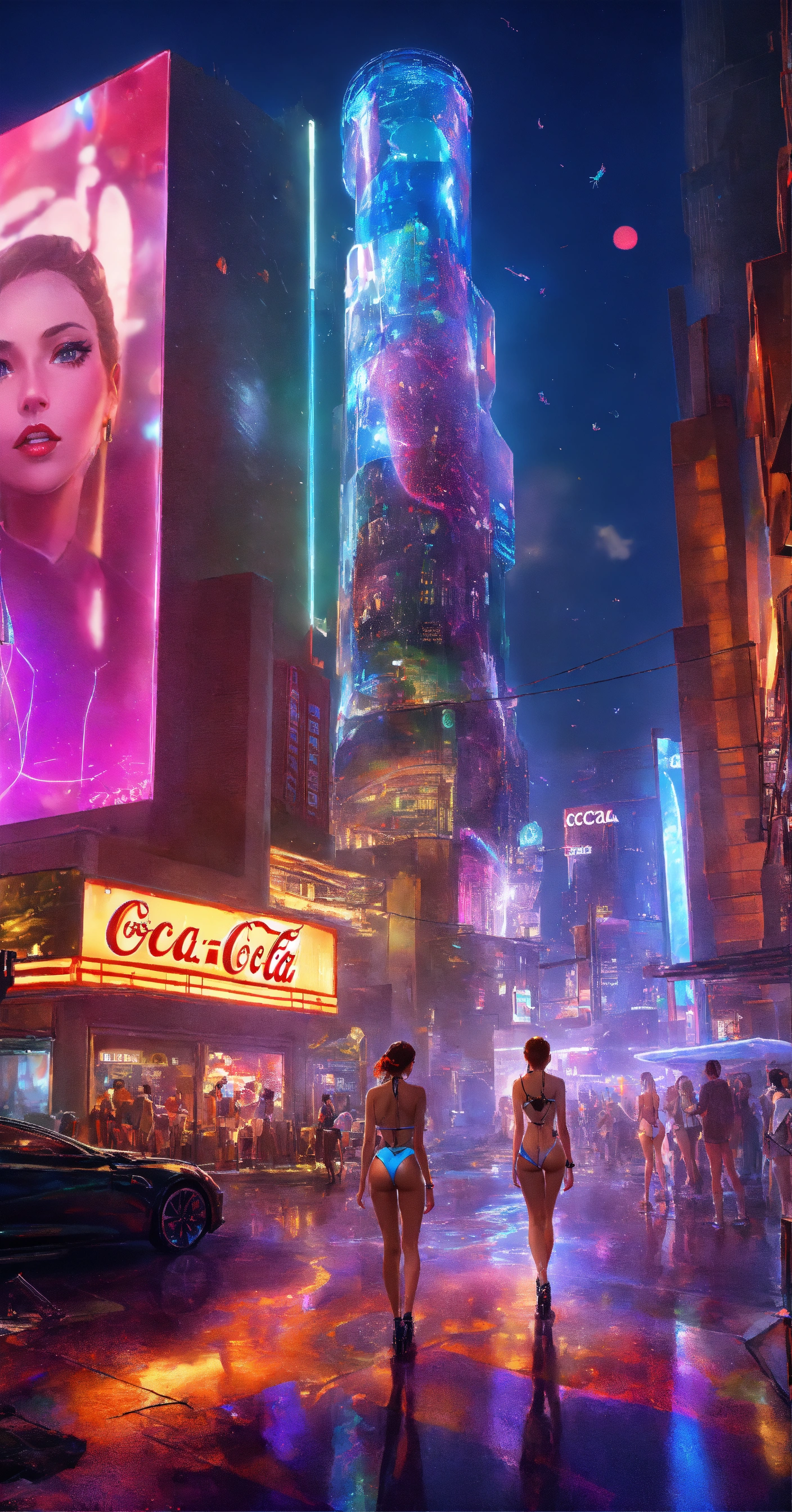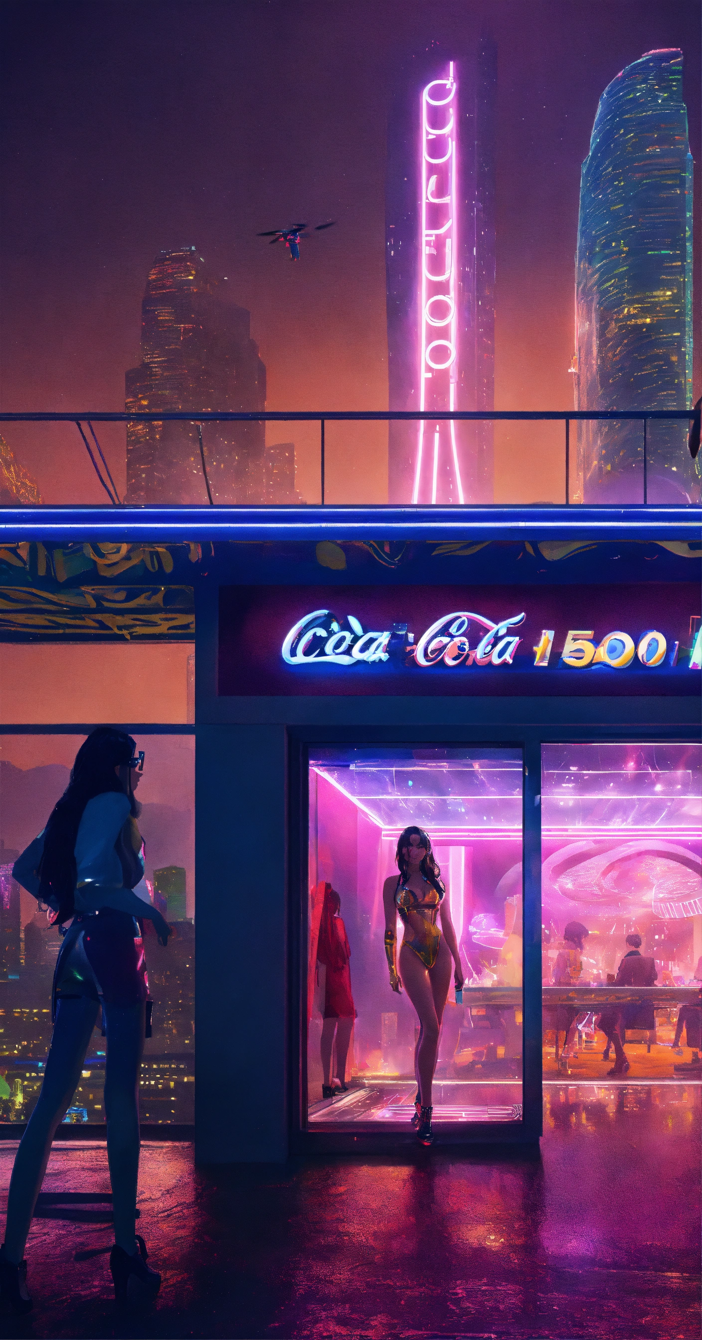 Night club scene in the 150th floor deck of cards with random number as a tesla factory on the 250th floor surrounded by gians skuscrapers, that produces tesla and bmw large insects that work, ave hecicles, drone shot of a futuristic girl in a bathing suit made of plexiglass made of plexiglass and neon wiring sitting in a desert next to a very tall and big coca cola sign stuck in the ground, add more intricate and realistic details, upclose shot with a 120fps frame, iredescent shadows, photomagazine shot, editorial, high fashion, brazilian, models, amiling and eating glass fruits, everything surrounded by supertall buildings, 8k 16k 32k 64k 128k super futuristic glass casino with holographic screens and beautiful cyborg dancers dressed in glass swimsuits, super generatove, ai qith maximized details profitability, super realostoc designs, photorealosm and super gloss, rain and puddles, lots of liquid gold, iredescent shadown, night shot