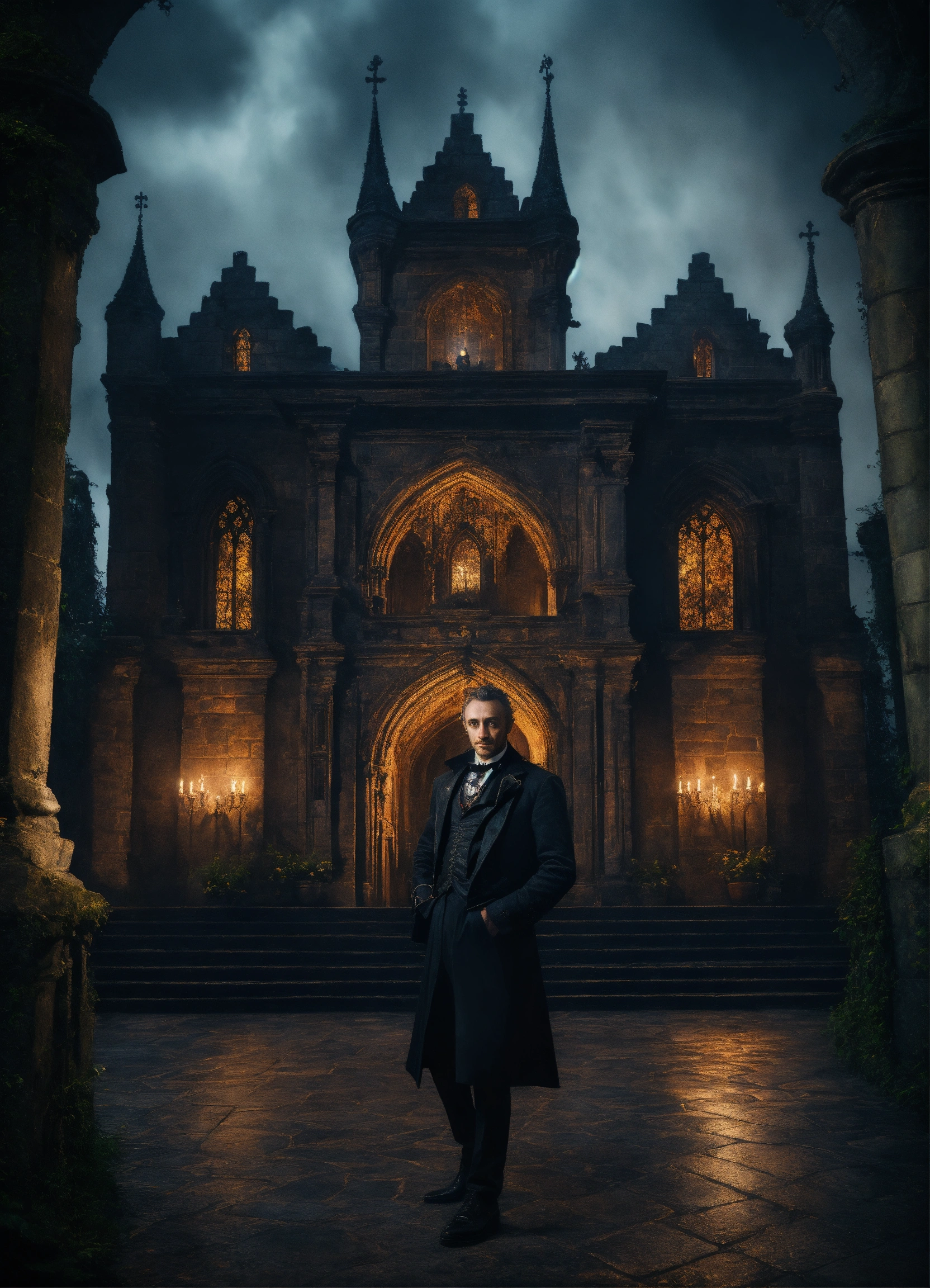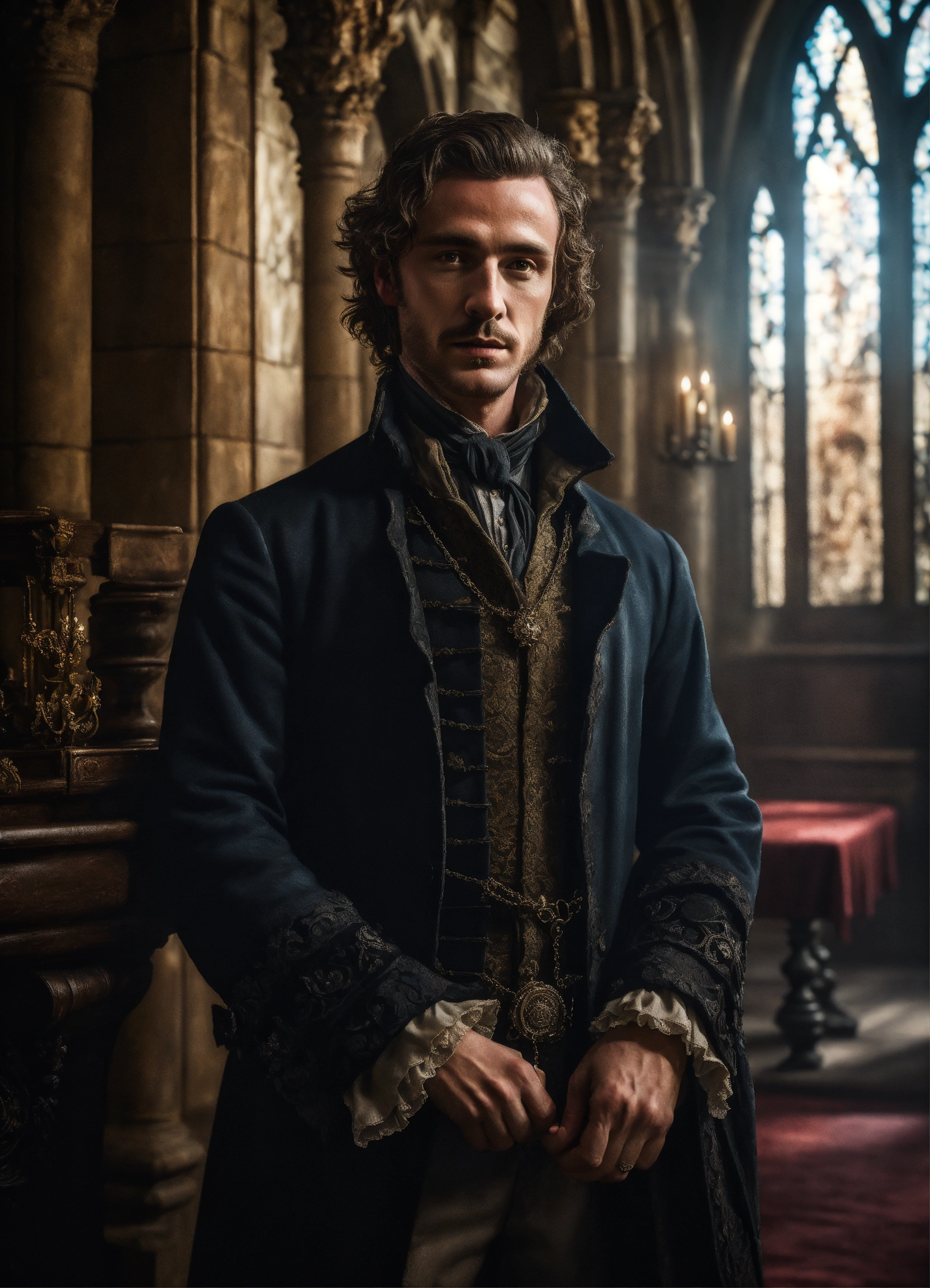 Portrait of james mcevoy in a gothic castle, dark fantasy, mystical, macabre, realistic photography, high detail, digital painting, cinematic, stunning, hyper-realistic, sharp focus, high resolution 8k, crazy detailed
