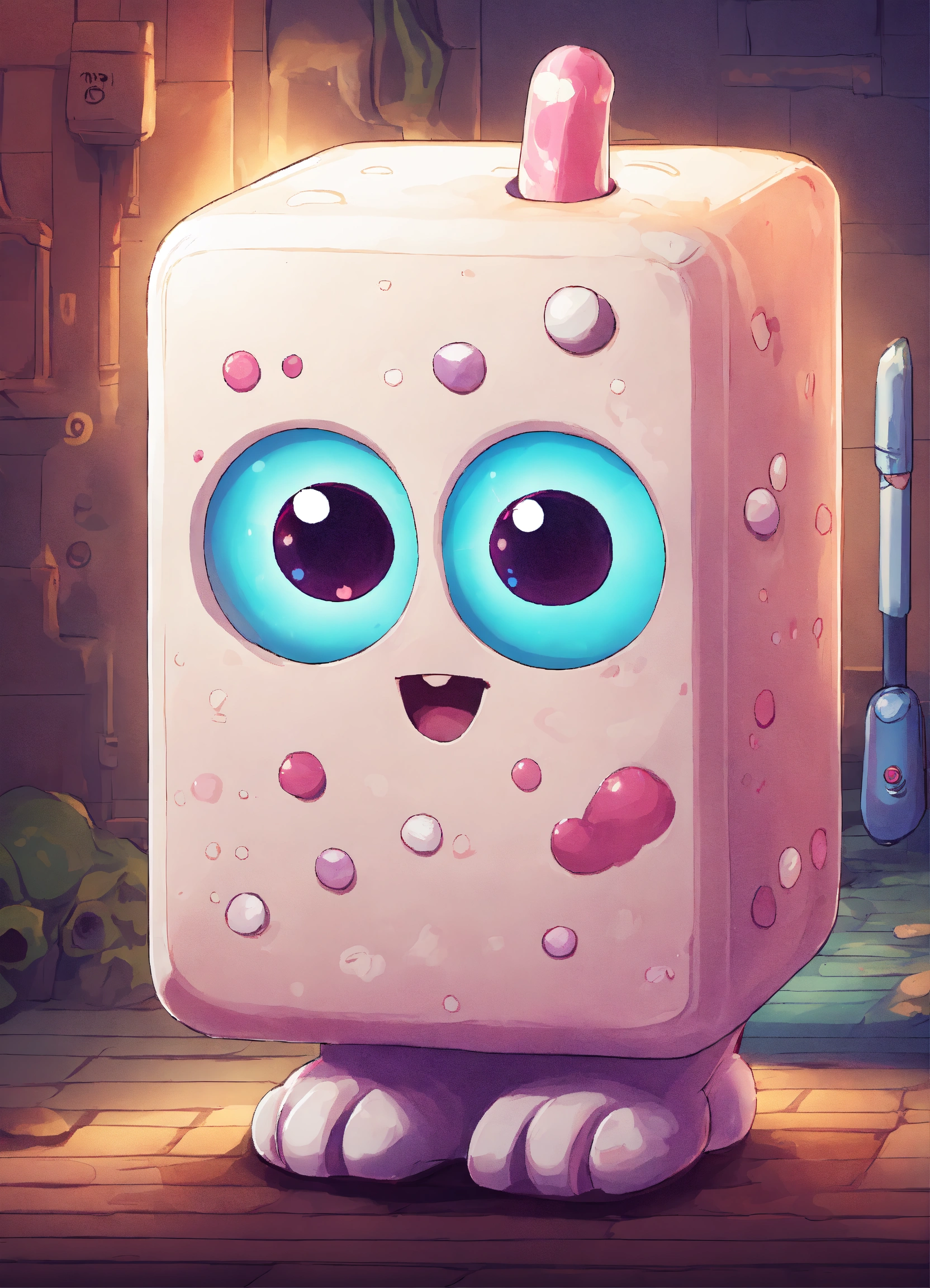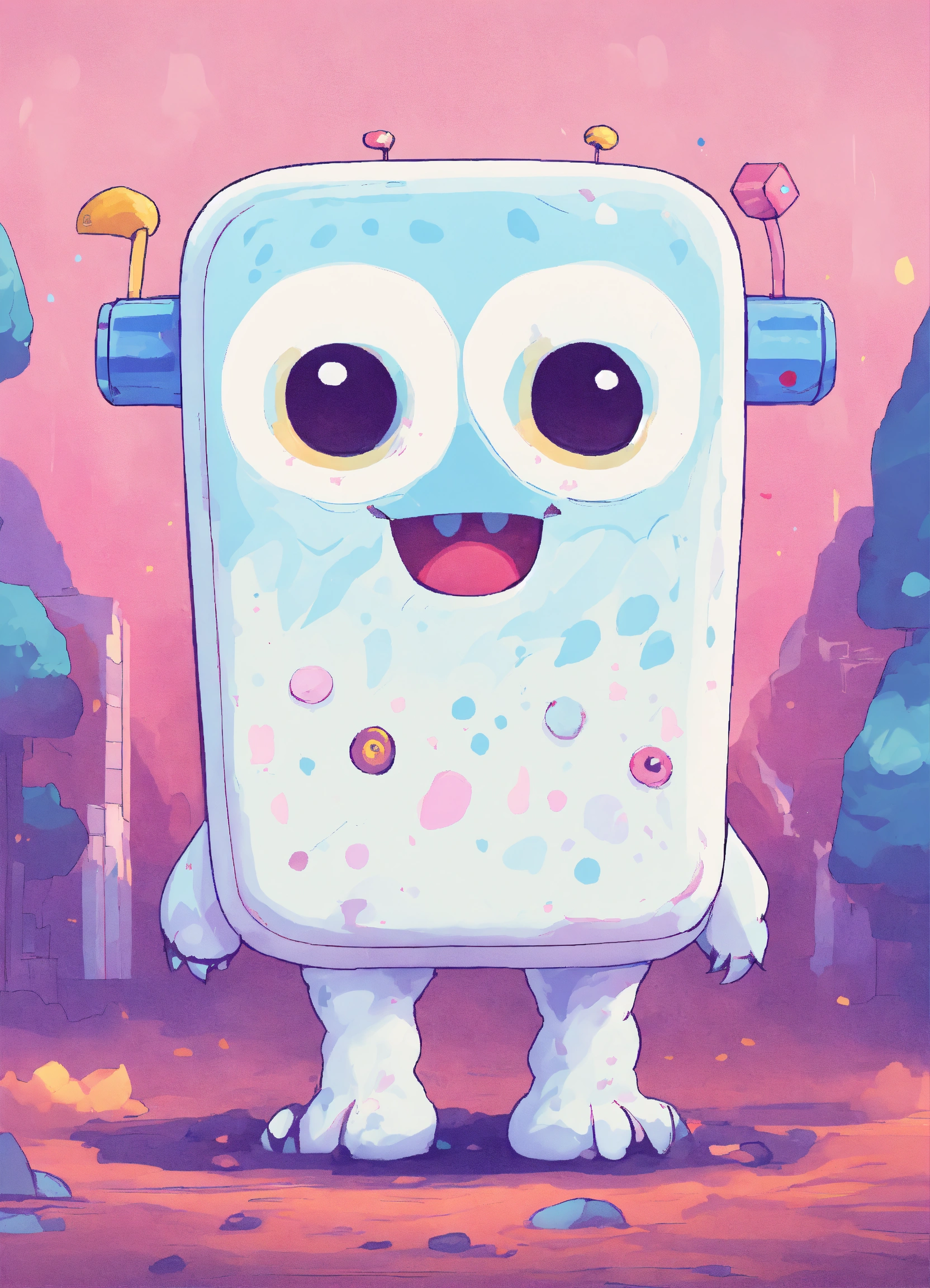 A white rectangular kawaii monster