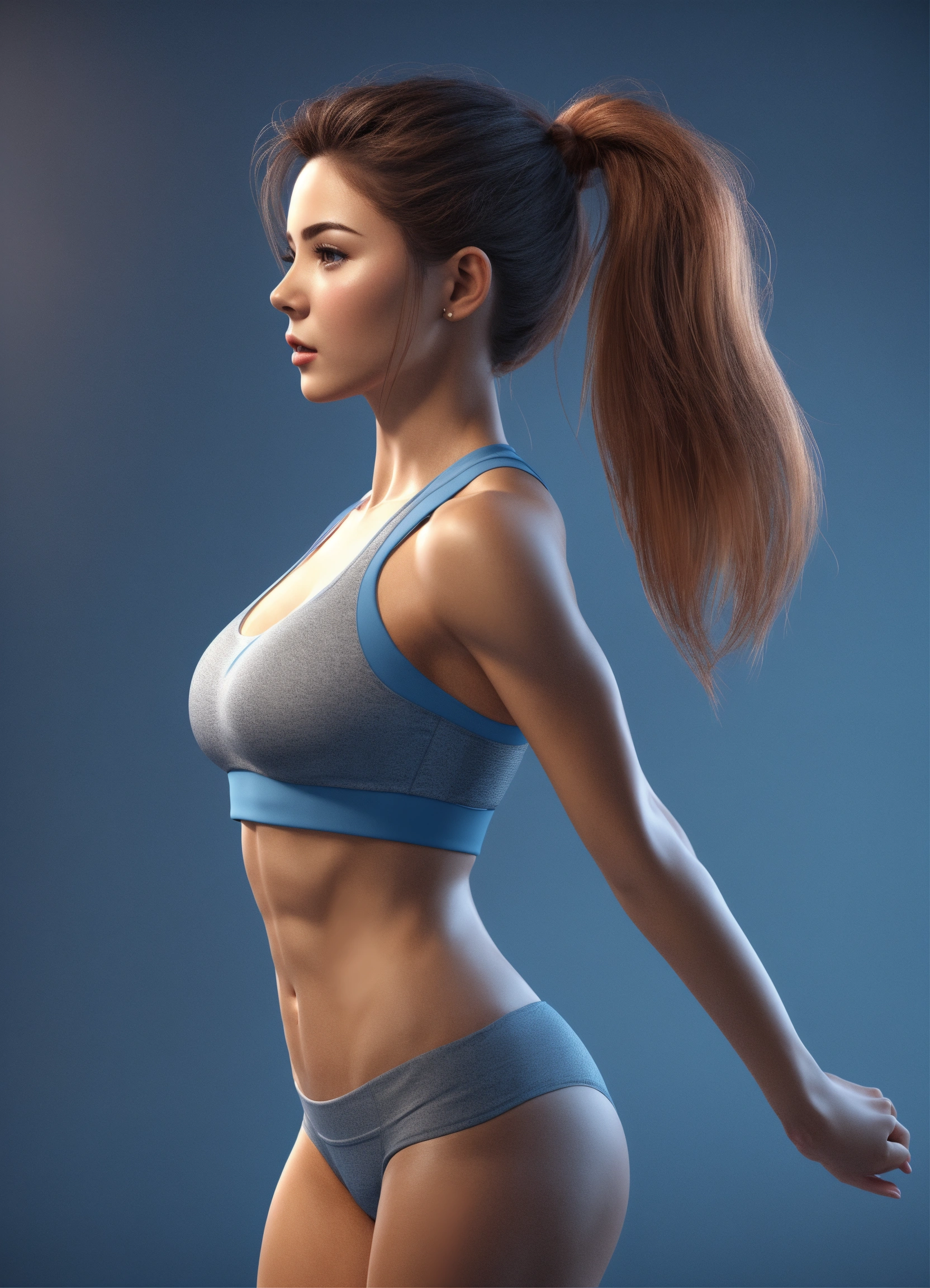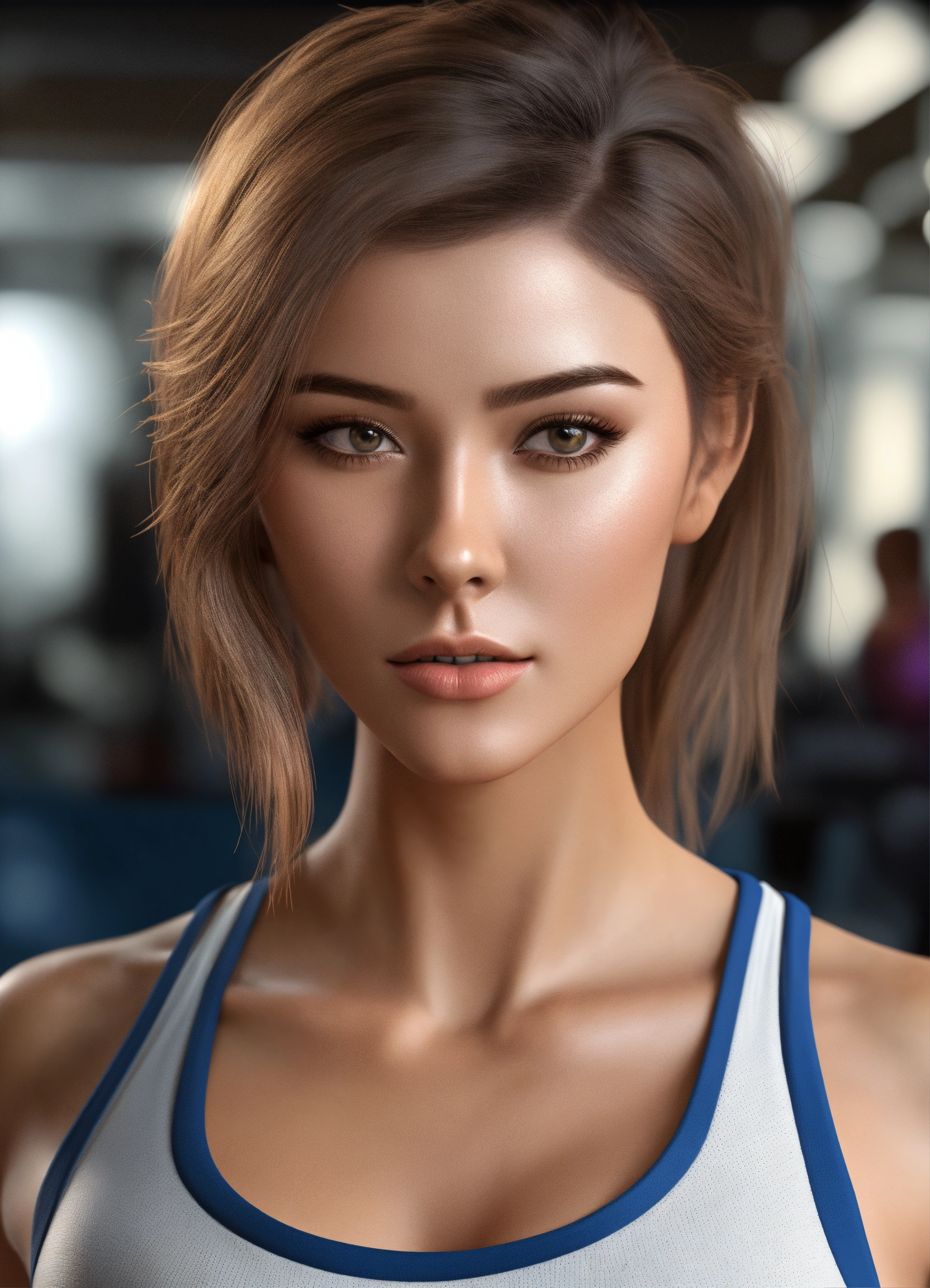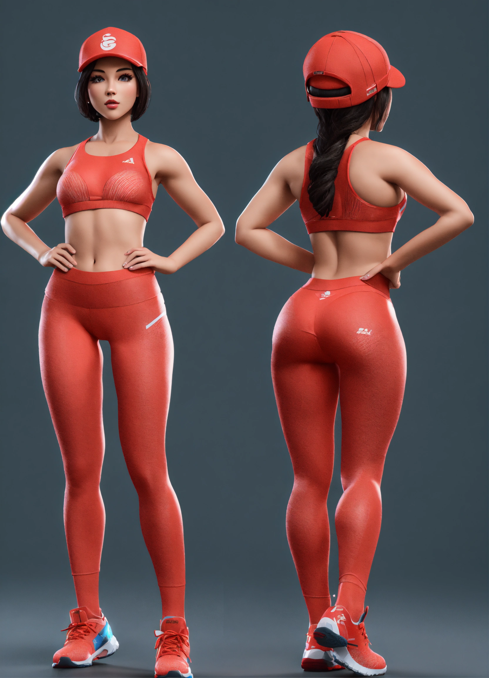 Full head to feet, character, very high detailed, ultra realistic, 3d illustration, cinema 4d, very beautiful women with perfect body in gym costume