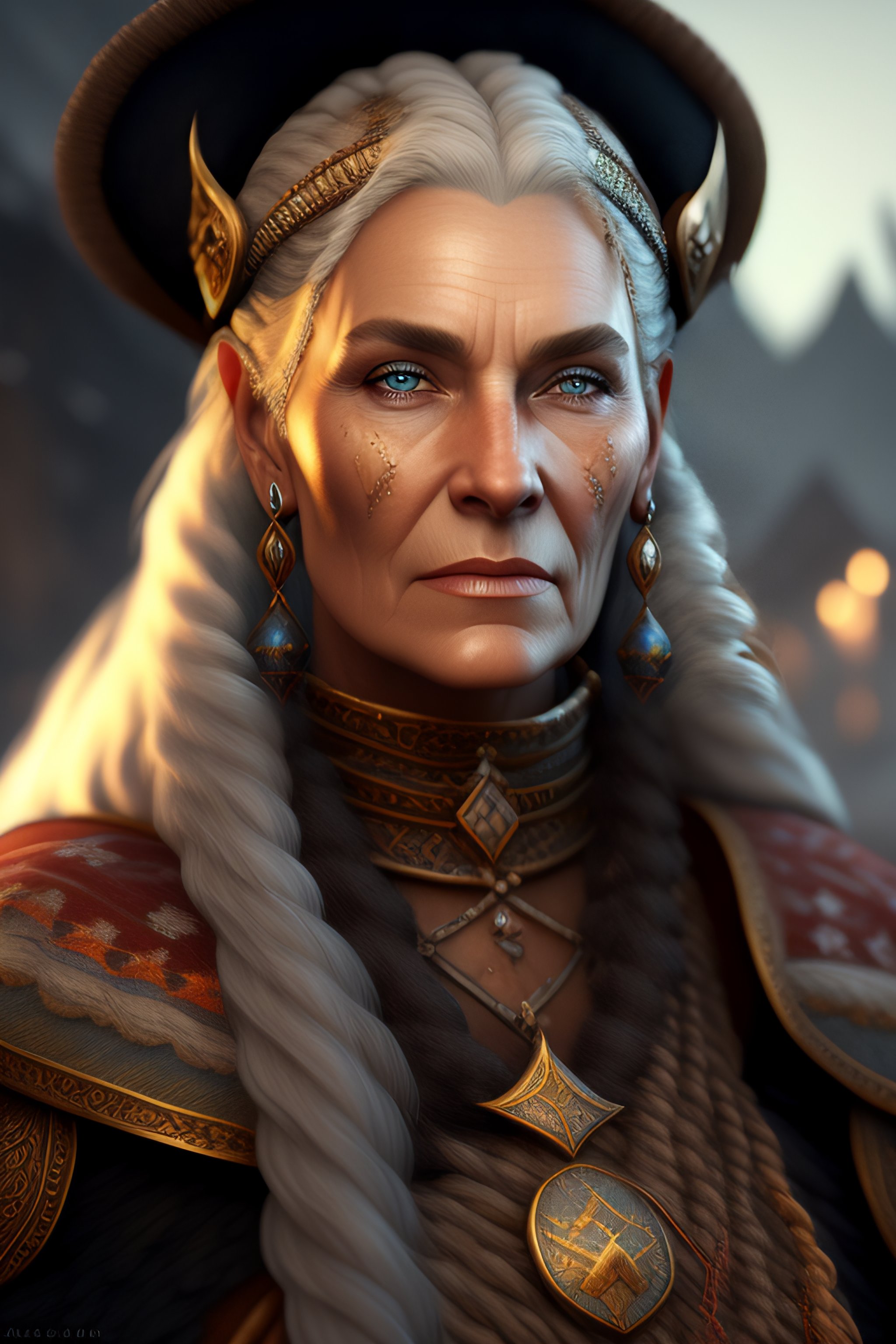 Old viking woman, beautiful, realistic face, detailed, matte painting, deep color, fantastical, intricate detail, splash screen, complementary colors, fantasy concept art, 8k resolution trending on artstation unreal engine 5, symmetrical