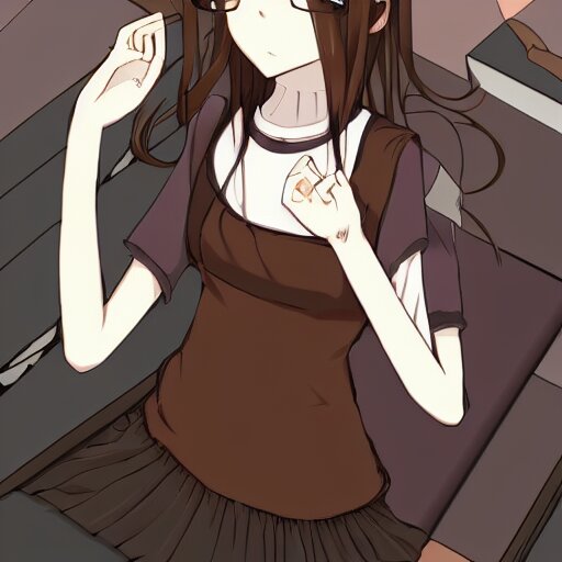 Anime style, manga linework, anime girl, brown hair, adorable cute demure anime librarian wearing woolen sleeveless turtleneck, glasses girl, view from above, boyfriend angle, hd upscaled pixiv, sharp focus, trending image