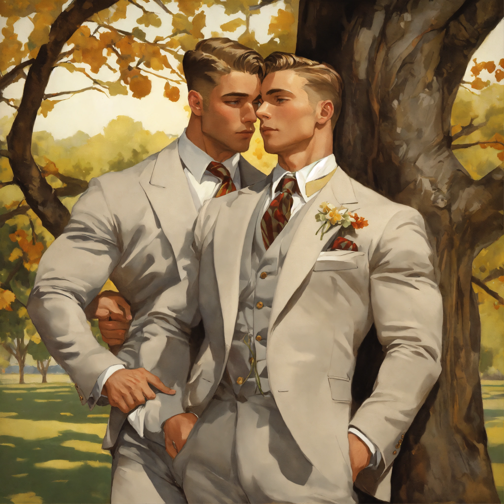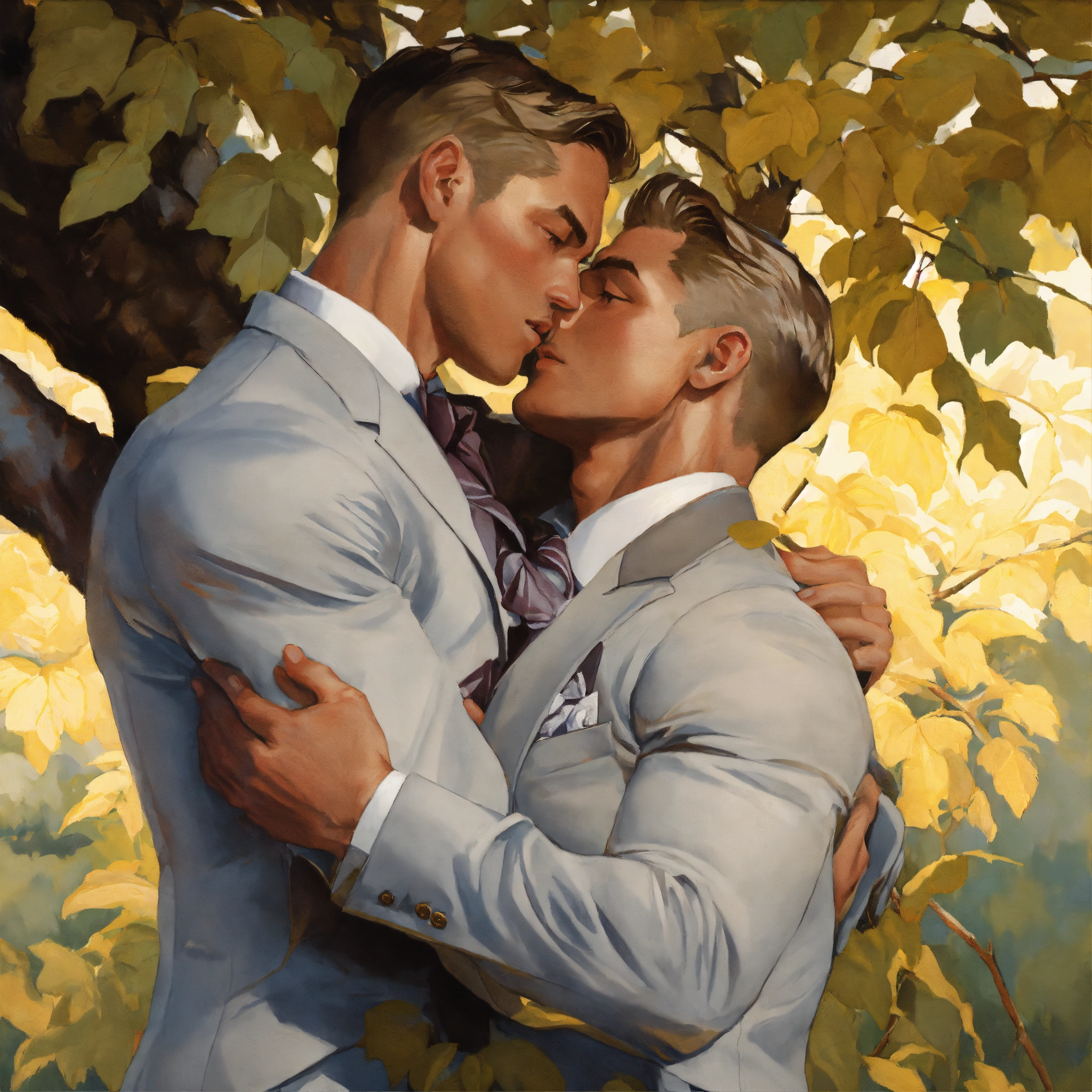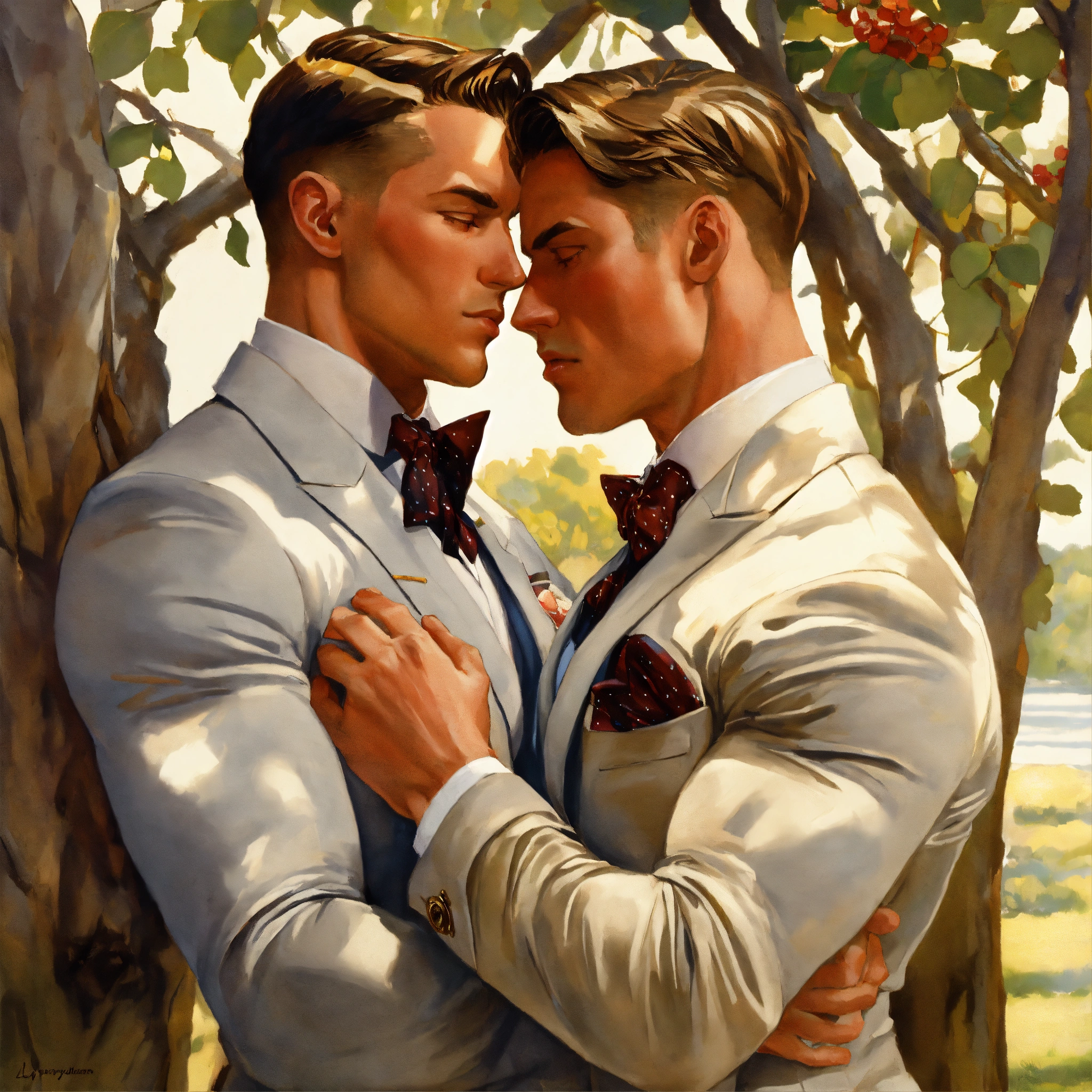 embracing under a tree