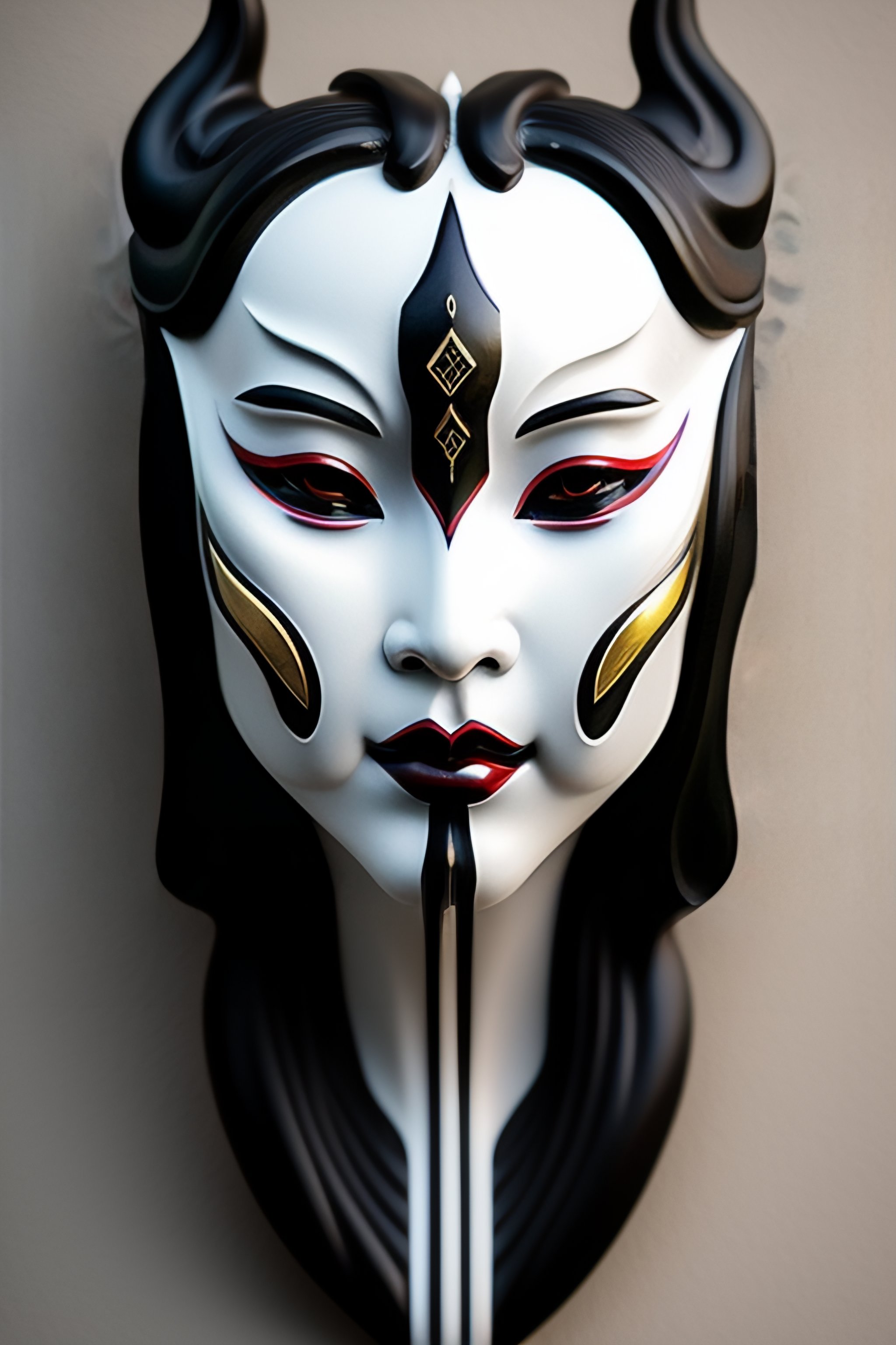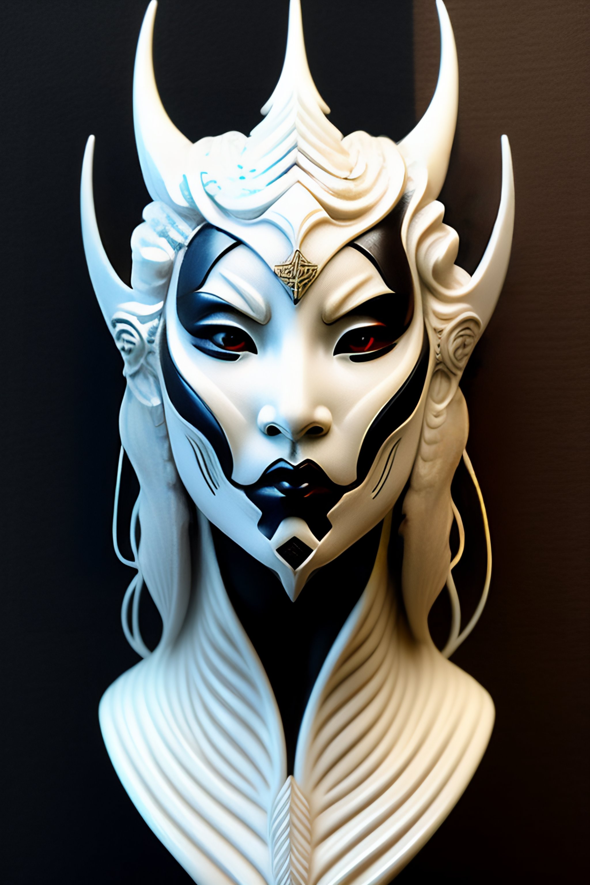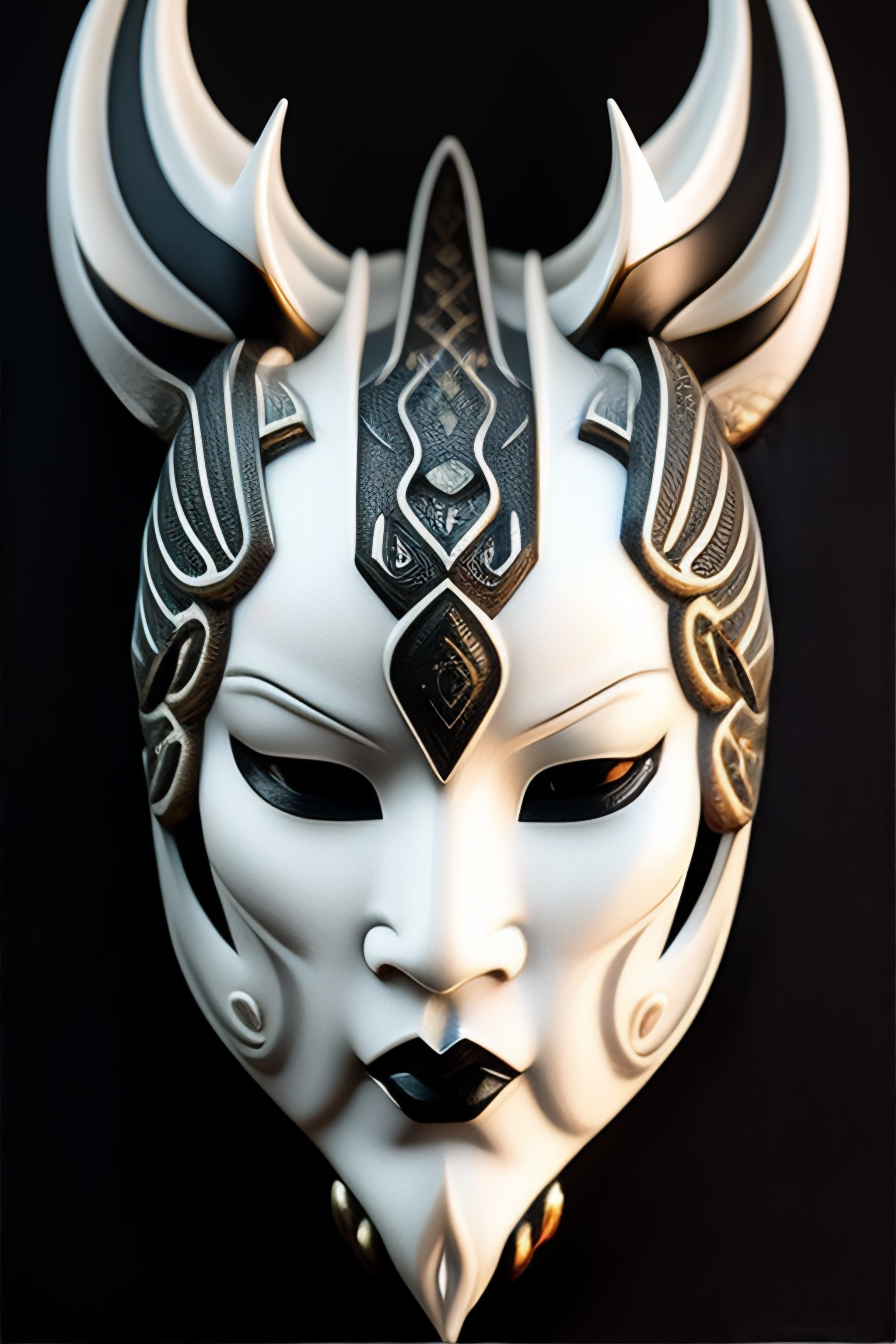 Only oni mask, cyberpunk, white and black, 2d, highly detailed beautiful organic molding, art nouveau, sharp focus, masterpiece