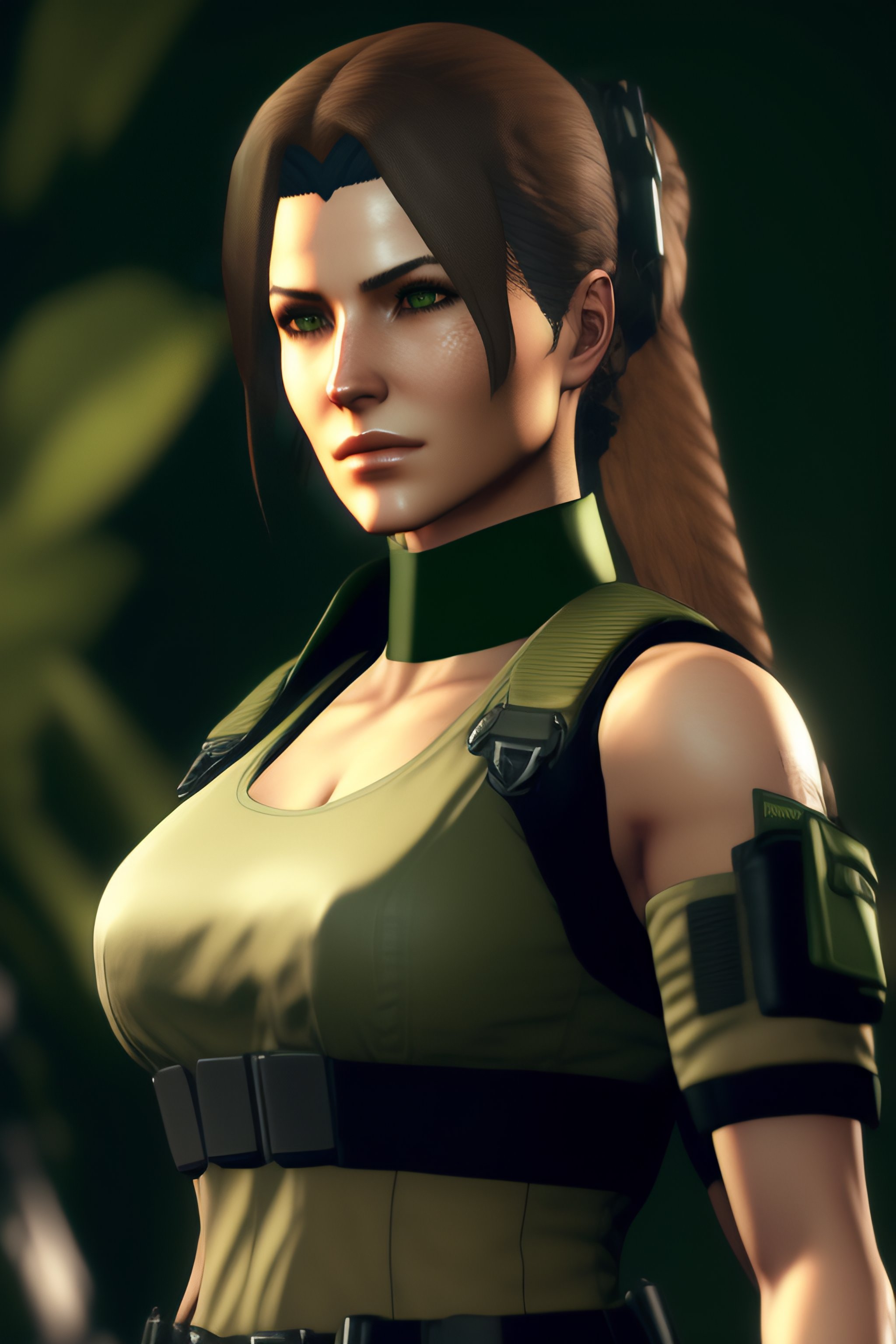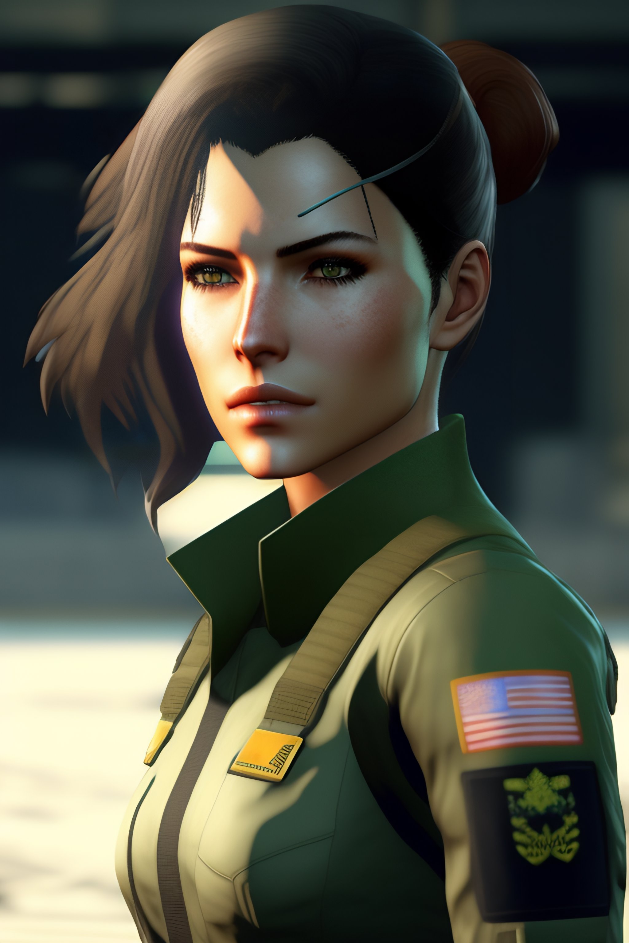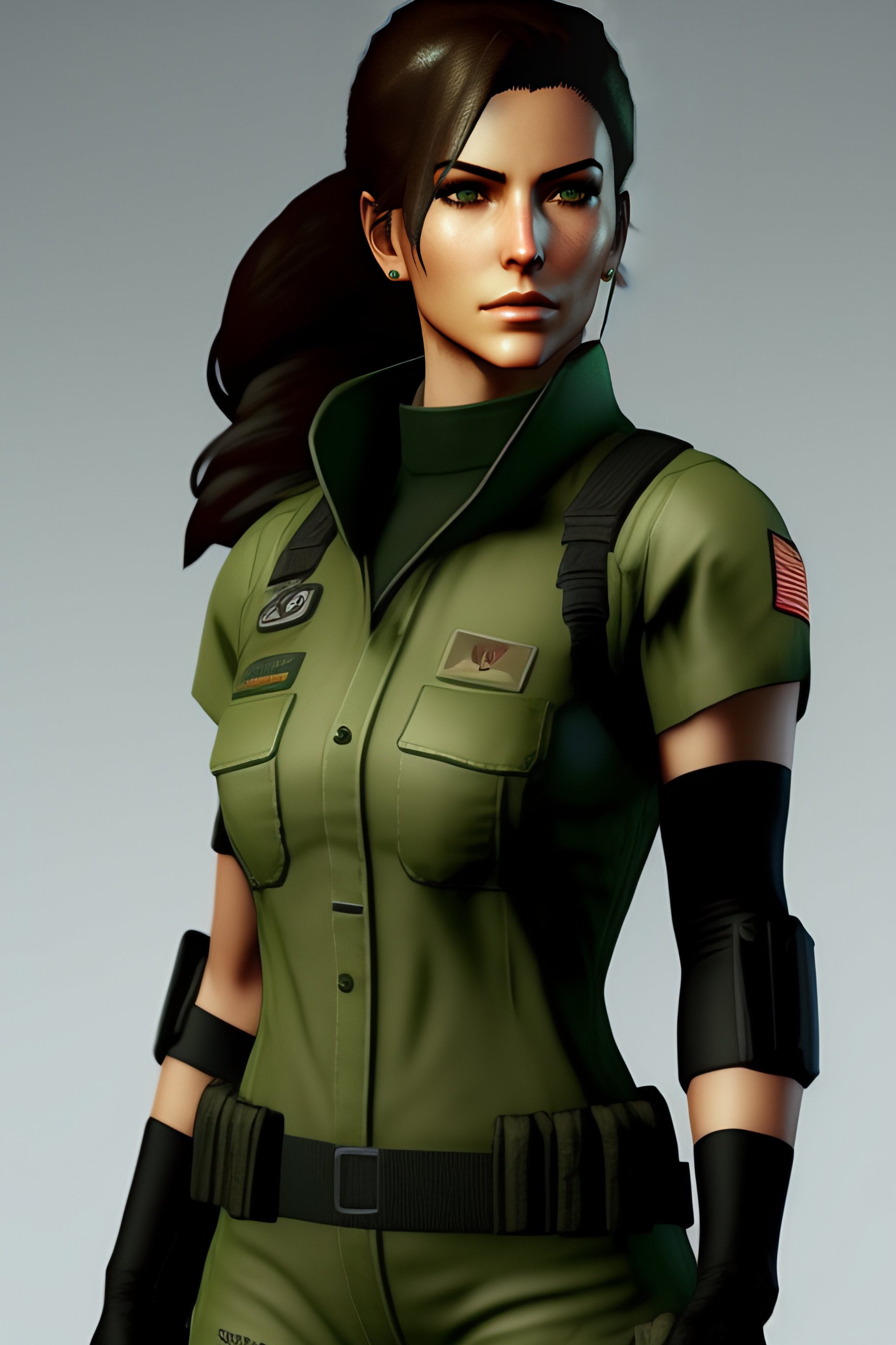 Metal gear solid v: the phantom pain draw quiet character. quiet's outfit is bold, but as the player's bond with her increases, they can develop other outfits for her. the outfits the player can develop for her are: (blood), (silver q), (gold q) and xof uniform (gray xof). an alternate uniform called sniper wolf can be developed after mission 42 has been completed. she has pale white skin, brown hairs and green eyes. during the hospital raid, she appears to wear a peculiar xof gray uniform, albeit without the patch, wearing it with rolled sleeves and green military gloves. she has a radio near her chest, and red stun grenades on her belt. she has a practical haircut, with her hair being short and arriving just at her neck. after the therapy, her appearance changes. she styles her hair differently, and due to the changes made by the therapy, she is forced to wear clothing that exposes her skin. in her outfit as a buddy, she wears a green military glove on her right hand, a black glove that covers most of her arm with "ct-1030100 anti-toxic bio-chem garment" written on it, a green harness, a knife, gun holsters and greenish military boots. she wears stockings filled with holes.