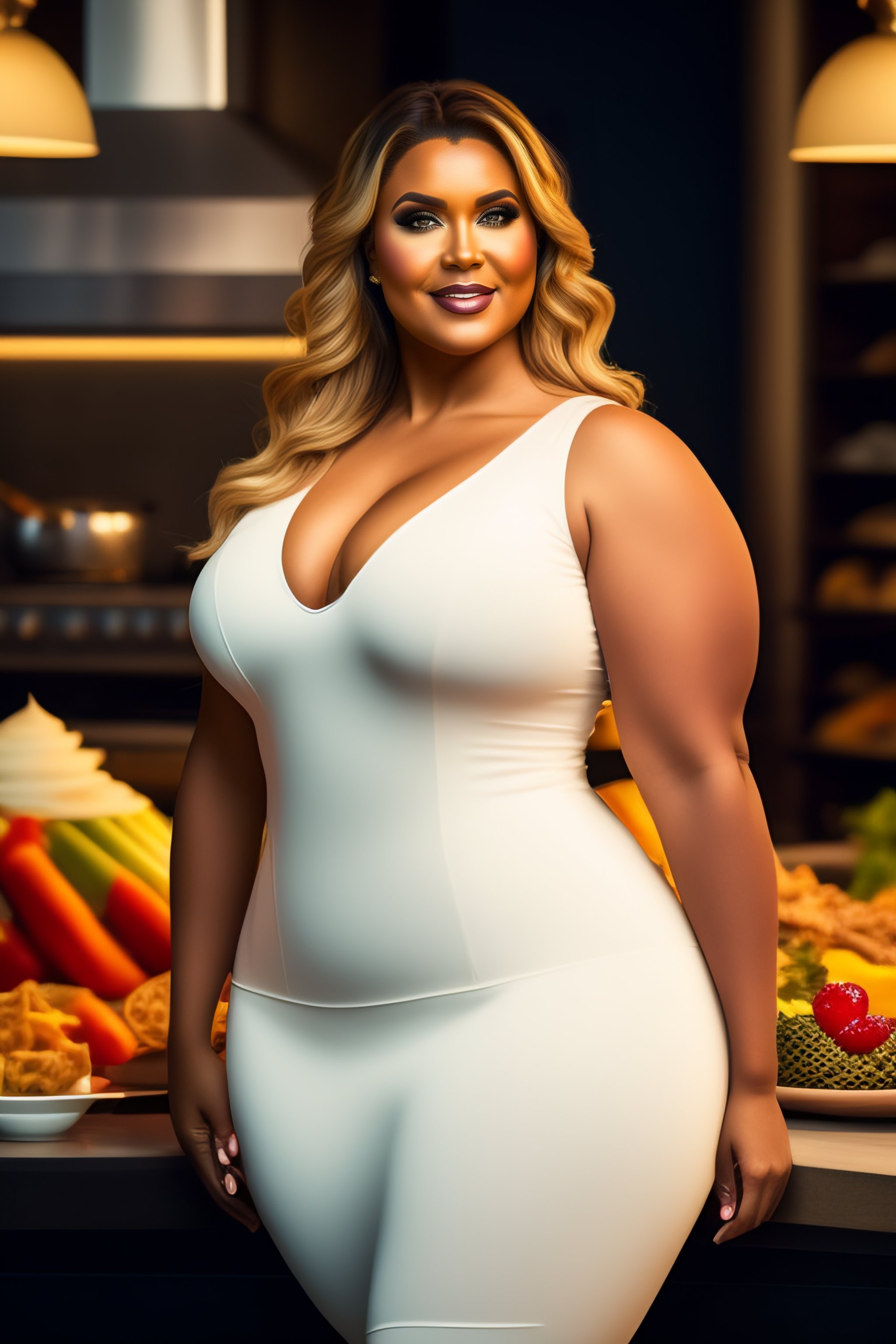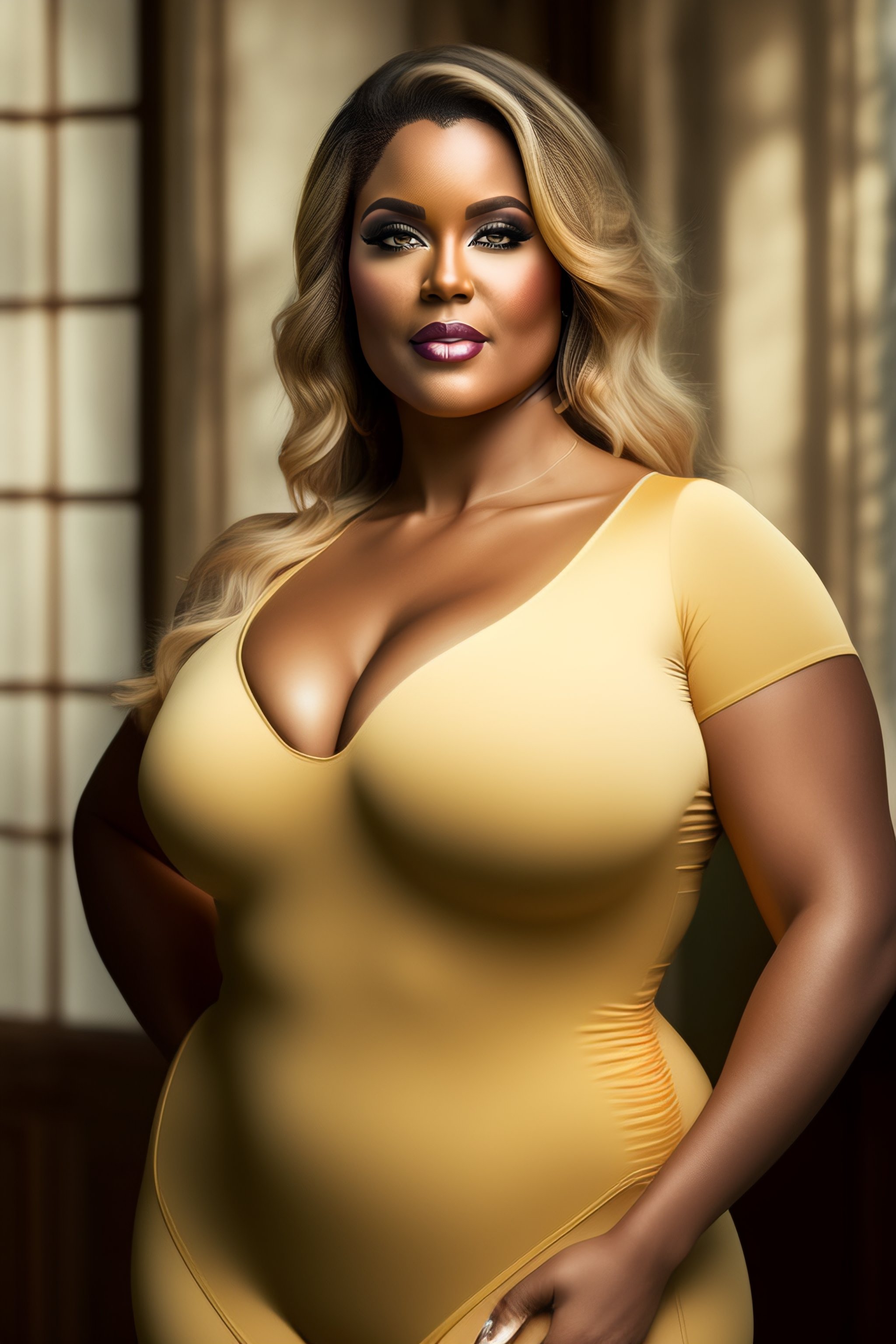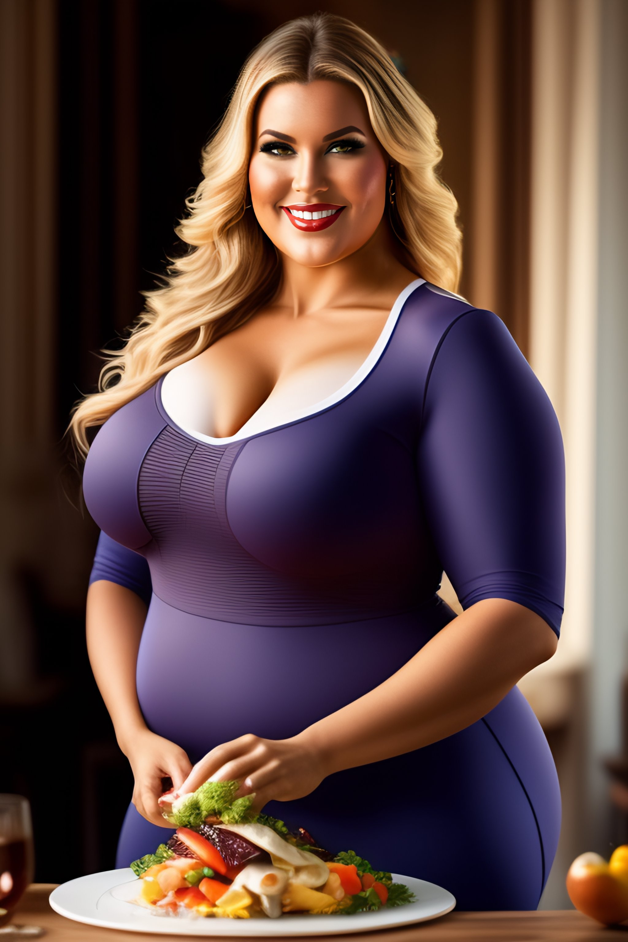 Full-figured shapely swedish woman wearing a tight and revealing shirt