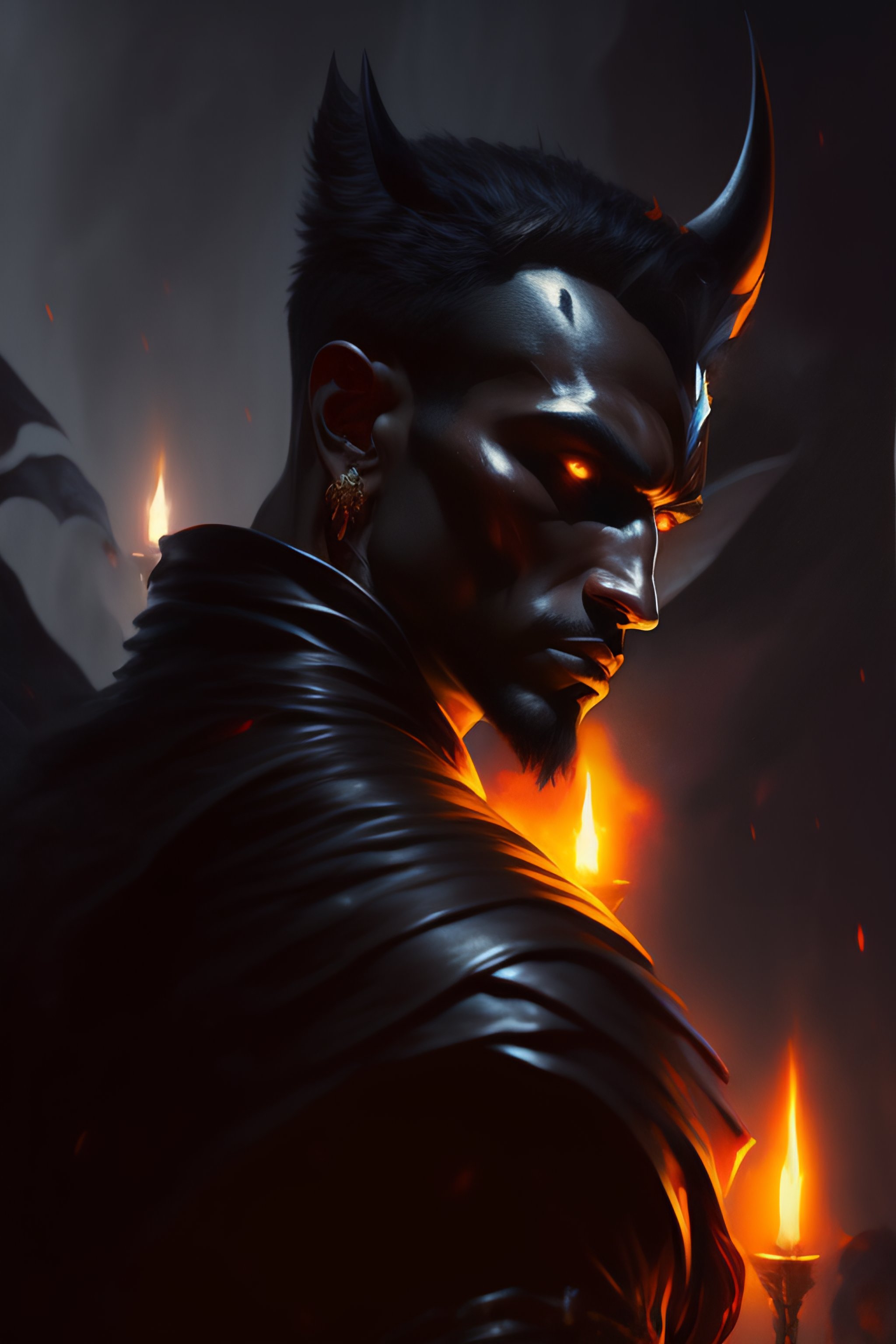 Dark evil satan men :15] as painted by greg rutkowski, highly detailed, black background, night, cave