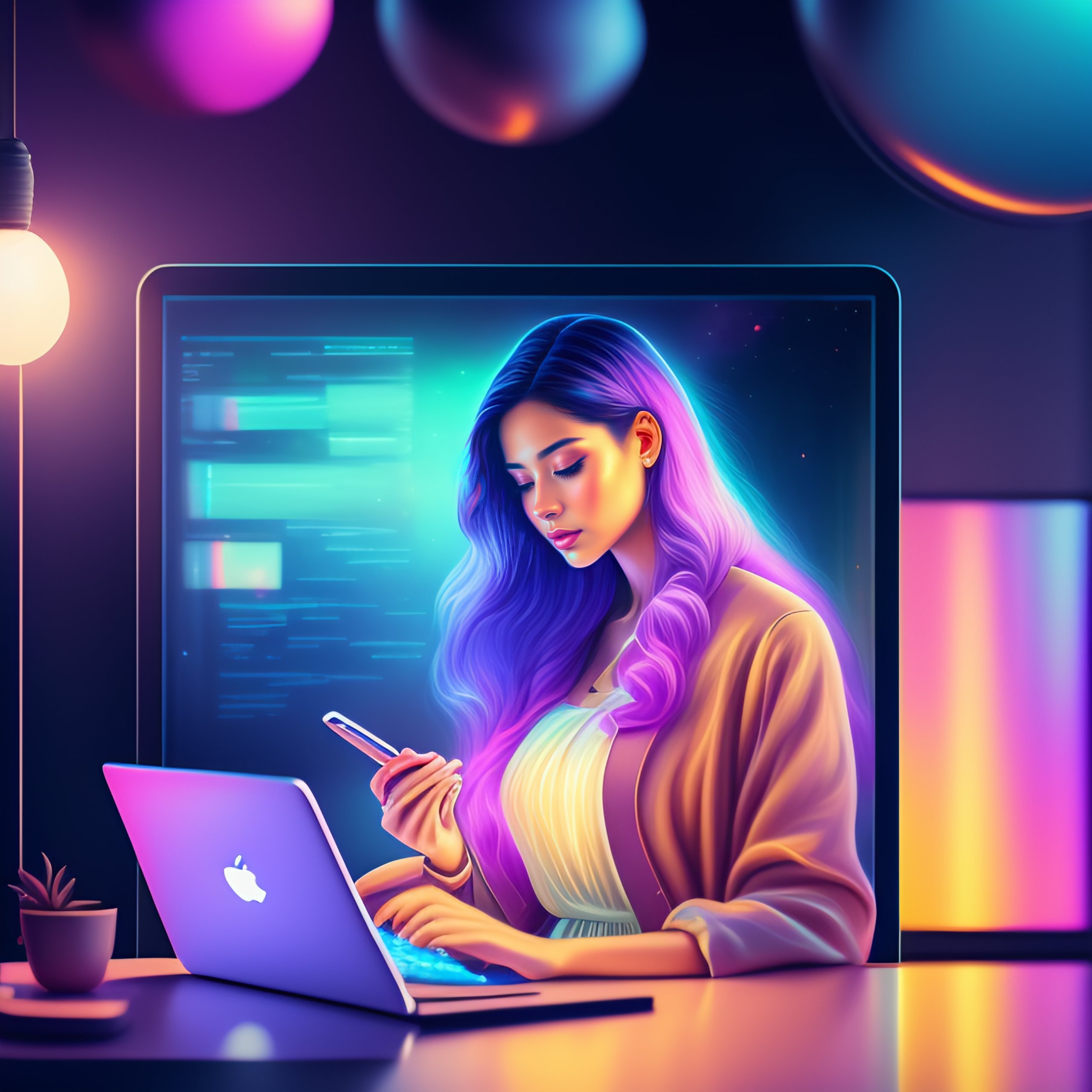 Woman programming on her laptop, coding aesthetic, fantasy, pastel colors aesthetic, highly detailed, surrealistic, digital painting, concept art, sharp focus, illustration