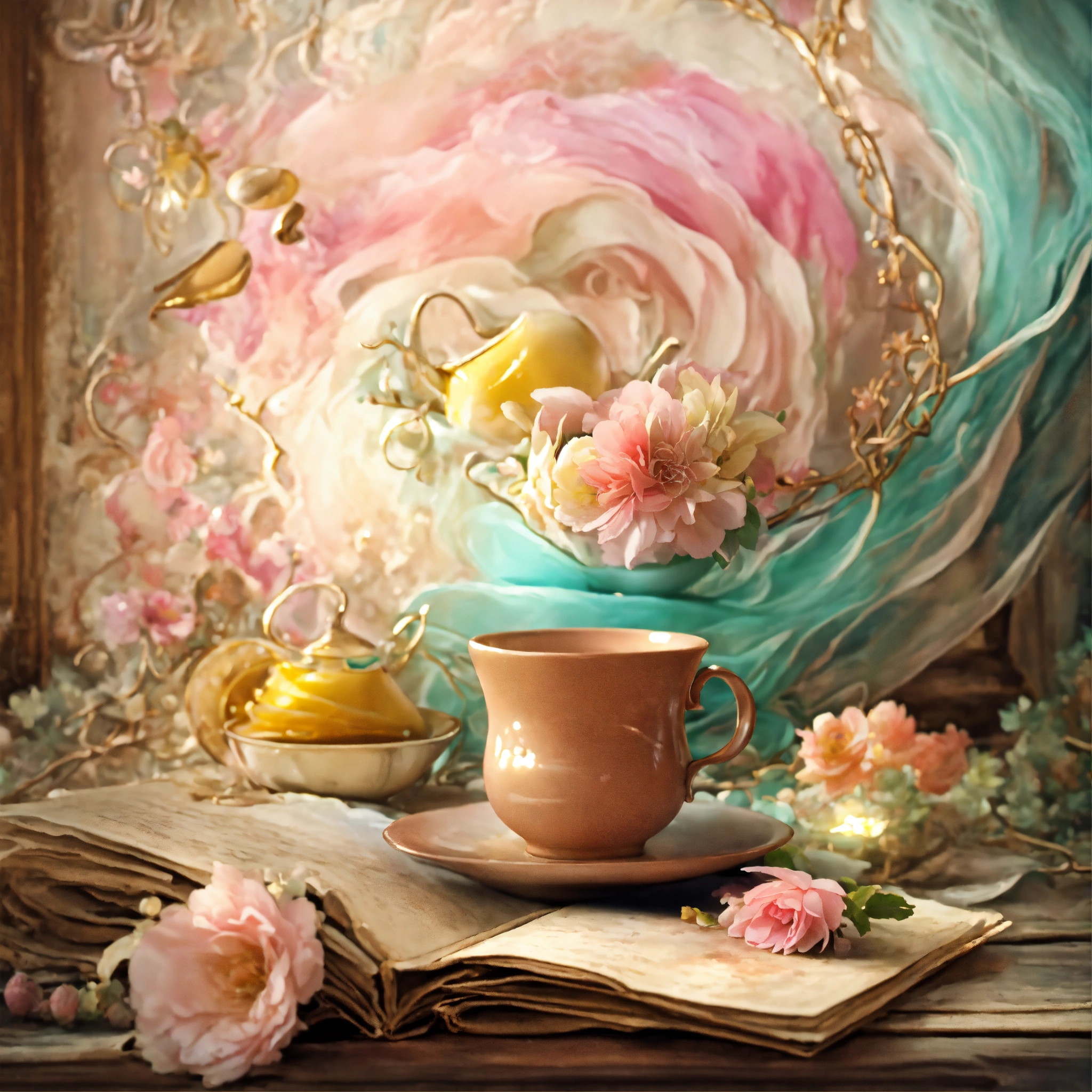Shabby chic dreamy mist pastel junk journals coffee tea the te swirling magical fairytale abstract art style