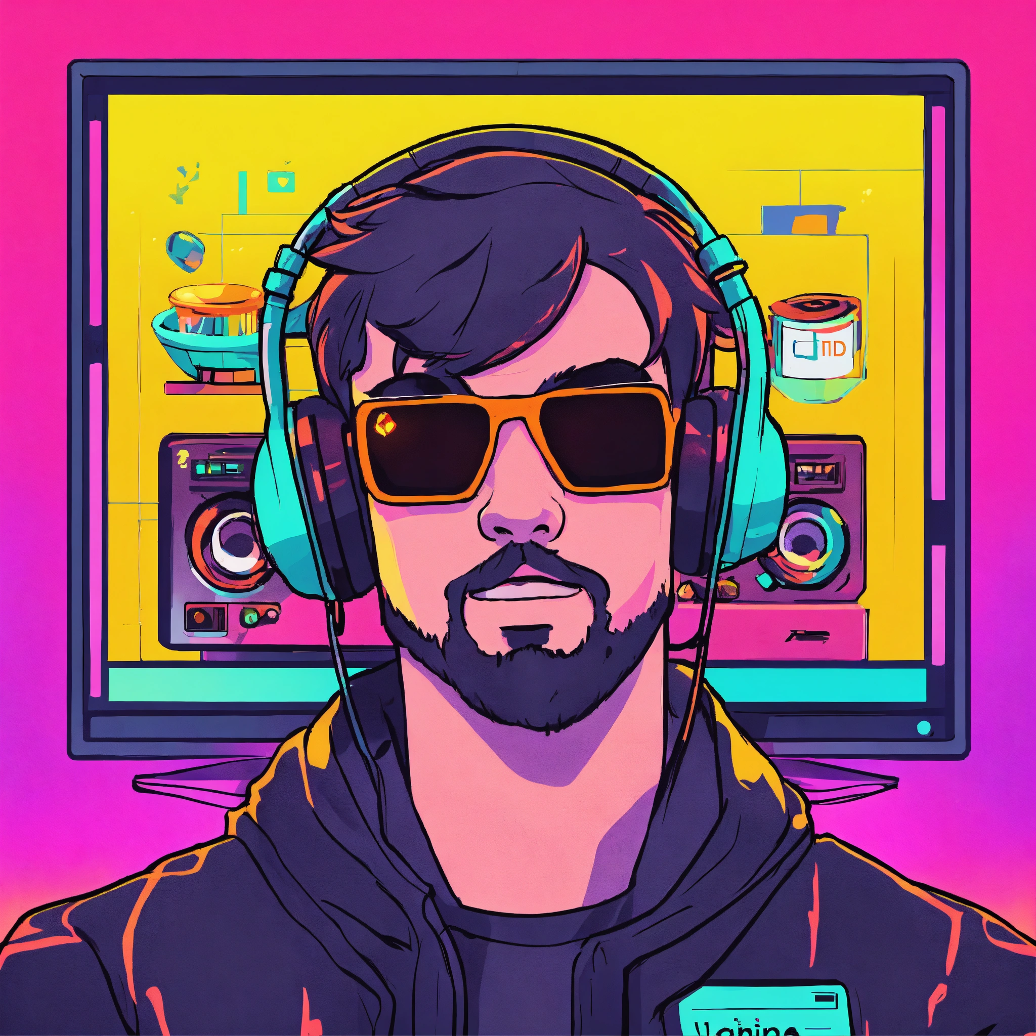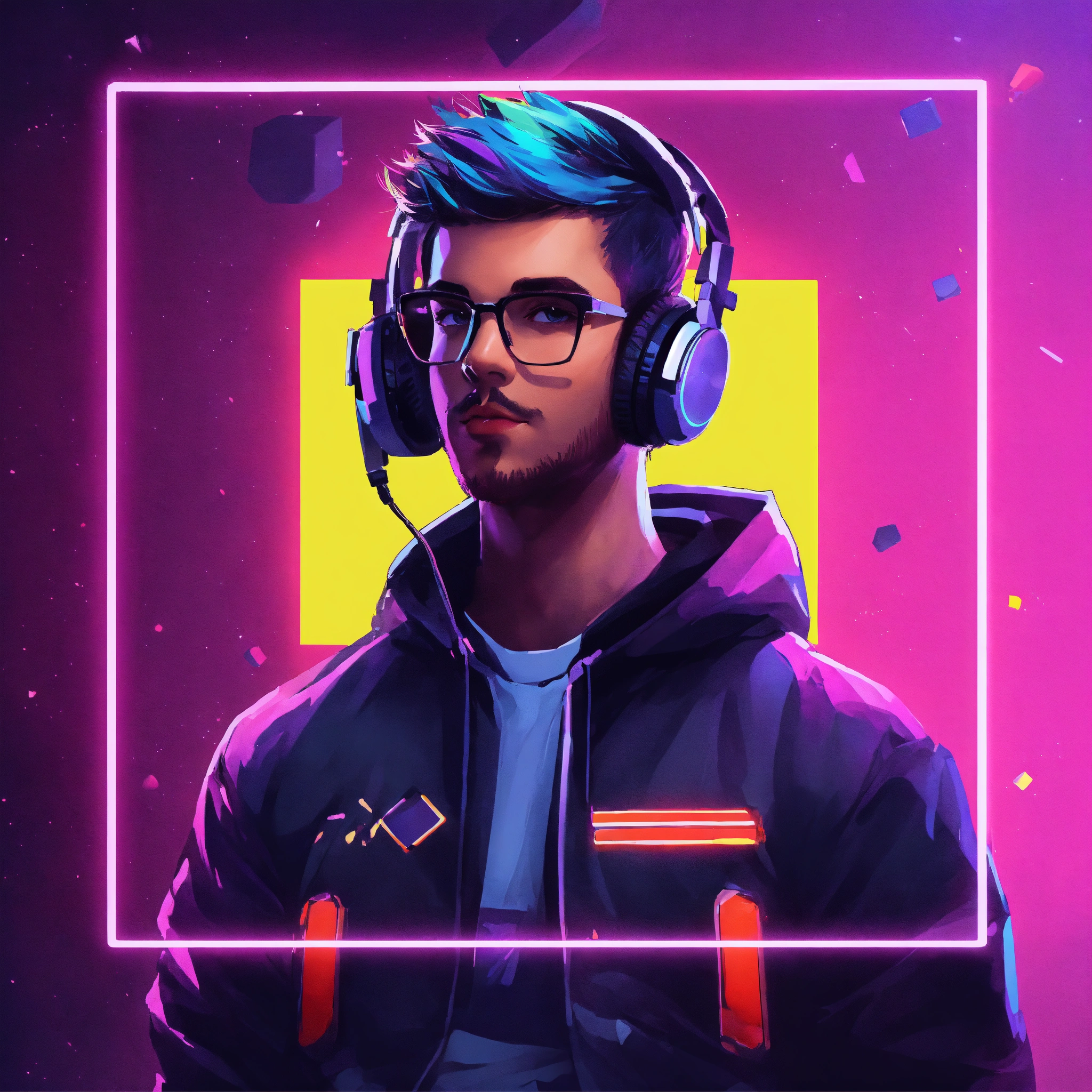 Produce a 98x98 profile picture for a youtube gaming channel that integrates educational aspects. include minimalistic art and highly contrasting neon colours. create a visually appealing image that embodies the spirit of gaming and learning, all within the confines of a small square frame. the profile picture should effectively communicate the channel's blend of entertainment and education without the use of text