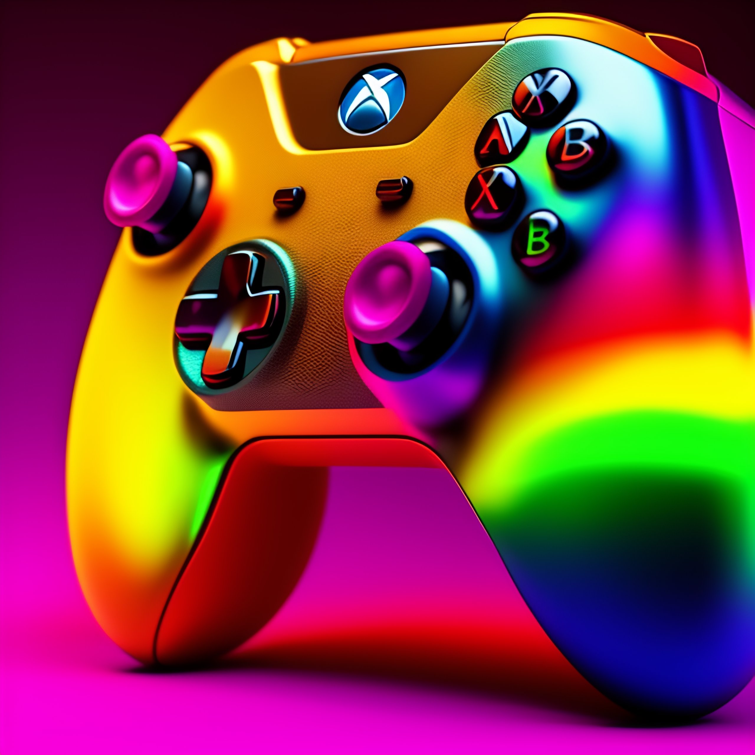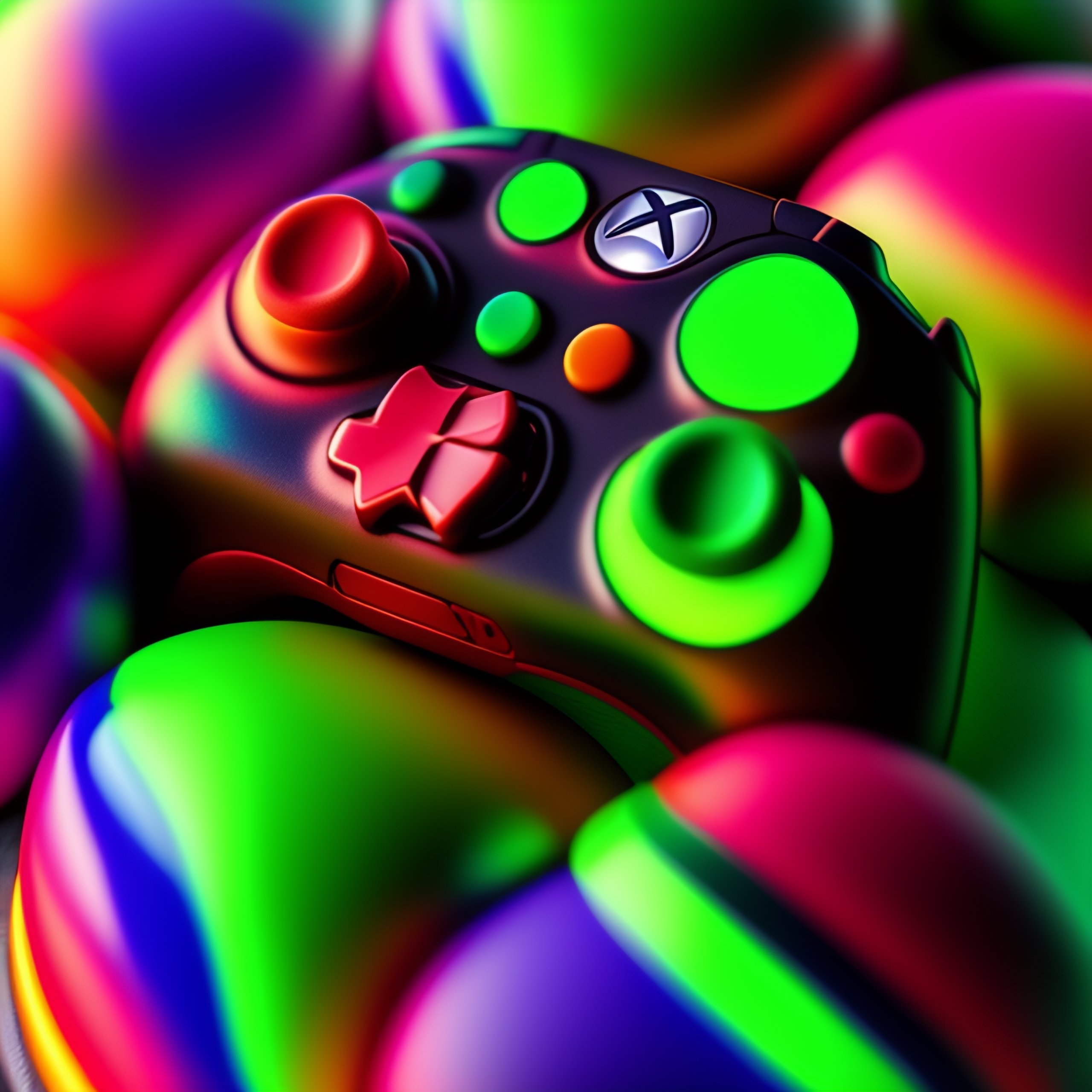 3d render of a xbox controller in neon colors 8k and rainbow sprinkles close up