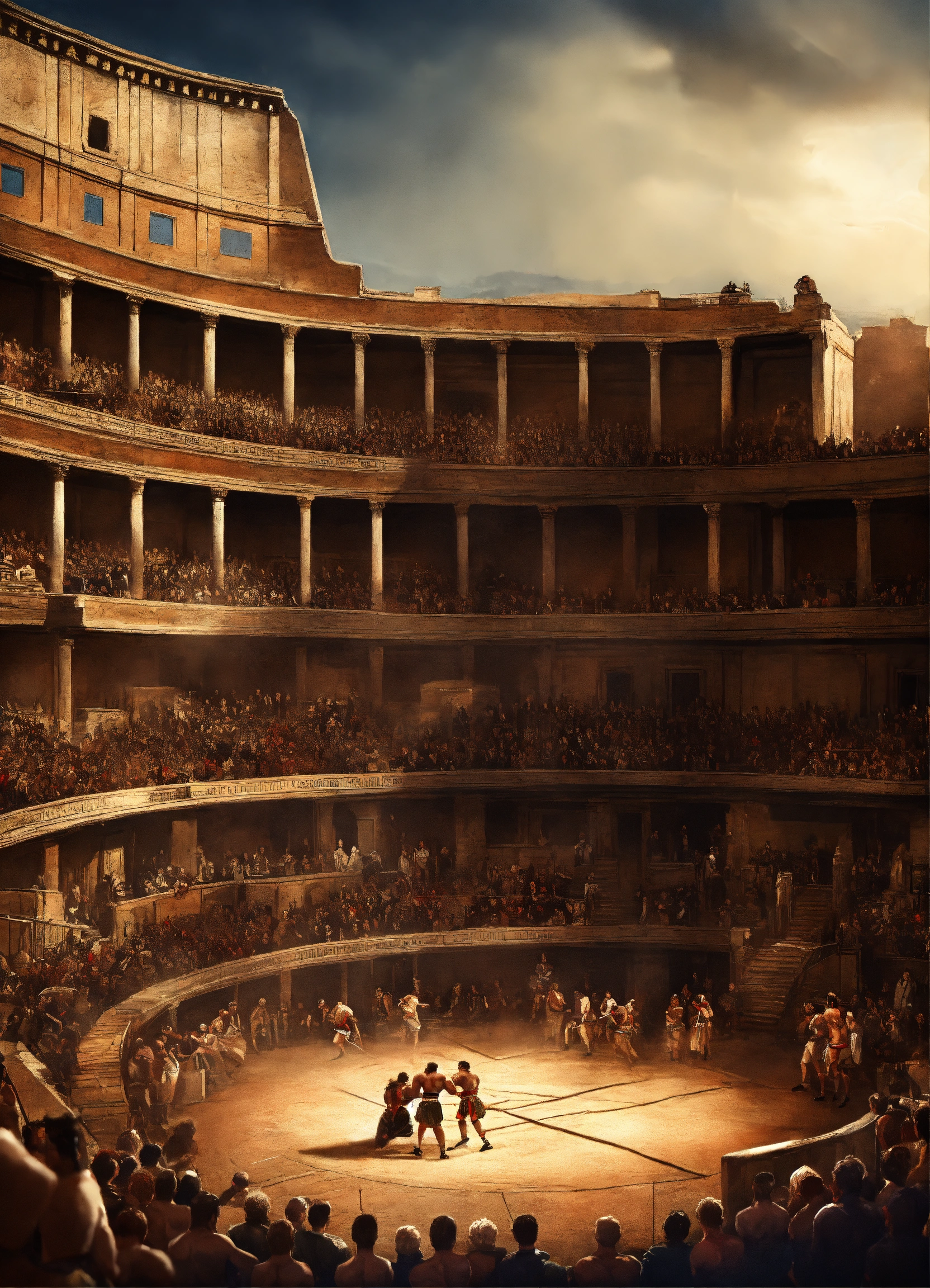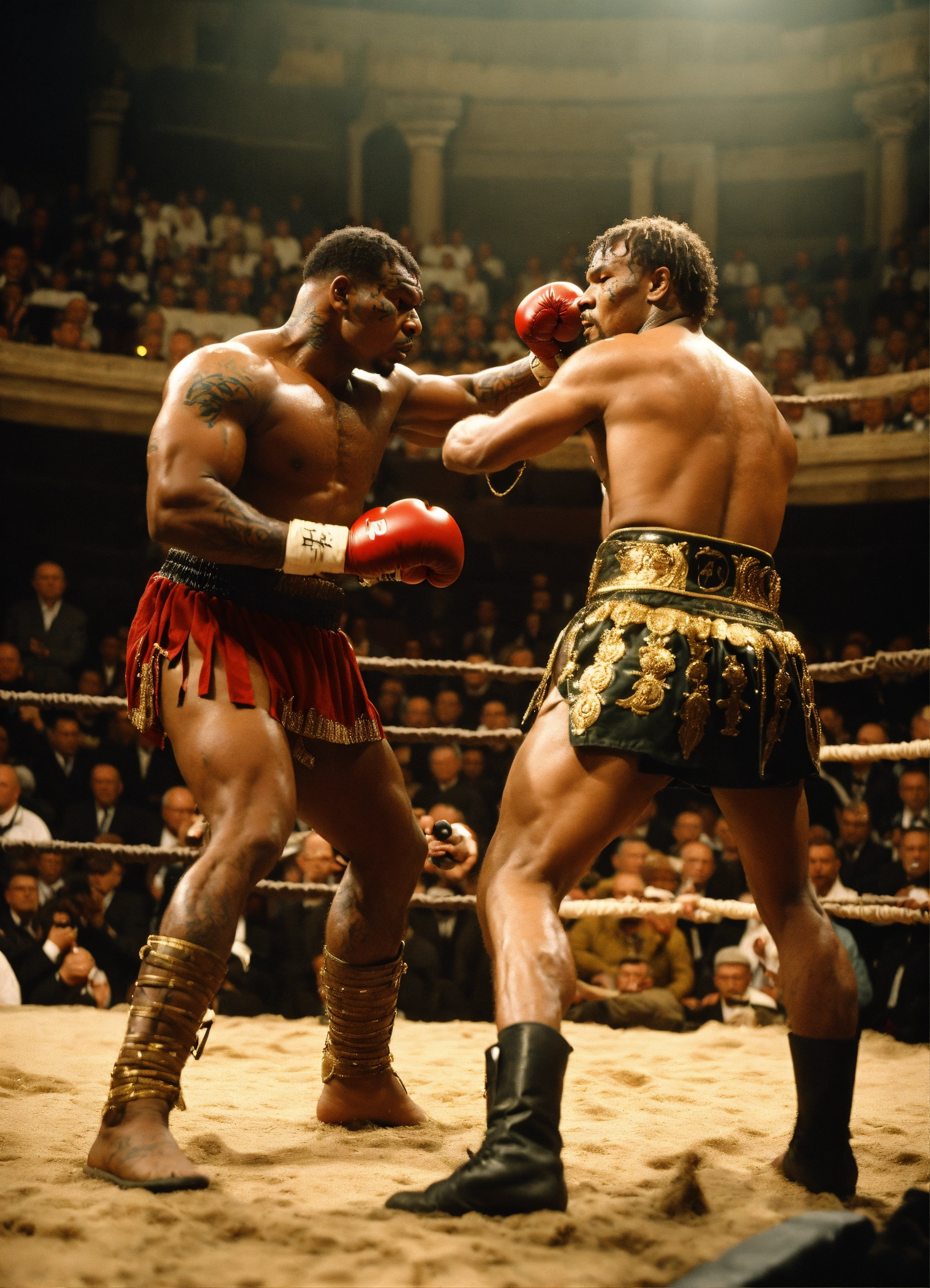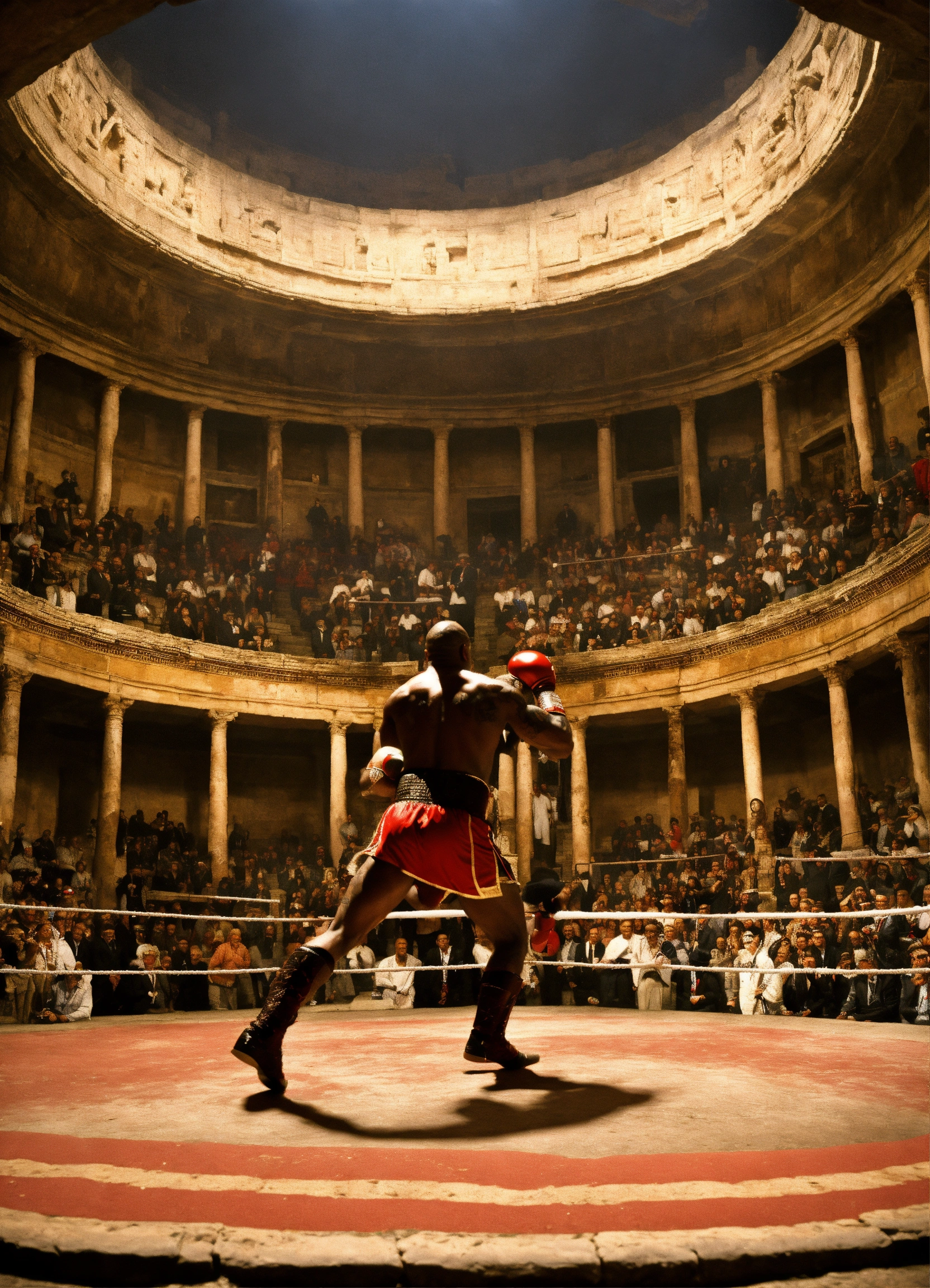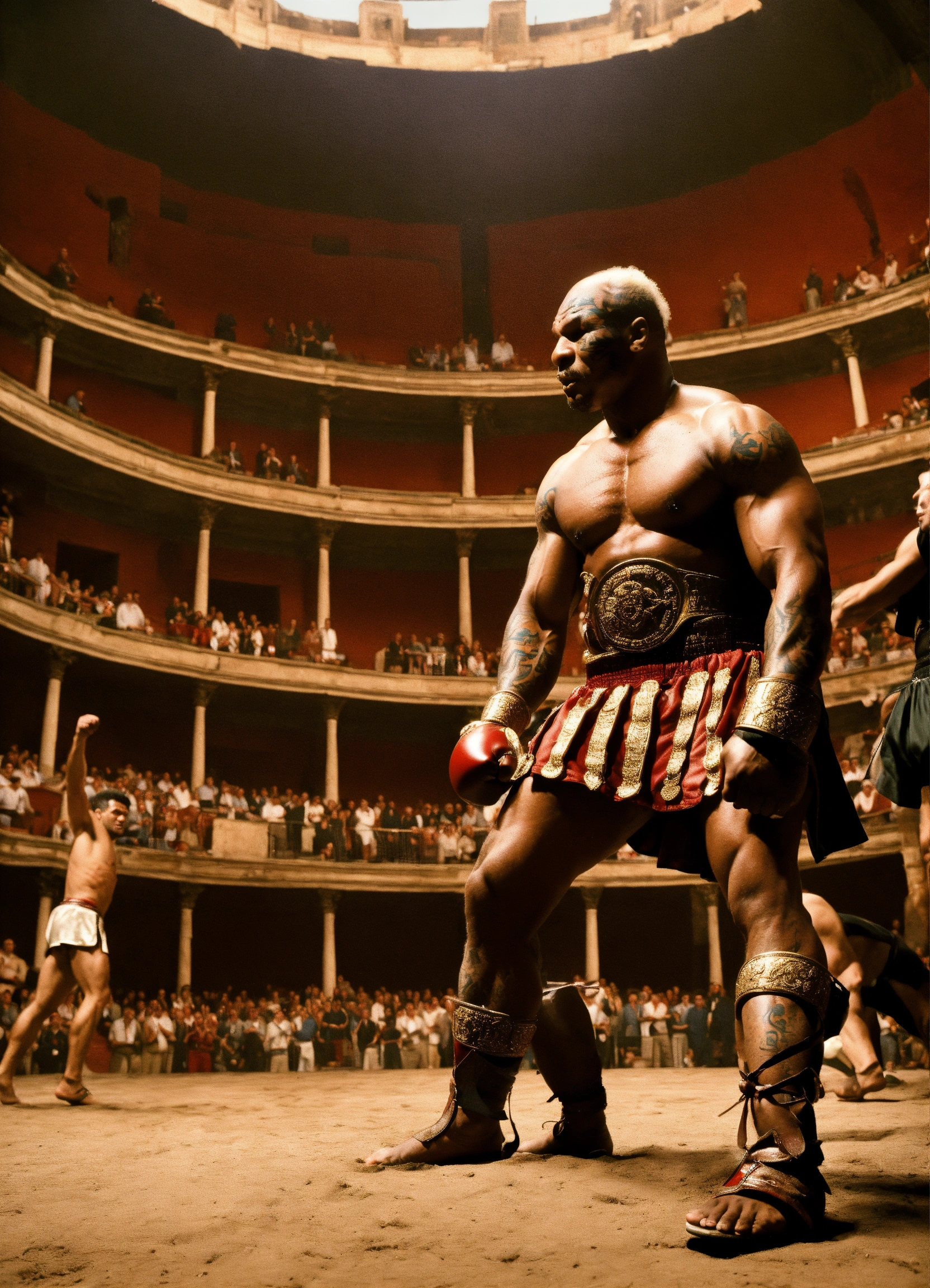 The mike tyson vs bruce seldon fight taking place in an ancient roman gladiator contest in the theatre of pompey in the time of caesar