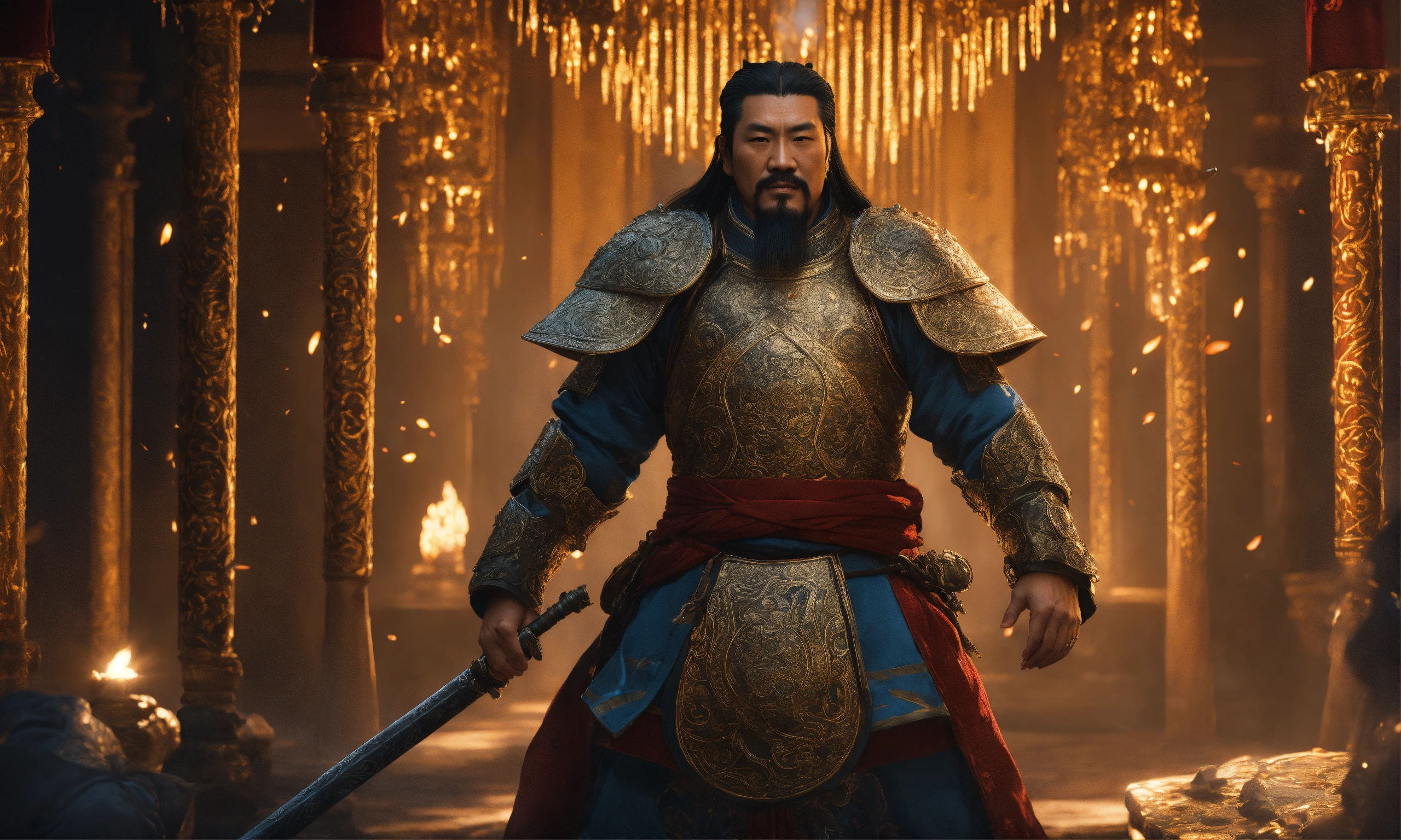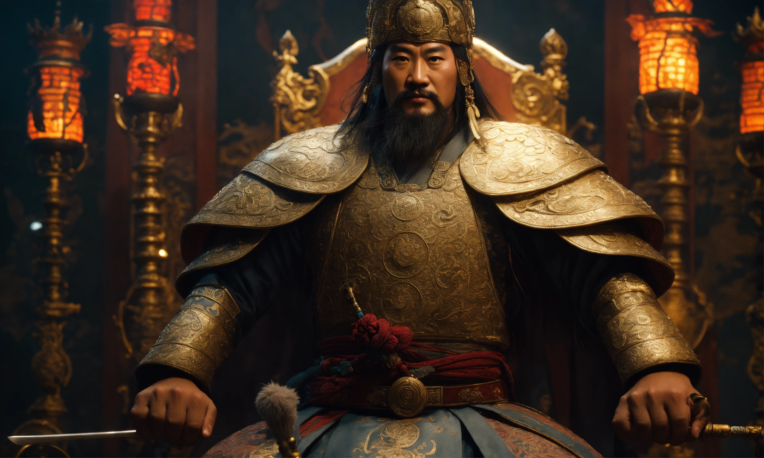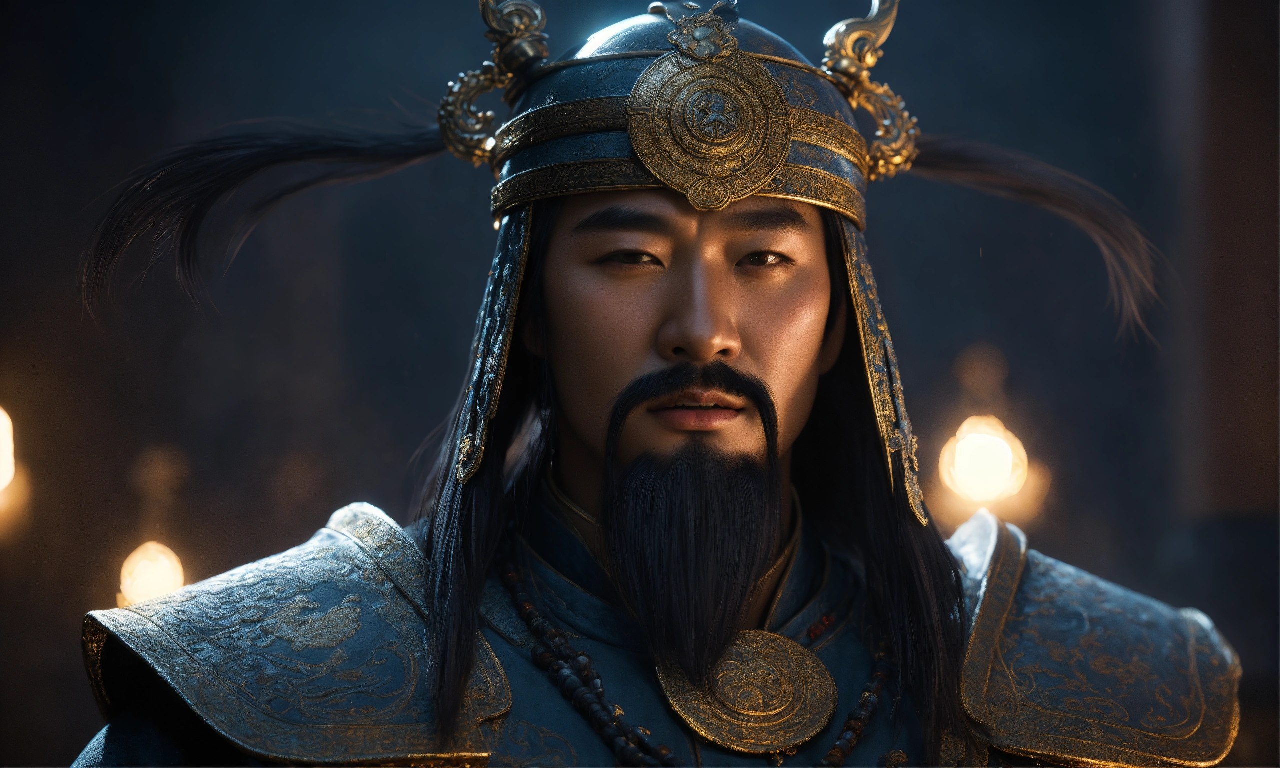 Unreal engine 5, dark-fantasy, kodak portrait 400, 8k, soft light, volumetric lighting, highly detailed, frazetta, portrait photo of ghengis khan, chinggis, subutai khan, intricate, elegant, highly detailed, detailed, dark fantasy, digital painting, artstation, concept art, smooth, sharp focus, illustration, art by otomo katsuhiro and shirō masamune and oshii mamoru. cosmic light in backfront