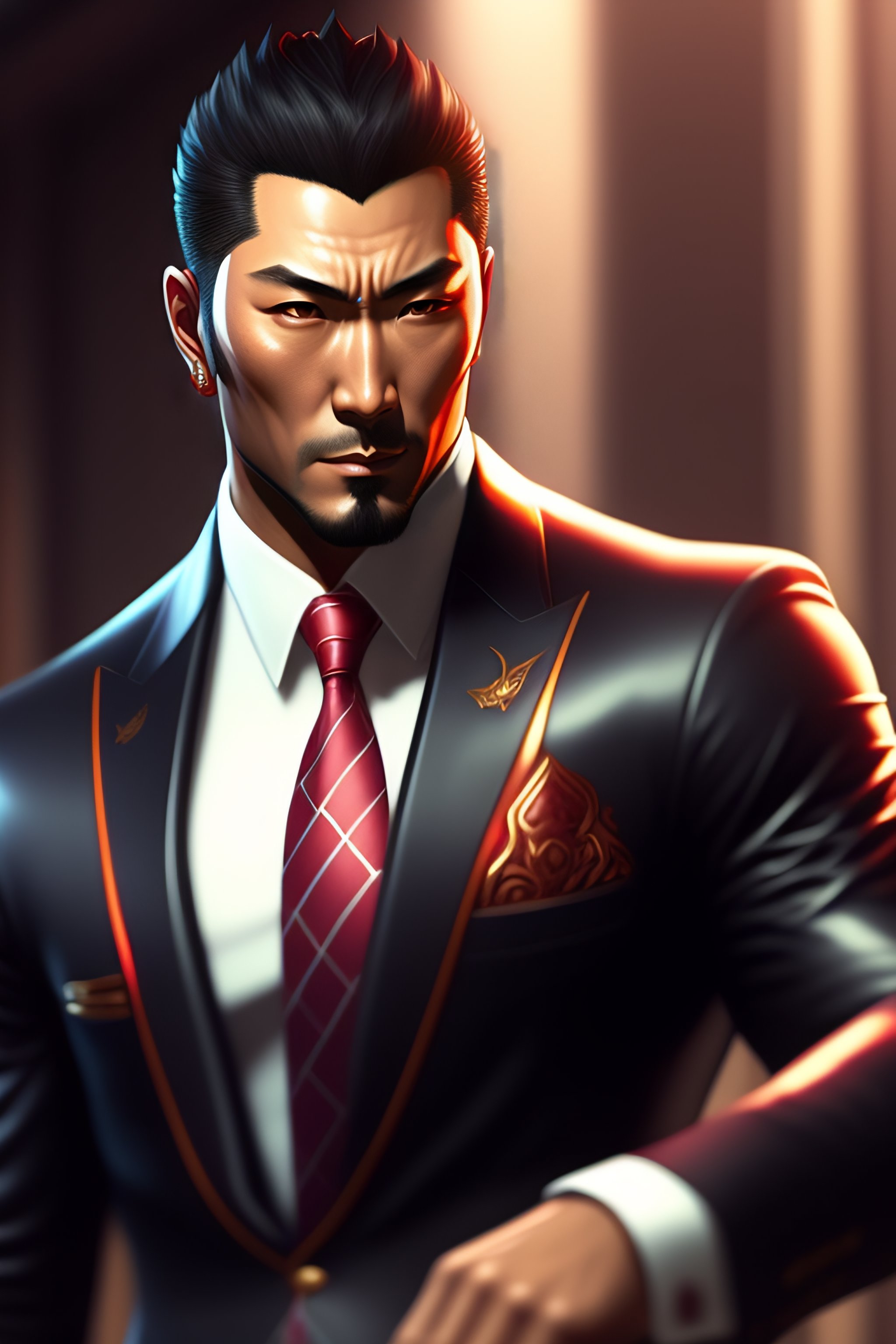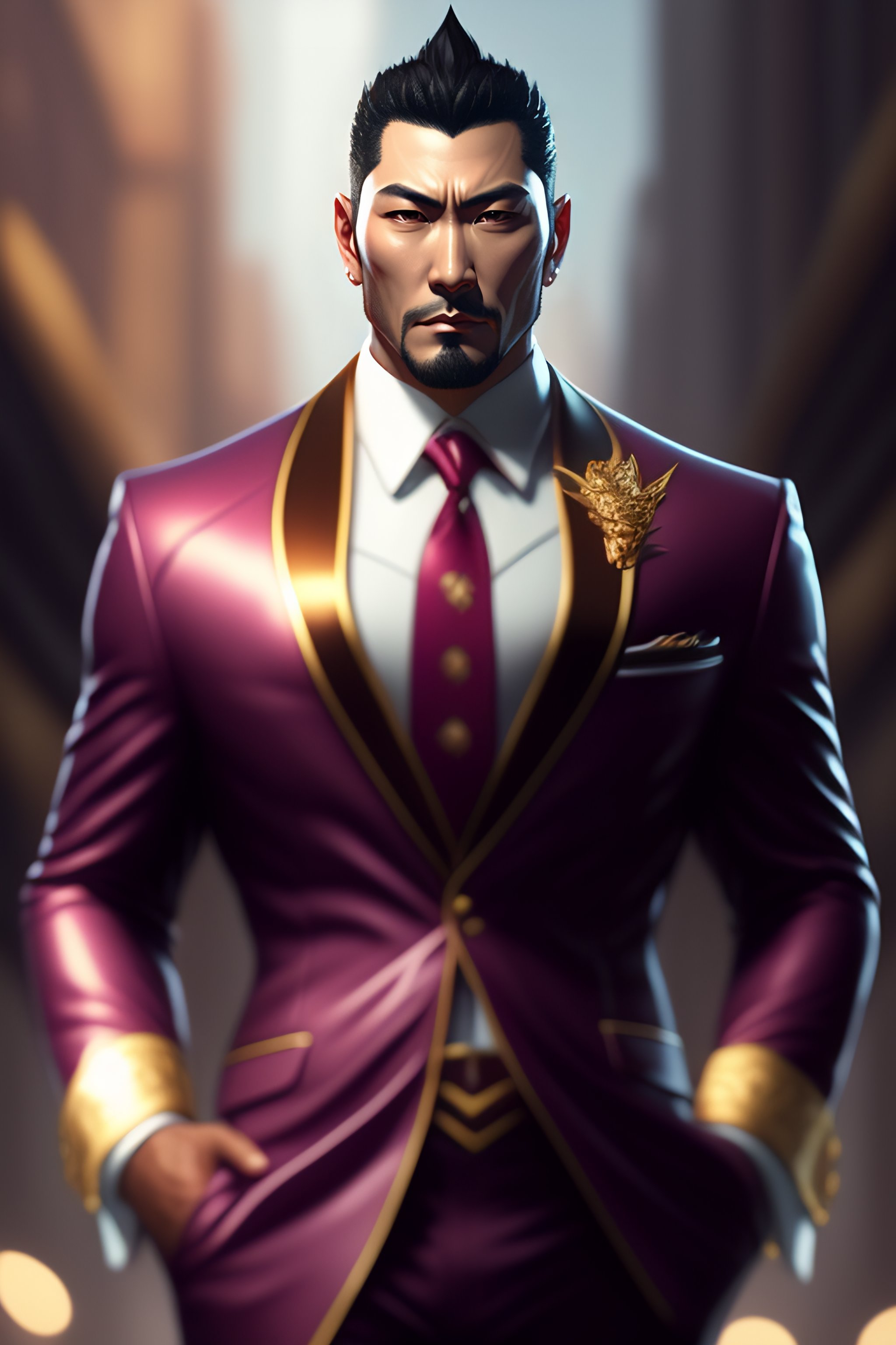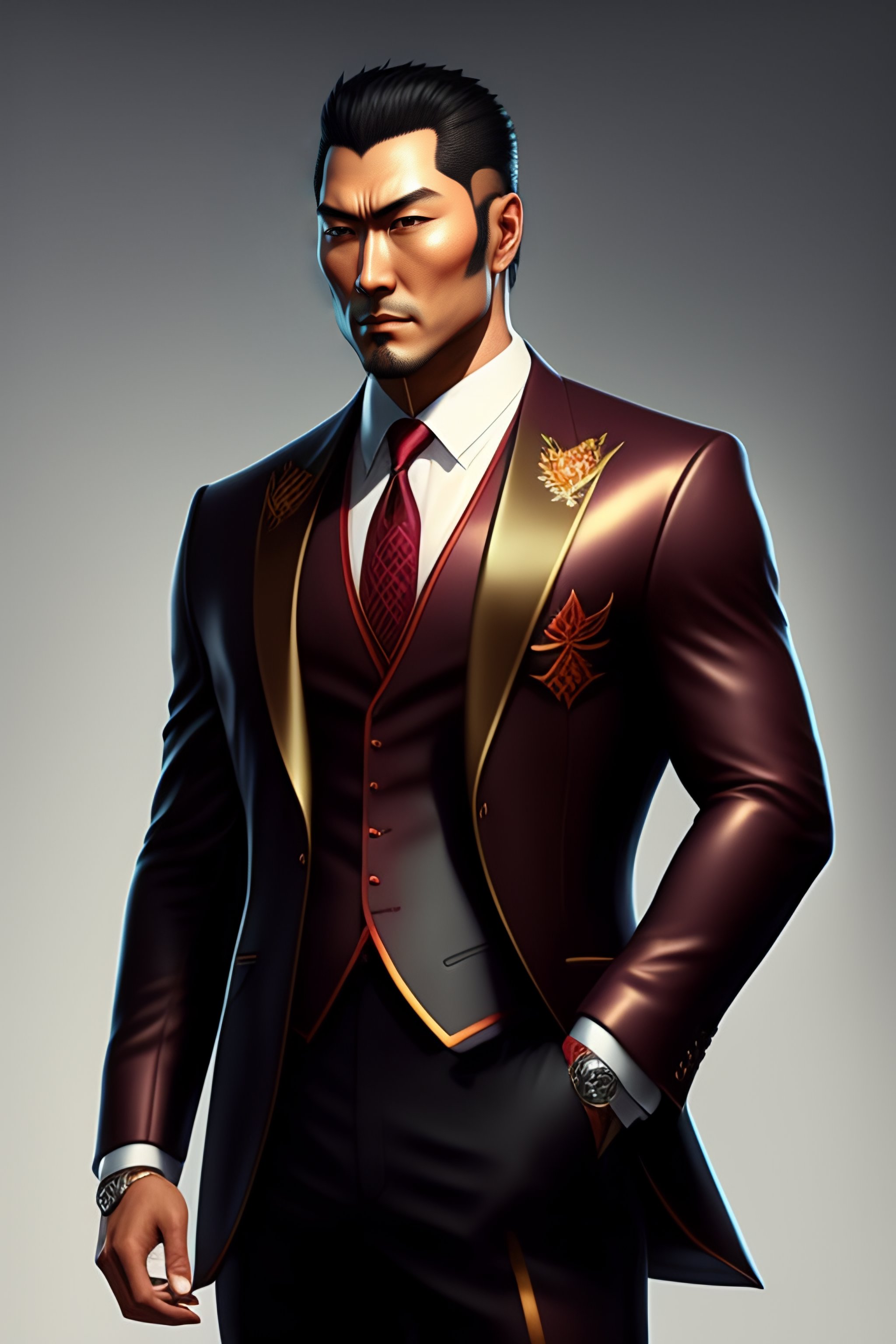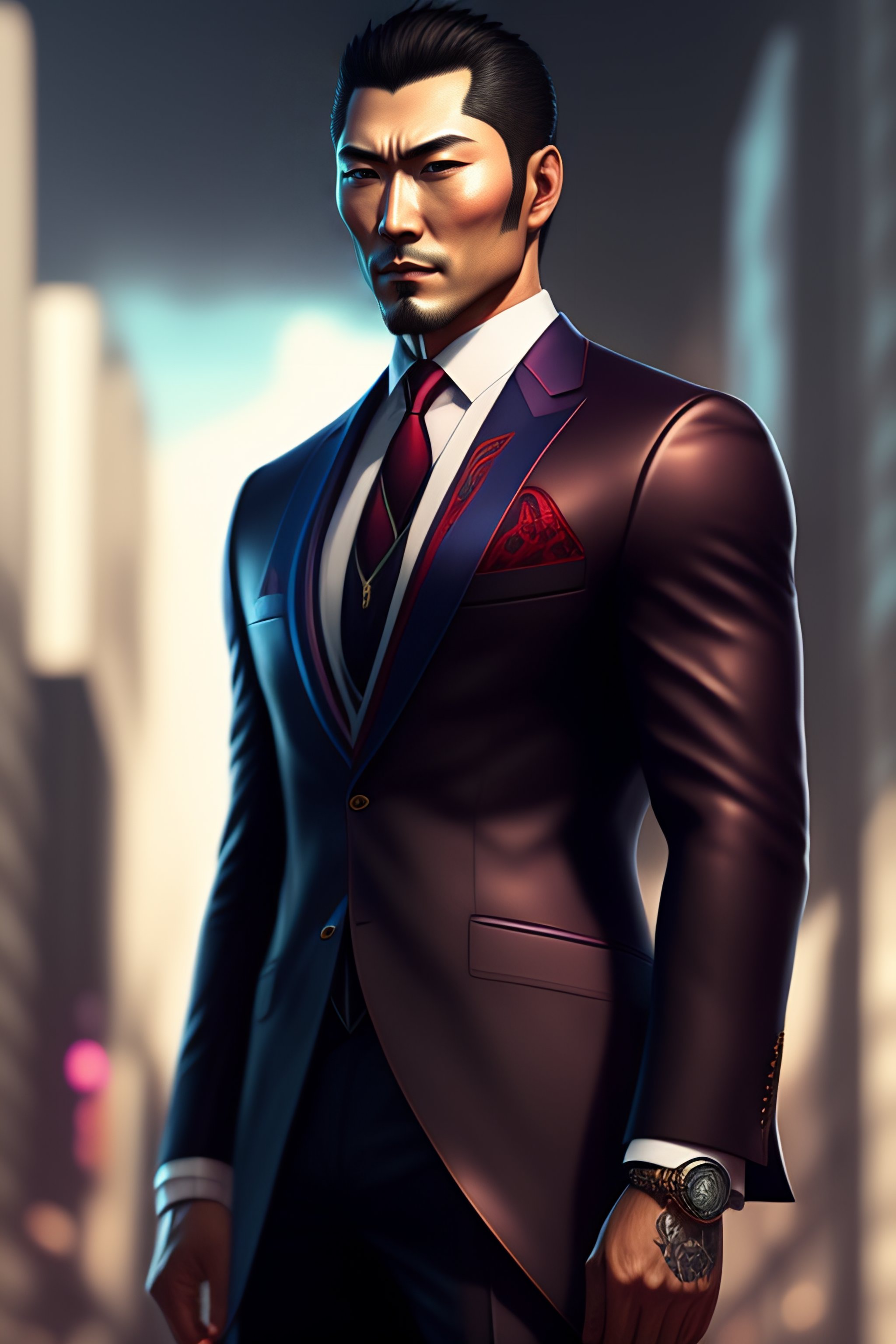 A highly detailed illustration of kazuma kiryu wearing suit, dramatic holding picaxe, intricate, elegant, highly detailed, centered, digital painting, artstation, concept art, smooth, sharp focus, league of legends concept art, wlop