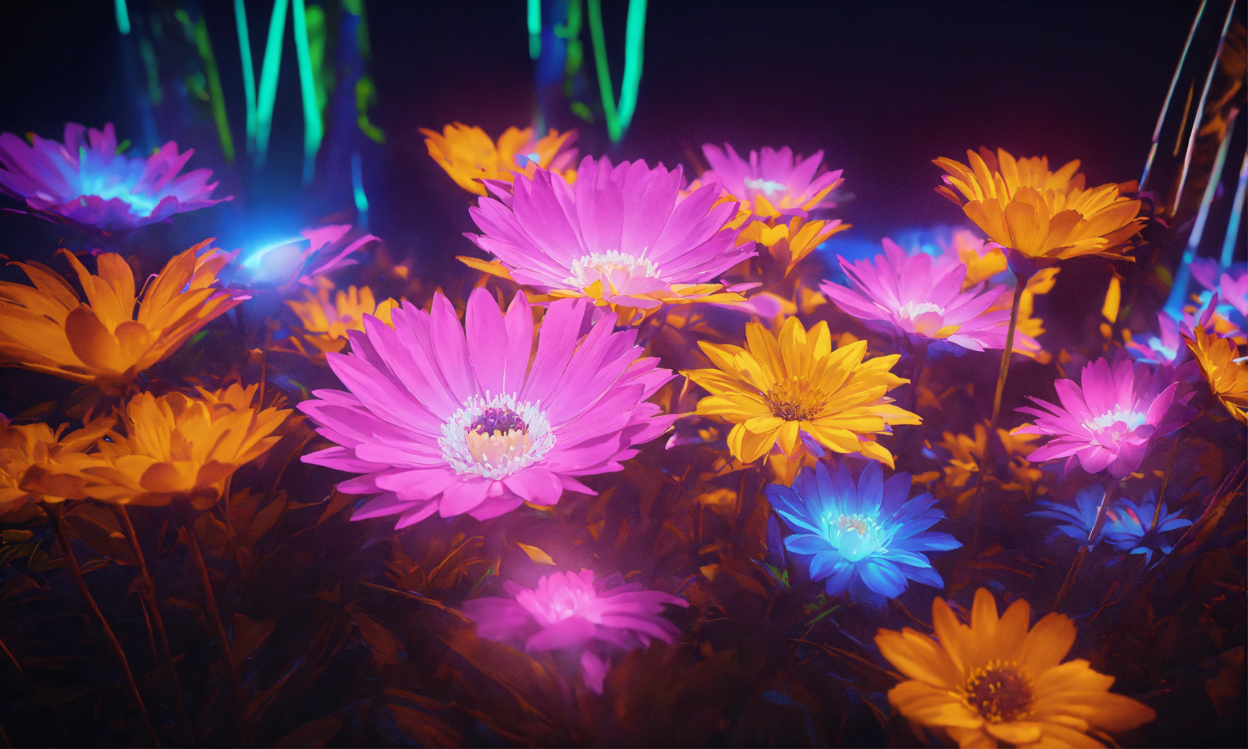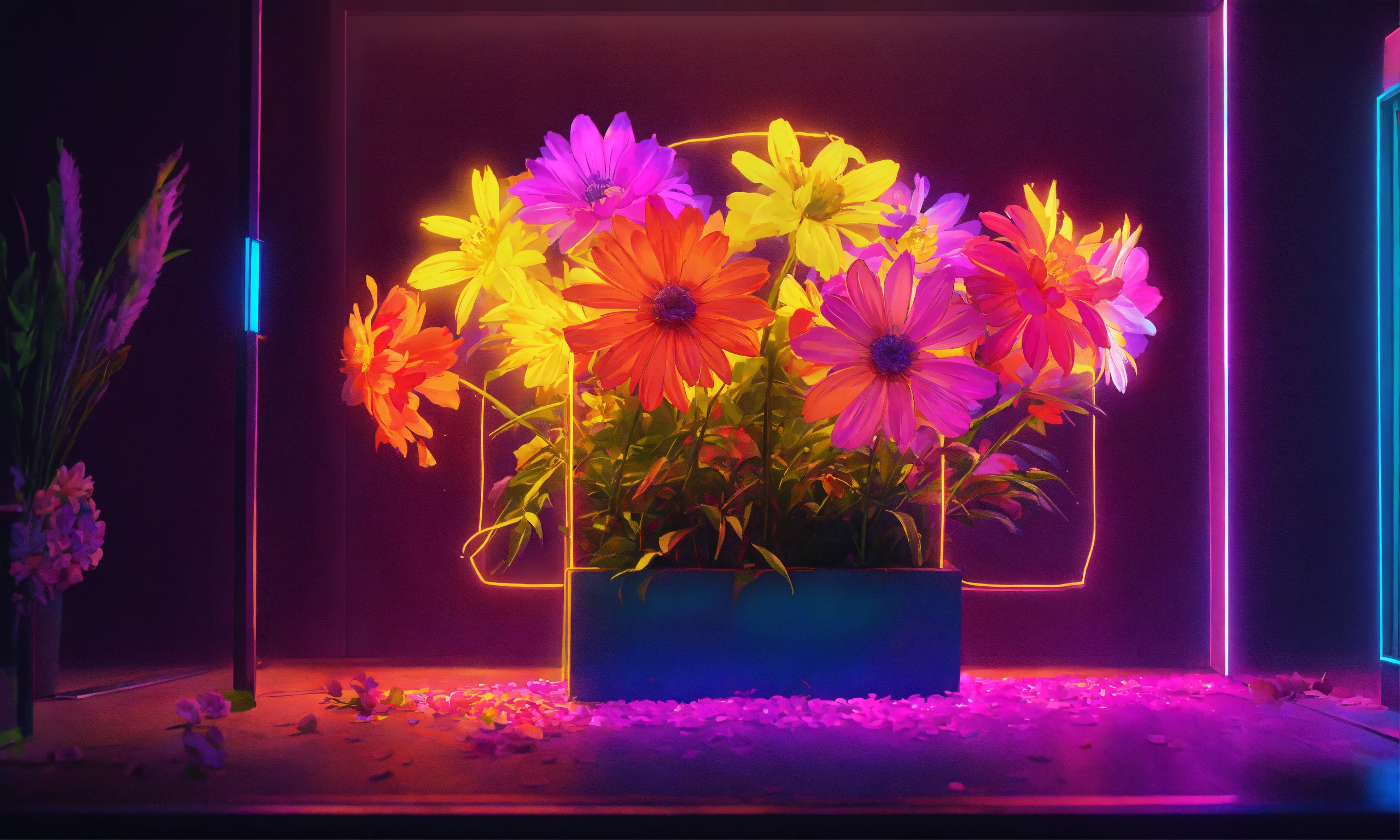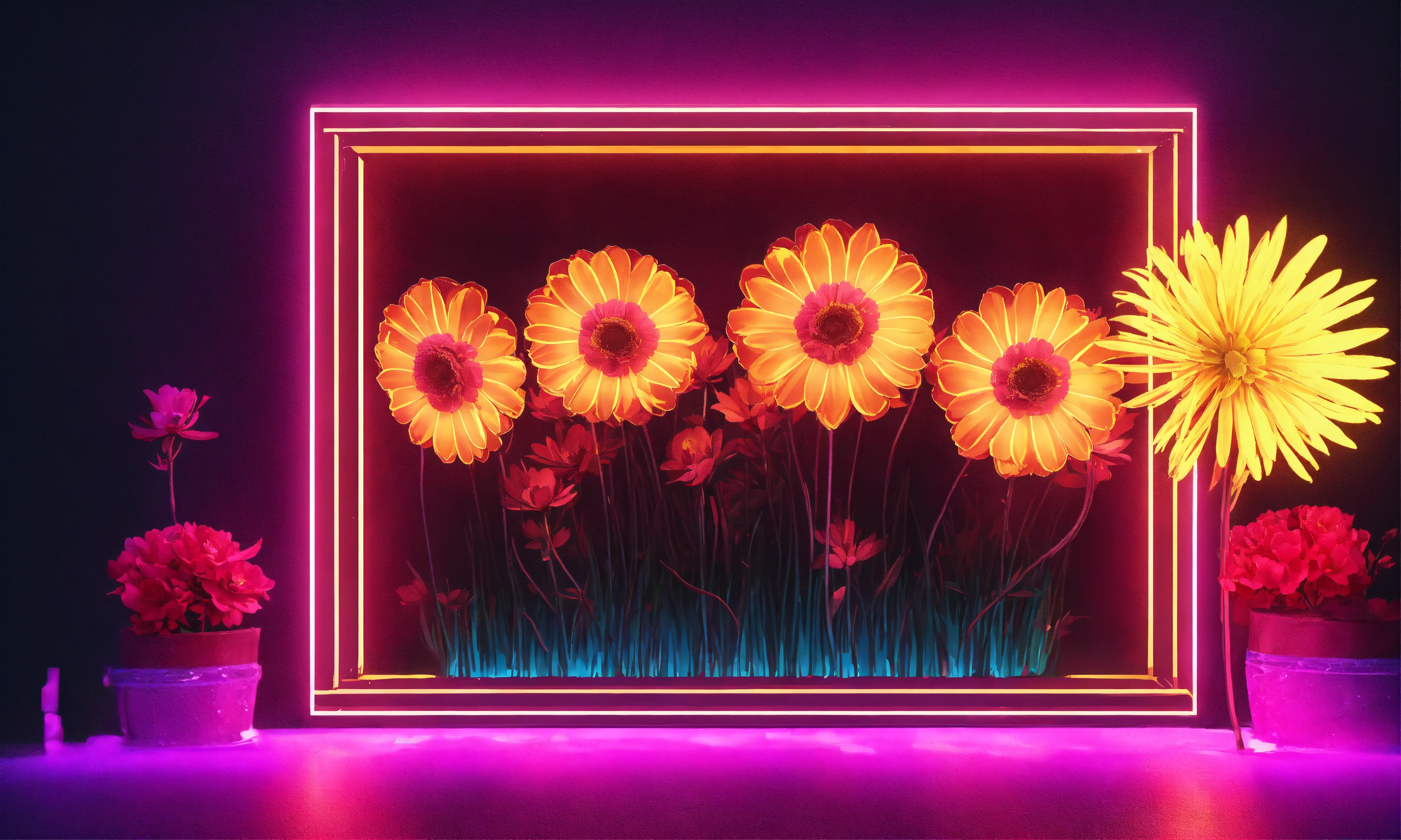Neon flowers in a picture frame illustration cinematic sfx vfx hd