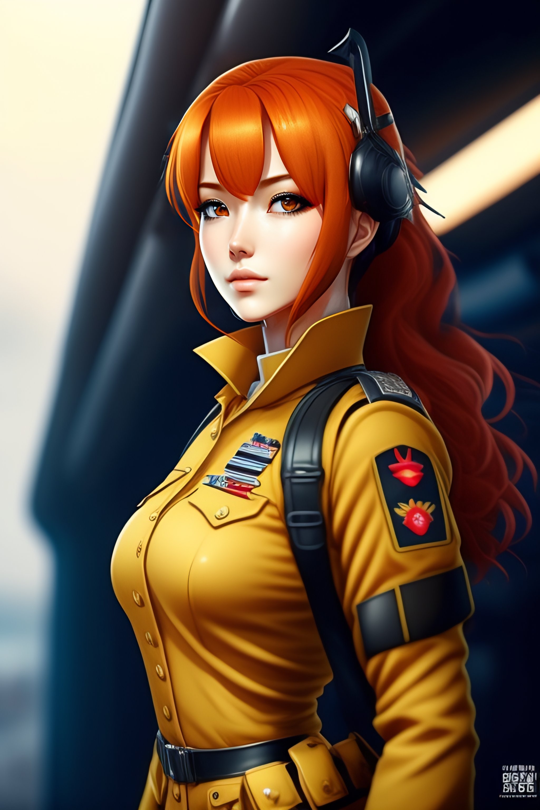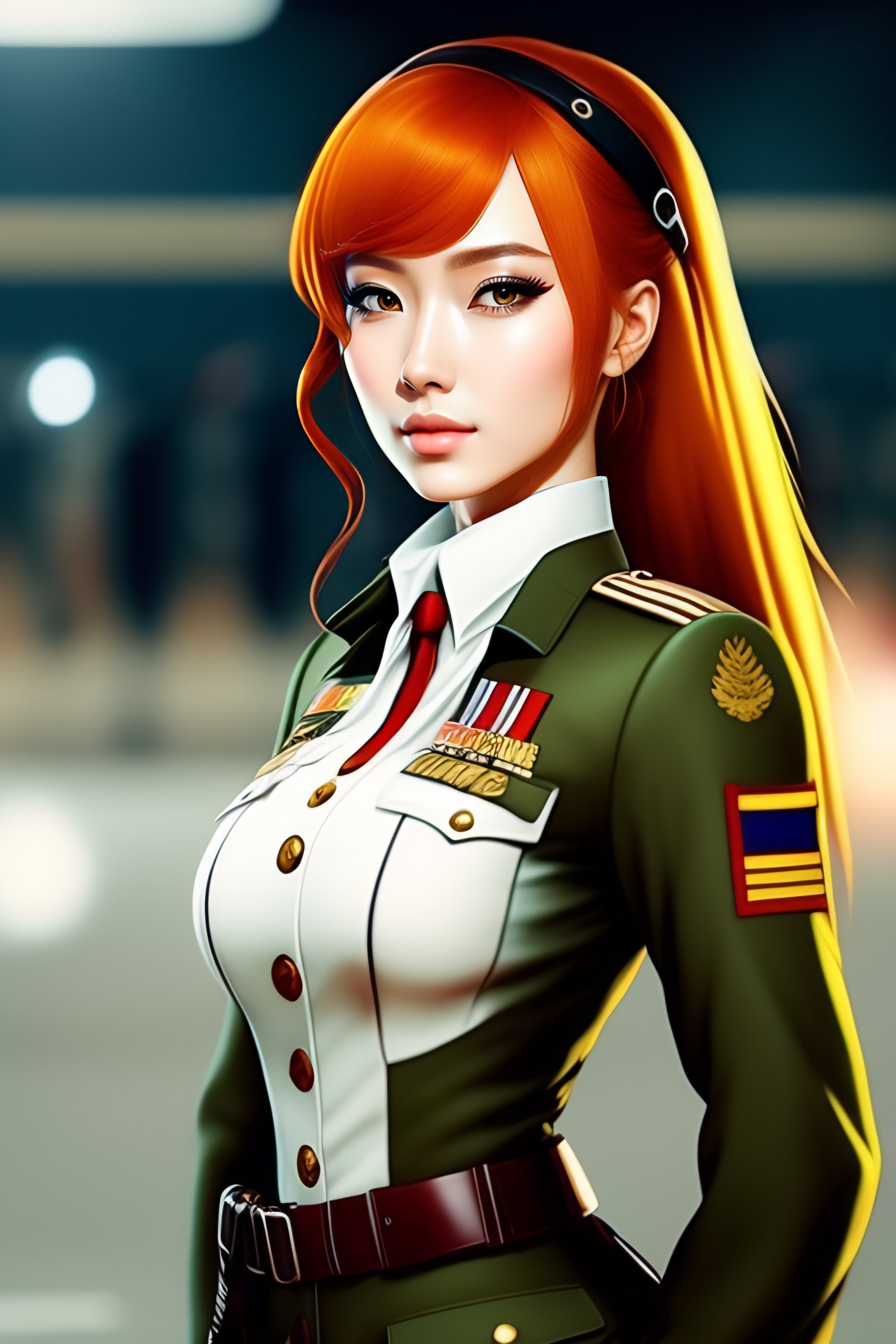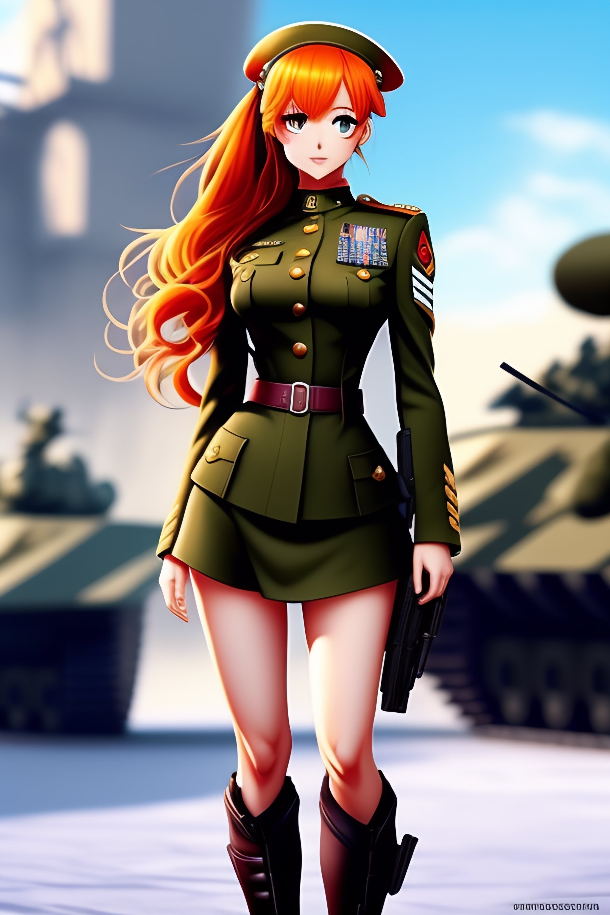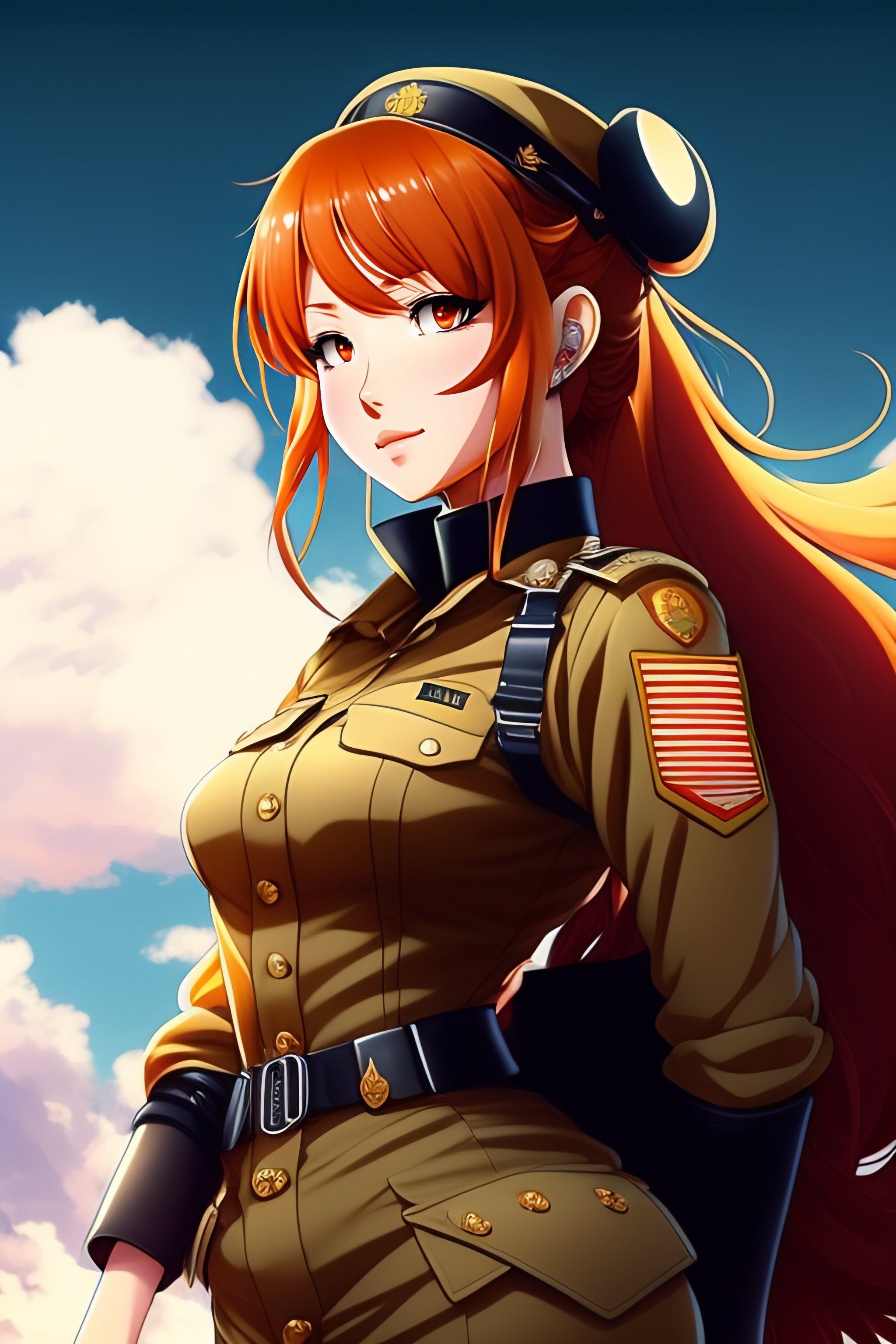Anime girl rousse en uniforme militaire