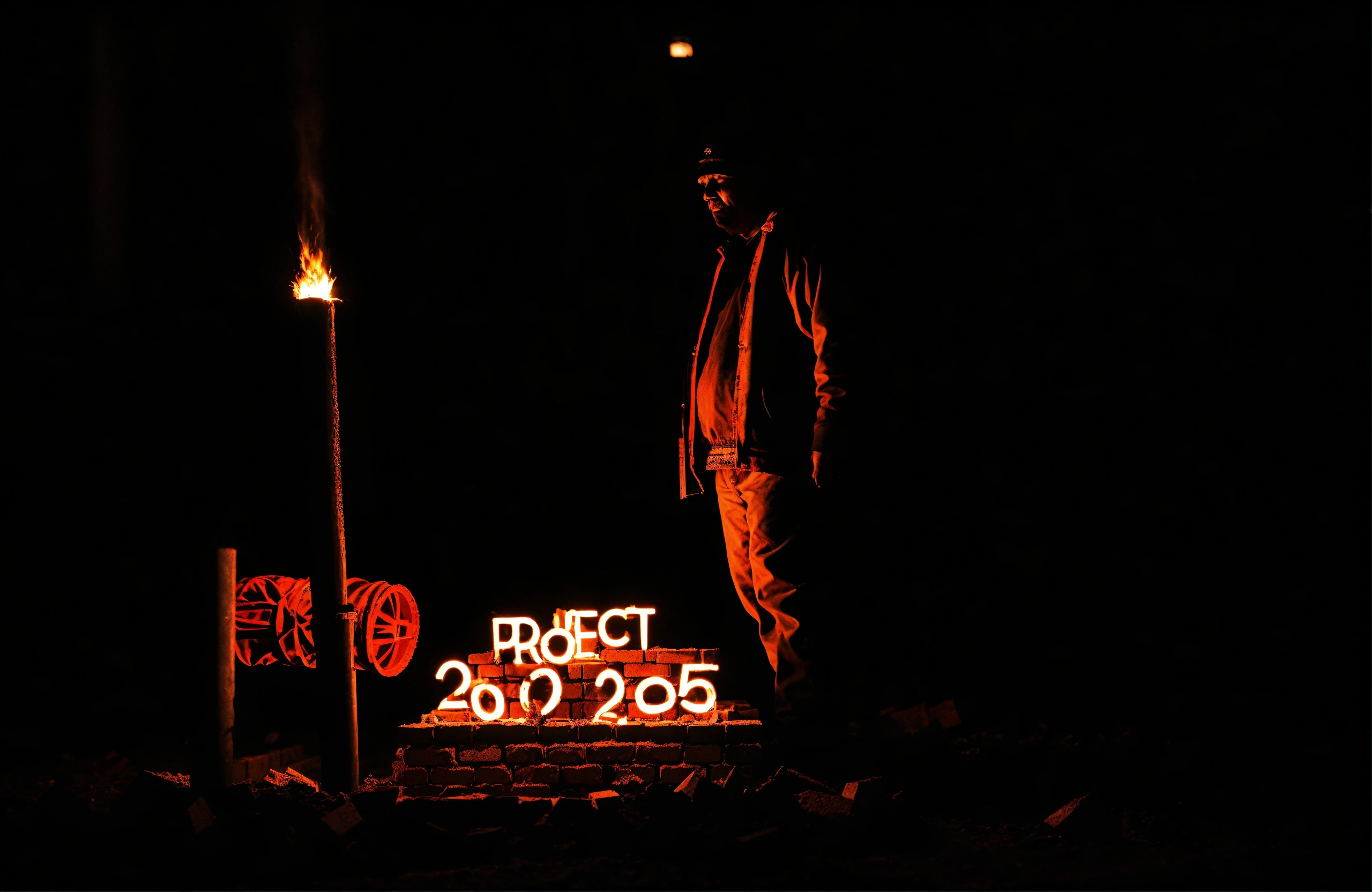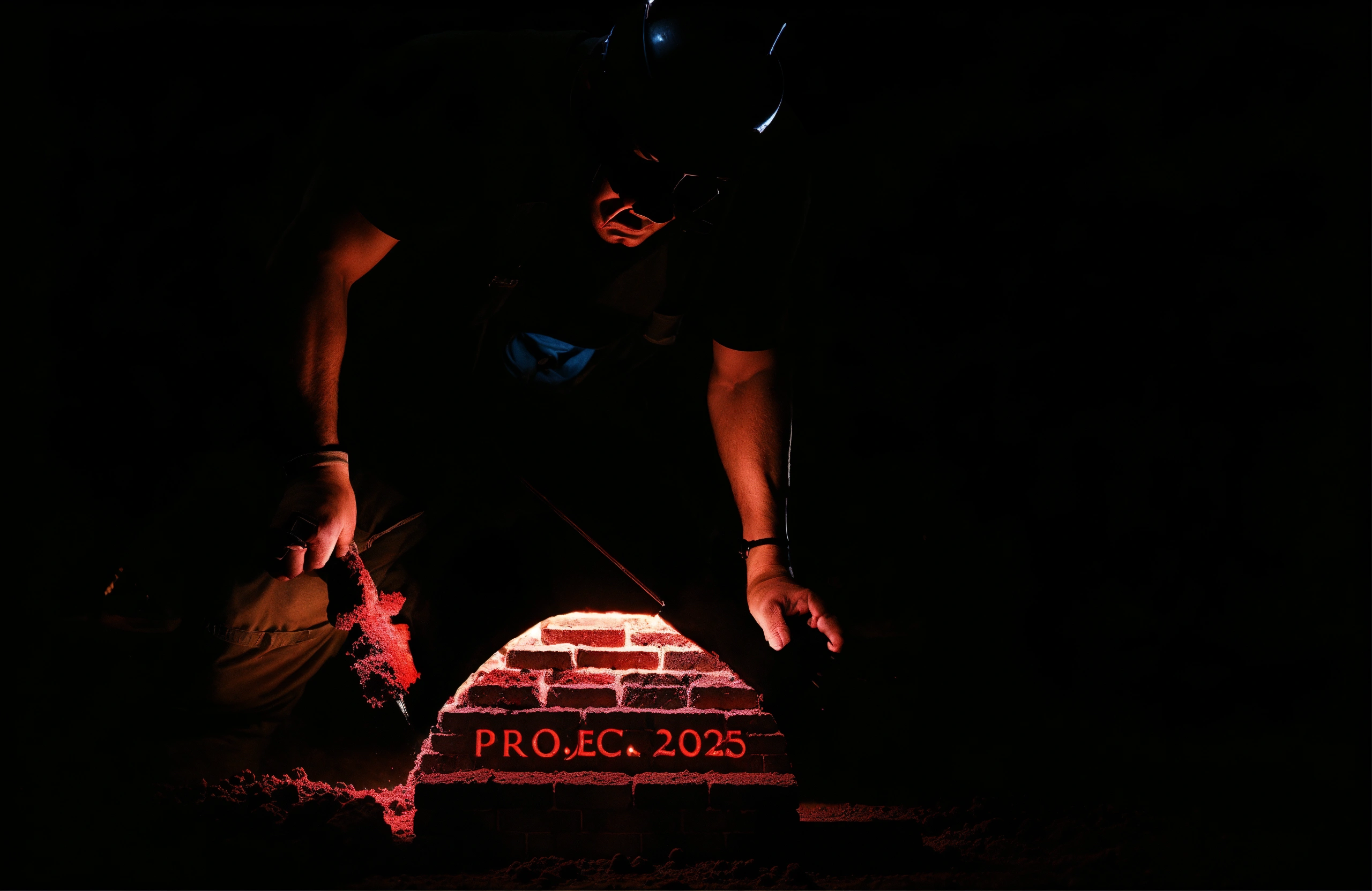 Satan building a brick foundation that spells "project 2025" underneath the white house, realistic photo