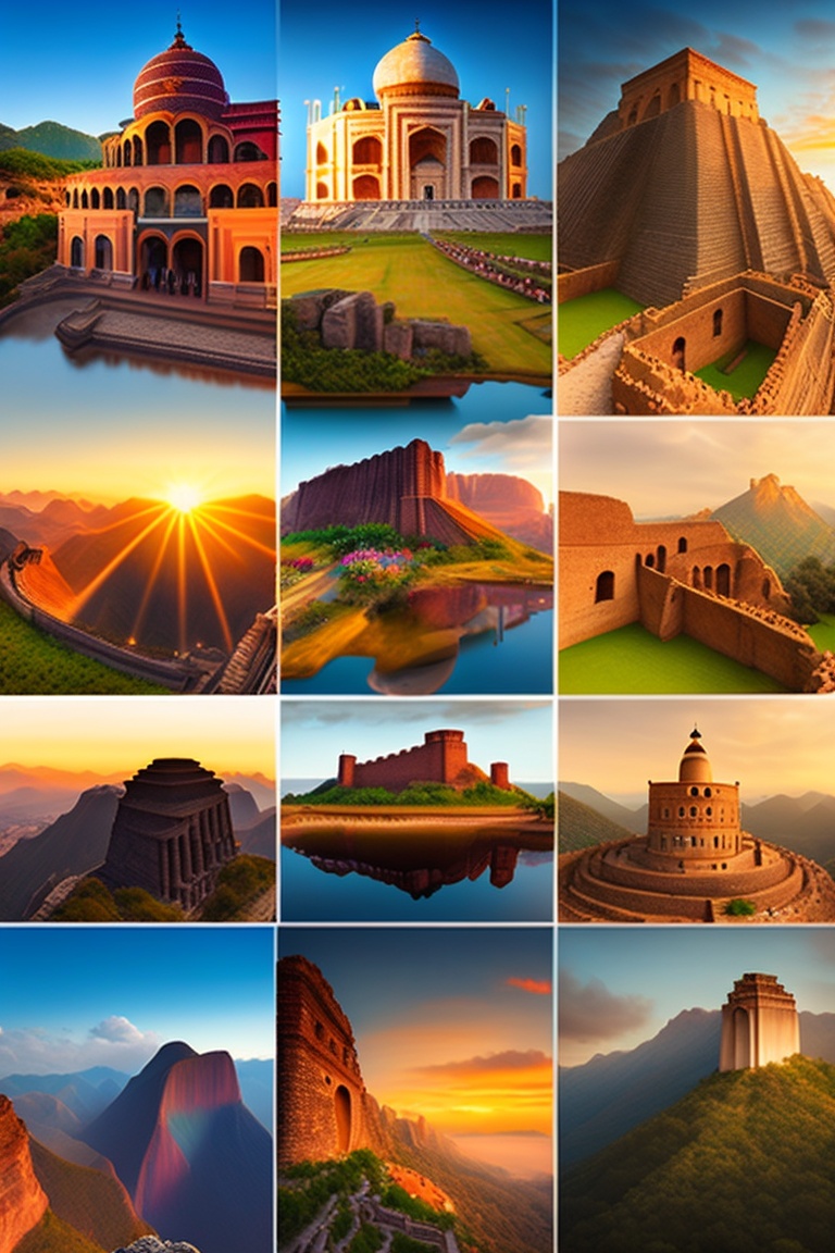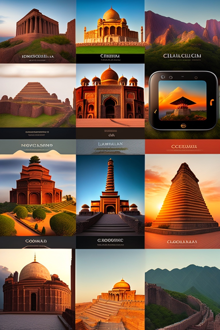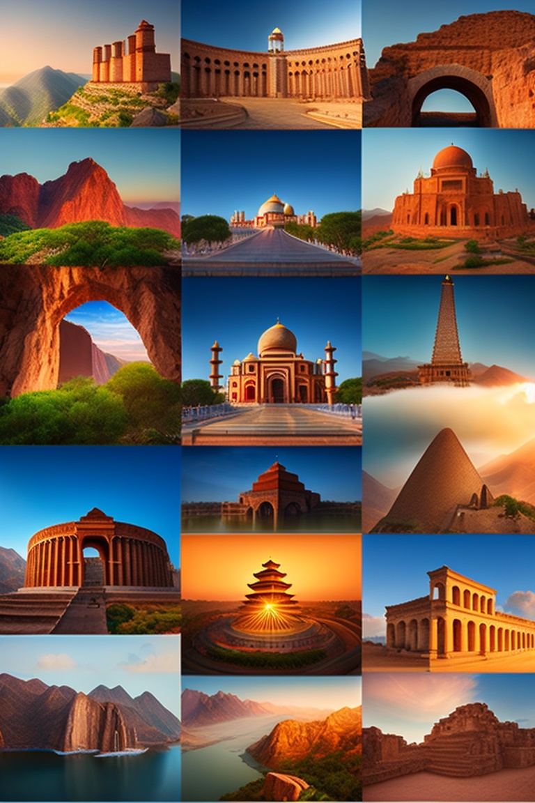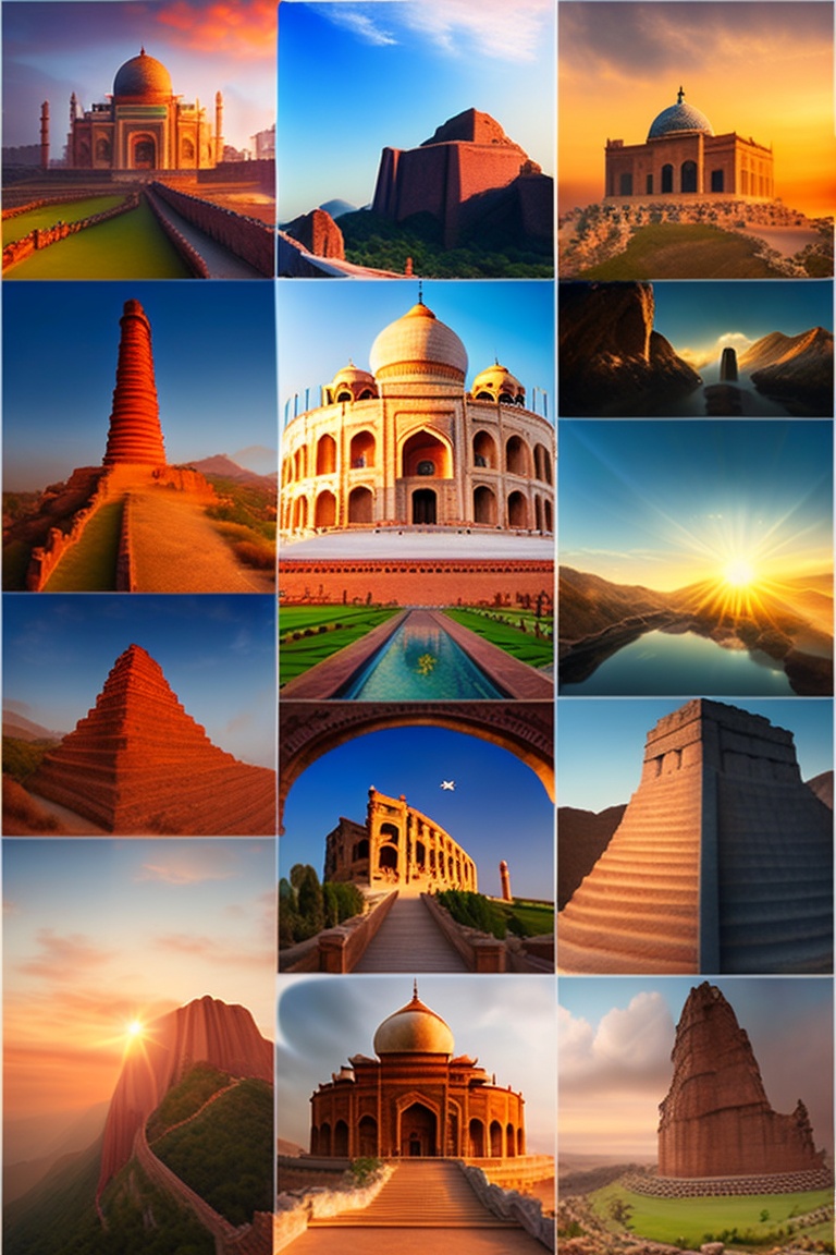 A collage of 8 wonders of the world where the first 7 wonders of the world are great wall of china, the colosseum, rome, the taj mahal, christ the redeemer, machu pichu, chichen itza, petra, and the last wonder is a mobile phone