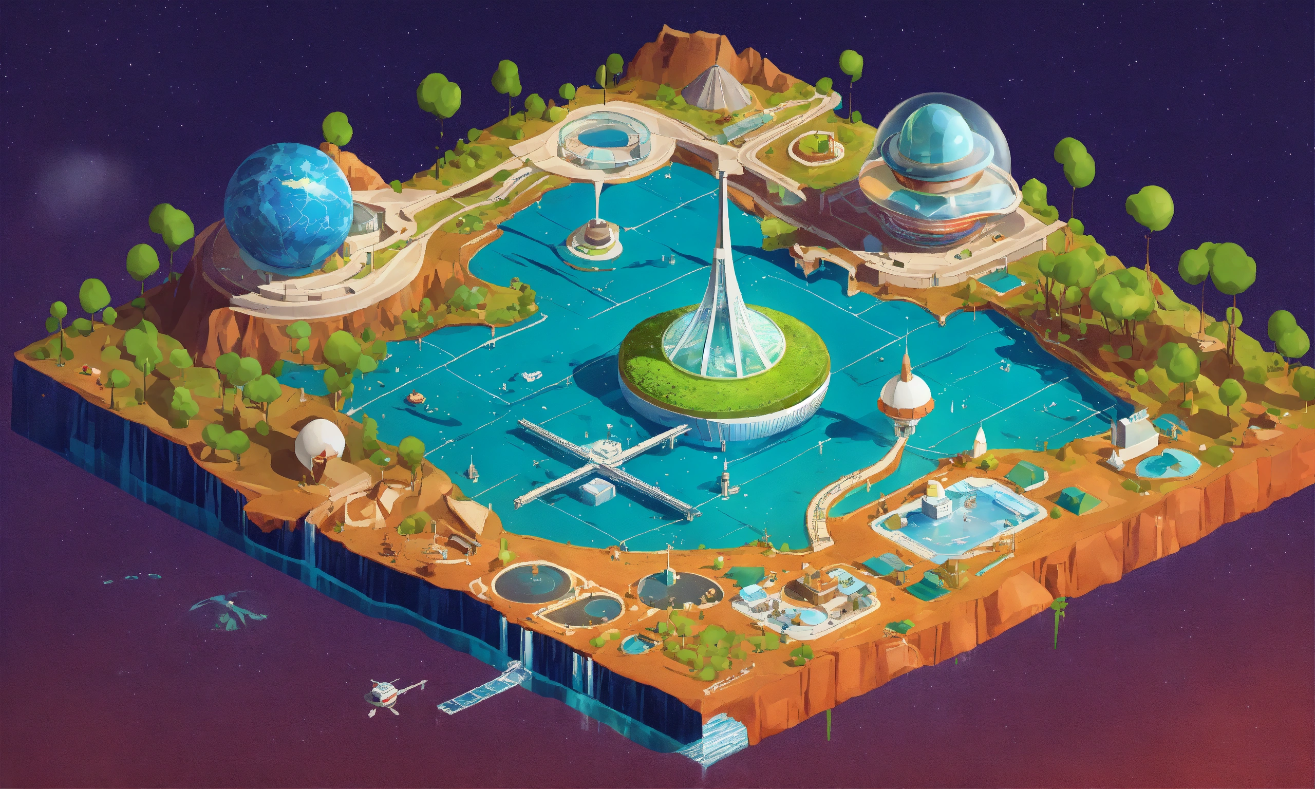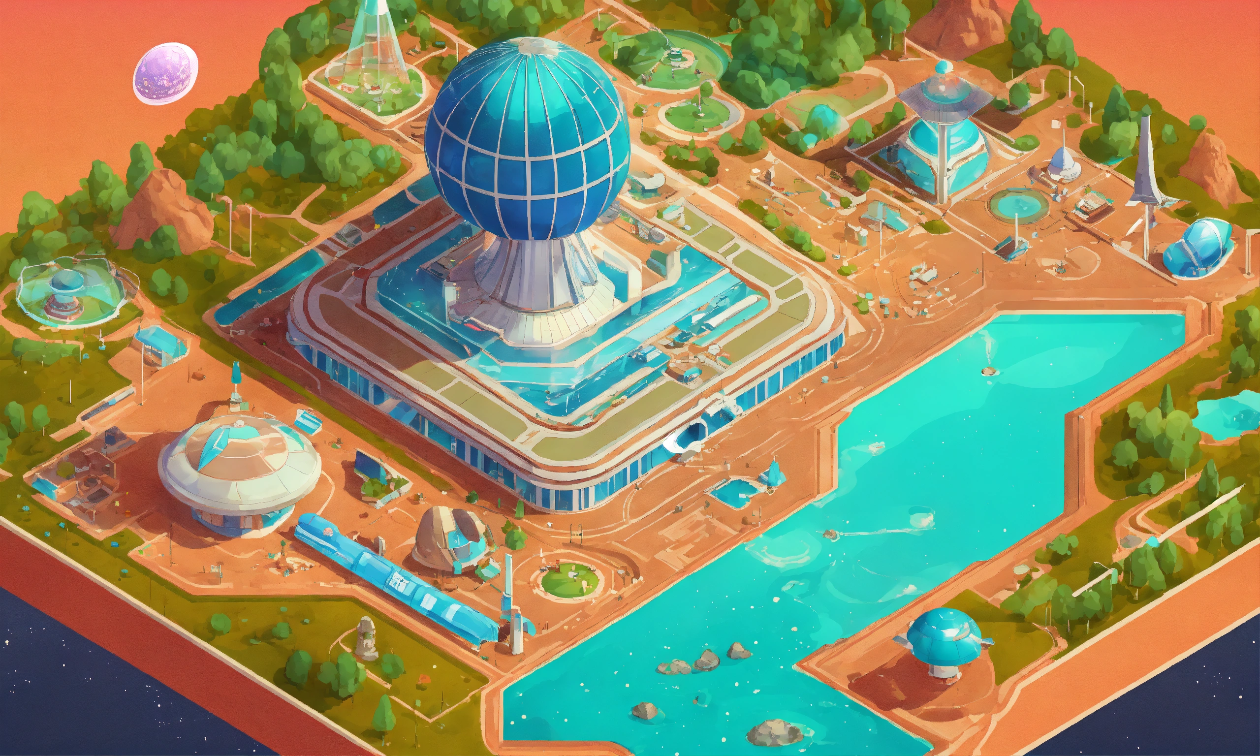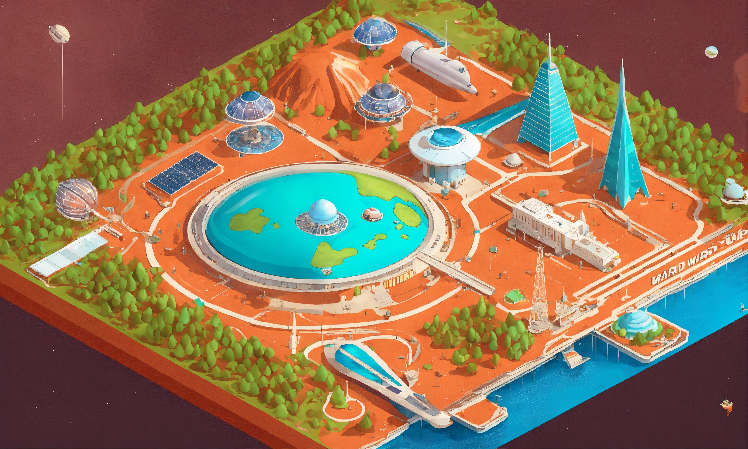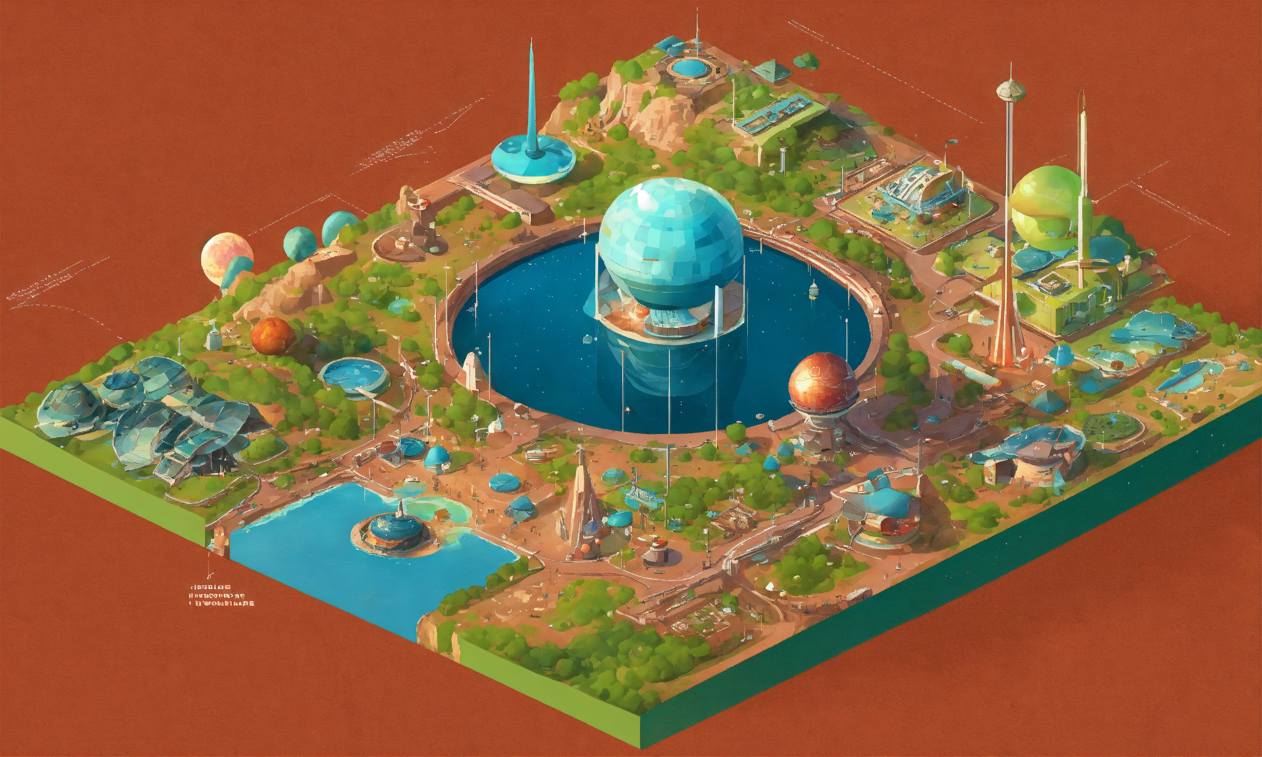 Retrofuturistic world's fair exhibition on mars