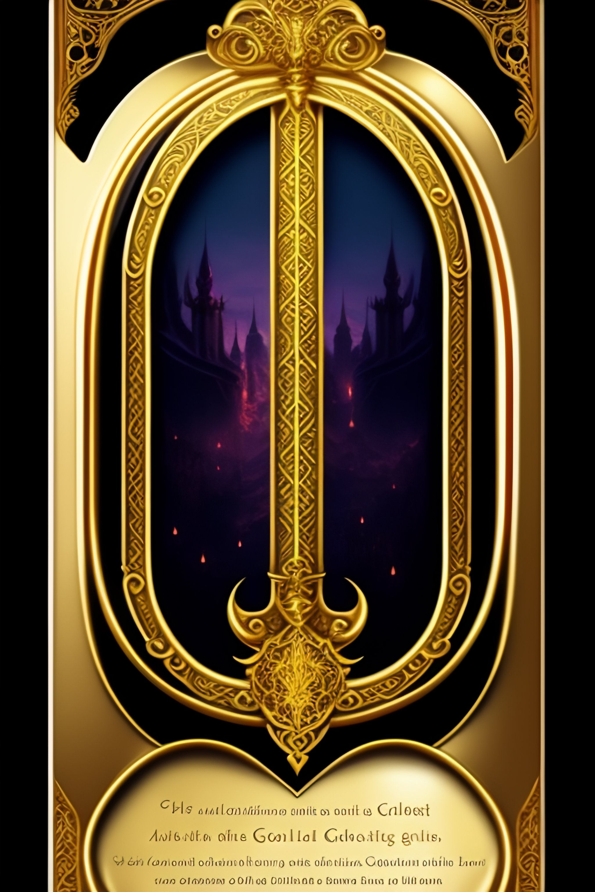 magic sword card covered in the bones dead people who have been embossed in gold