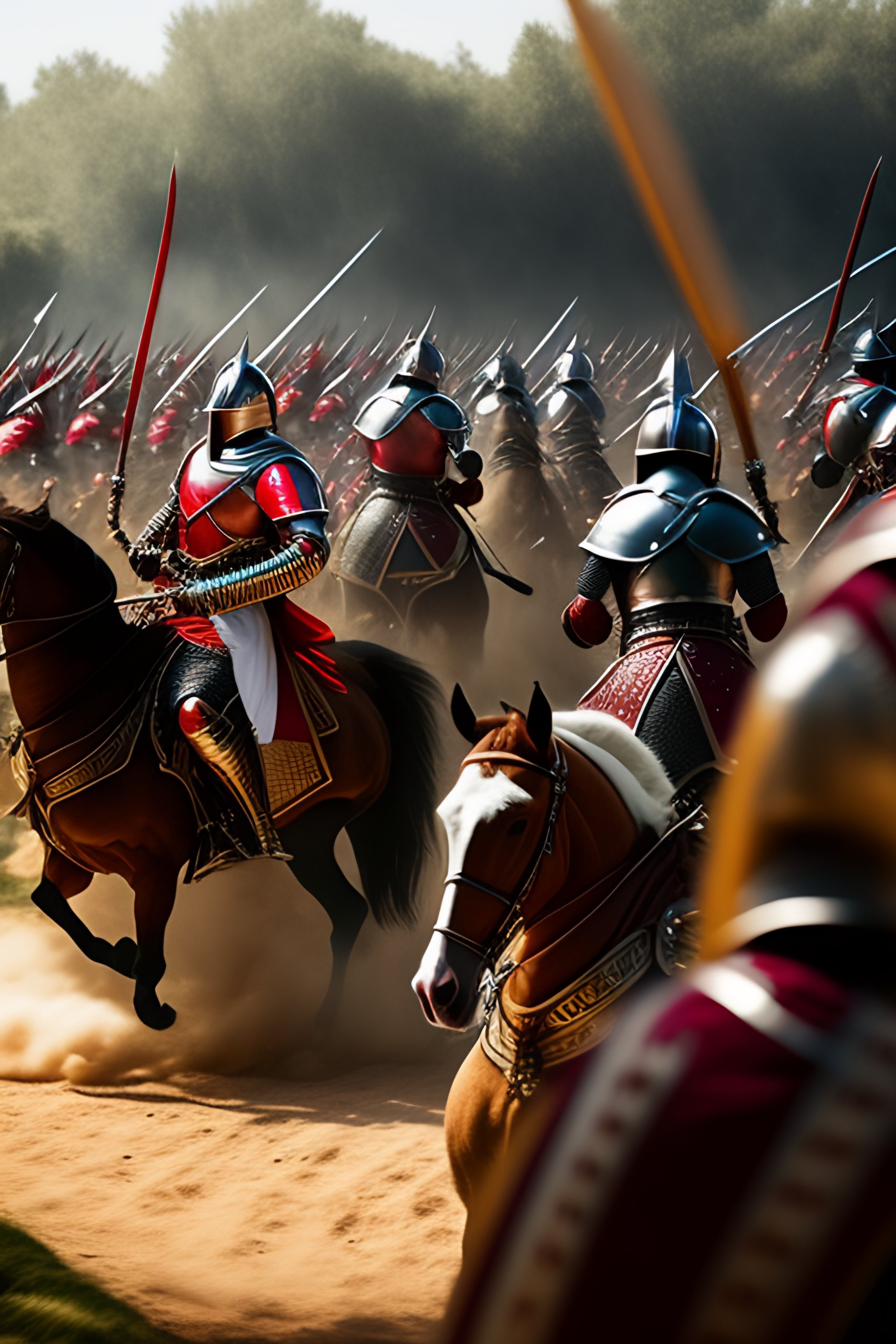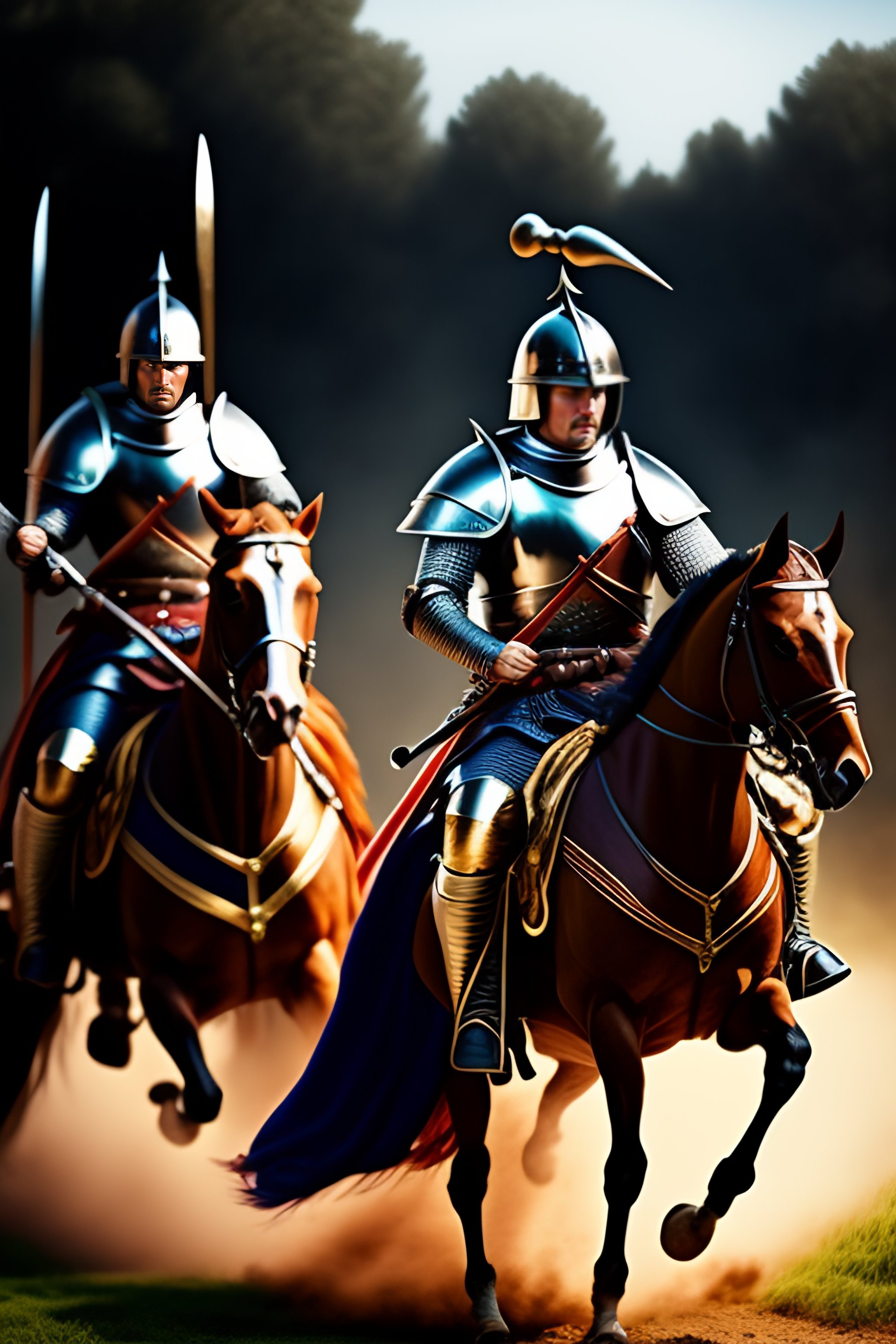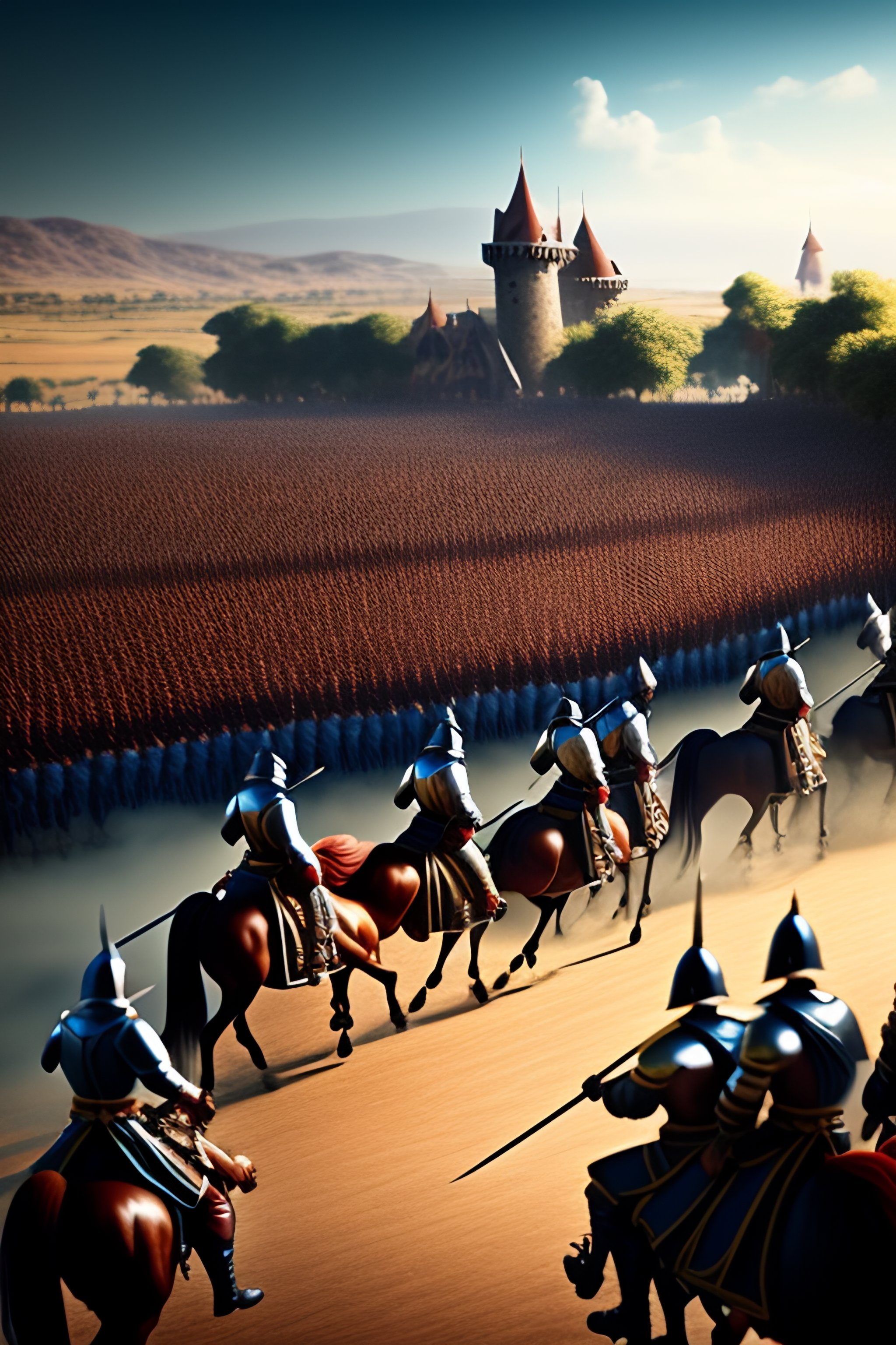 Medieval battle scene focused on mounted knight sword fighting