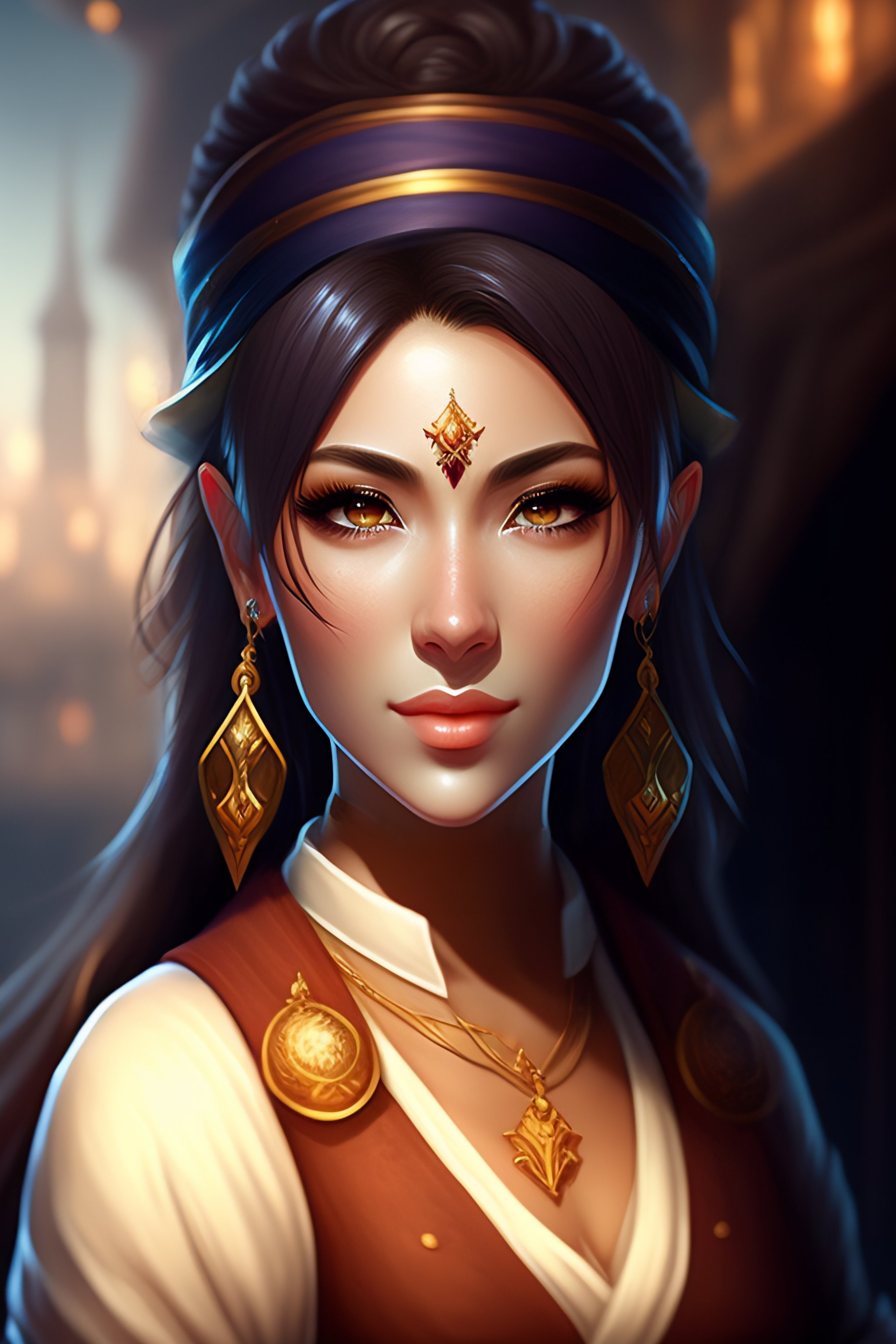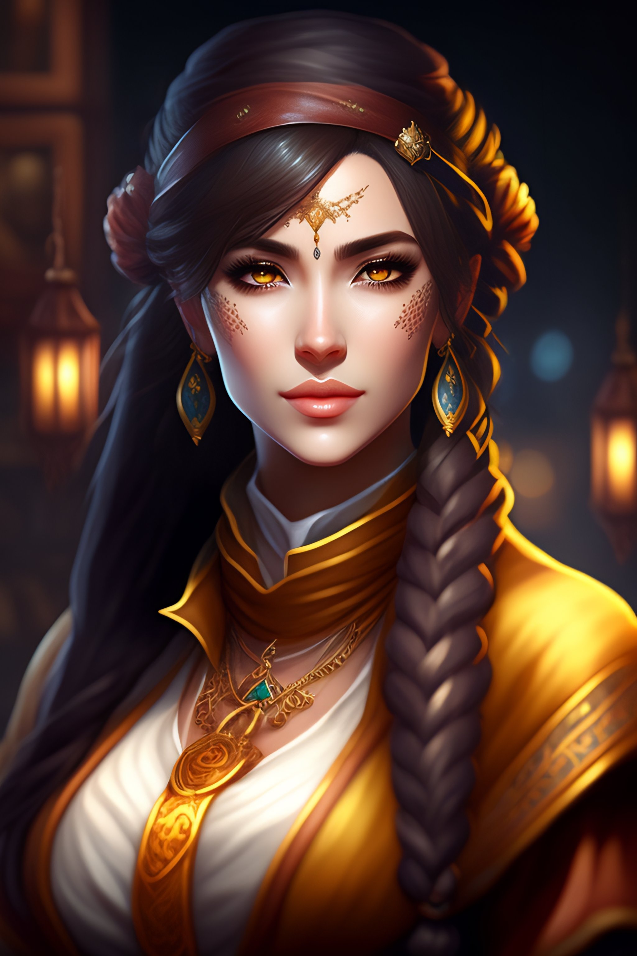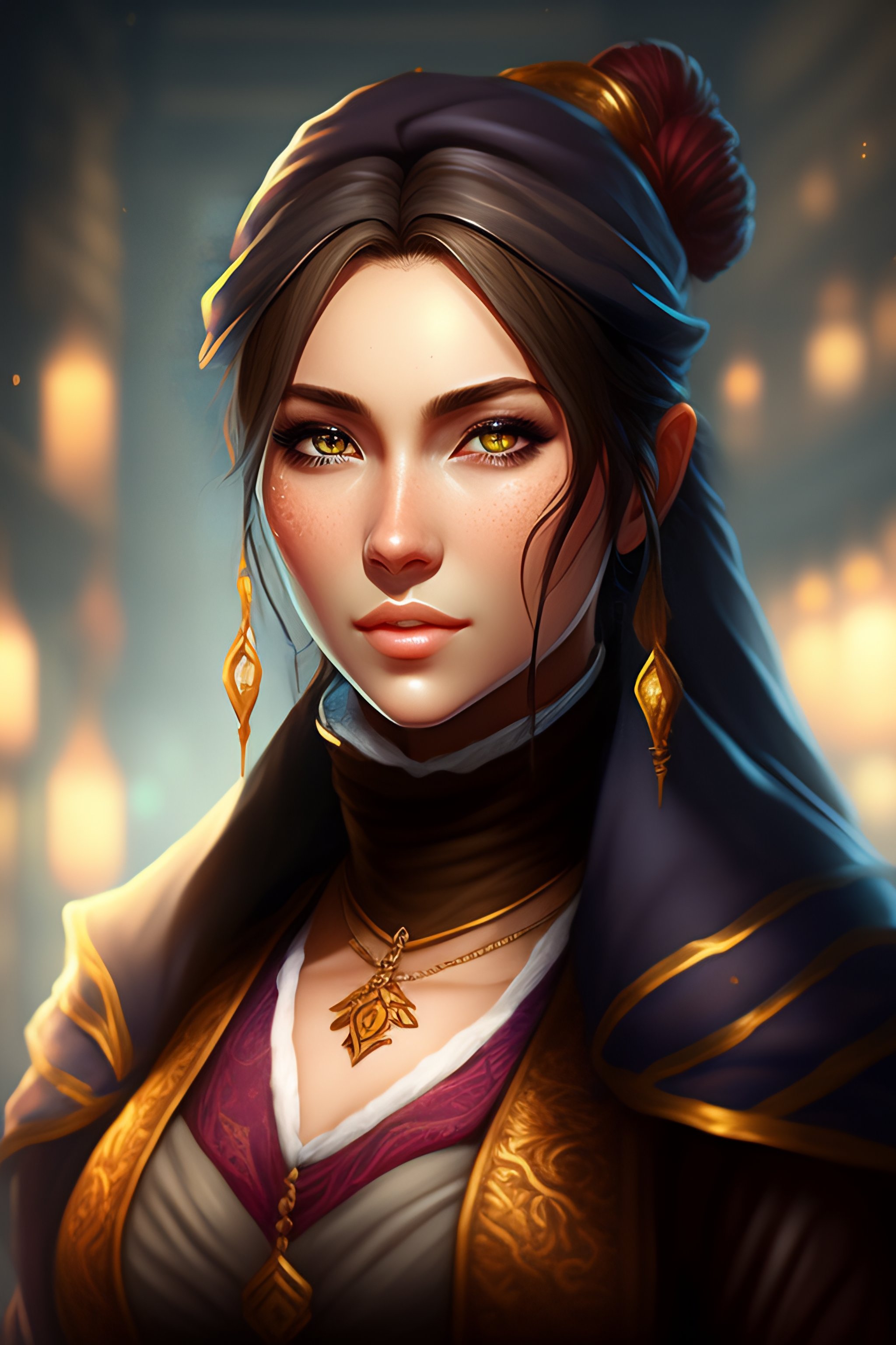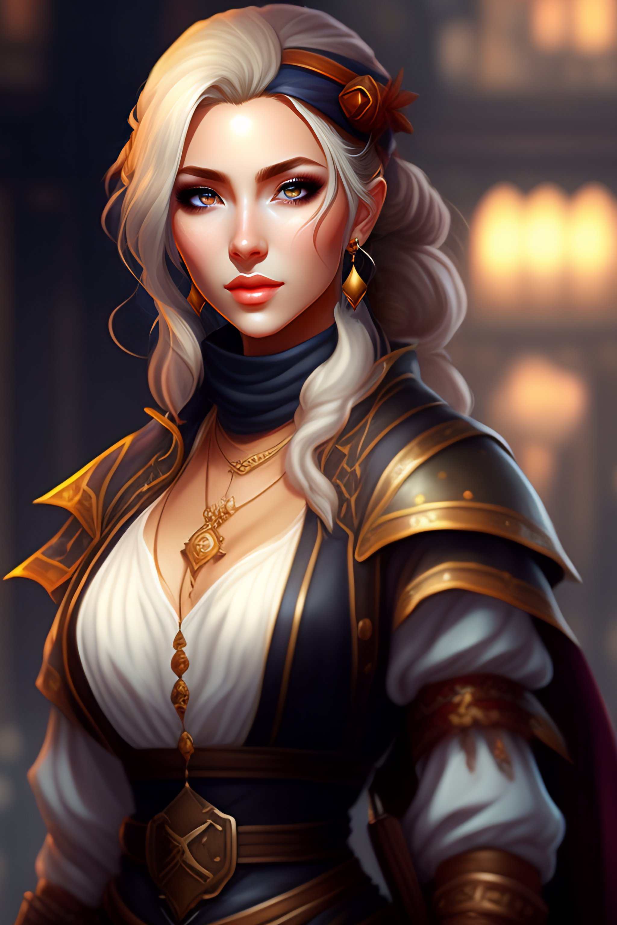 Portrait merchant rpg female character design transparent background facescar gothic anime adventure role-playing game