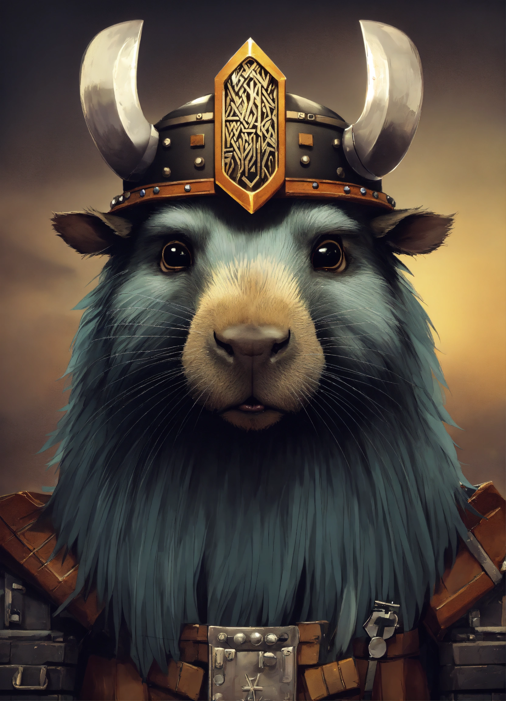 Heavy metal, metal, squarehead, capybara, viking, graphics, funny, 2d, 3d, square, head like square, cartoon, black hair
