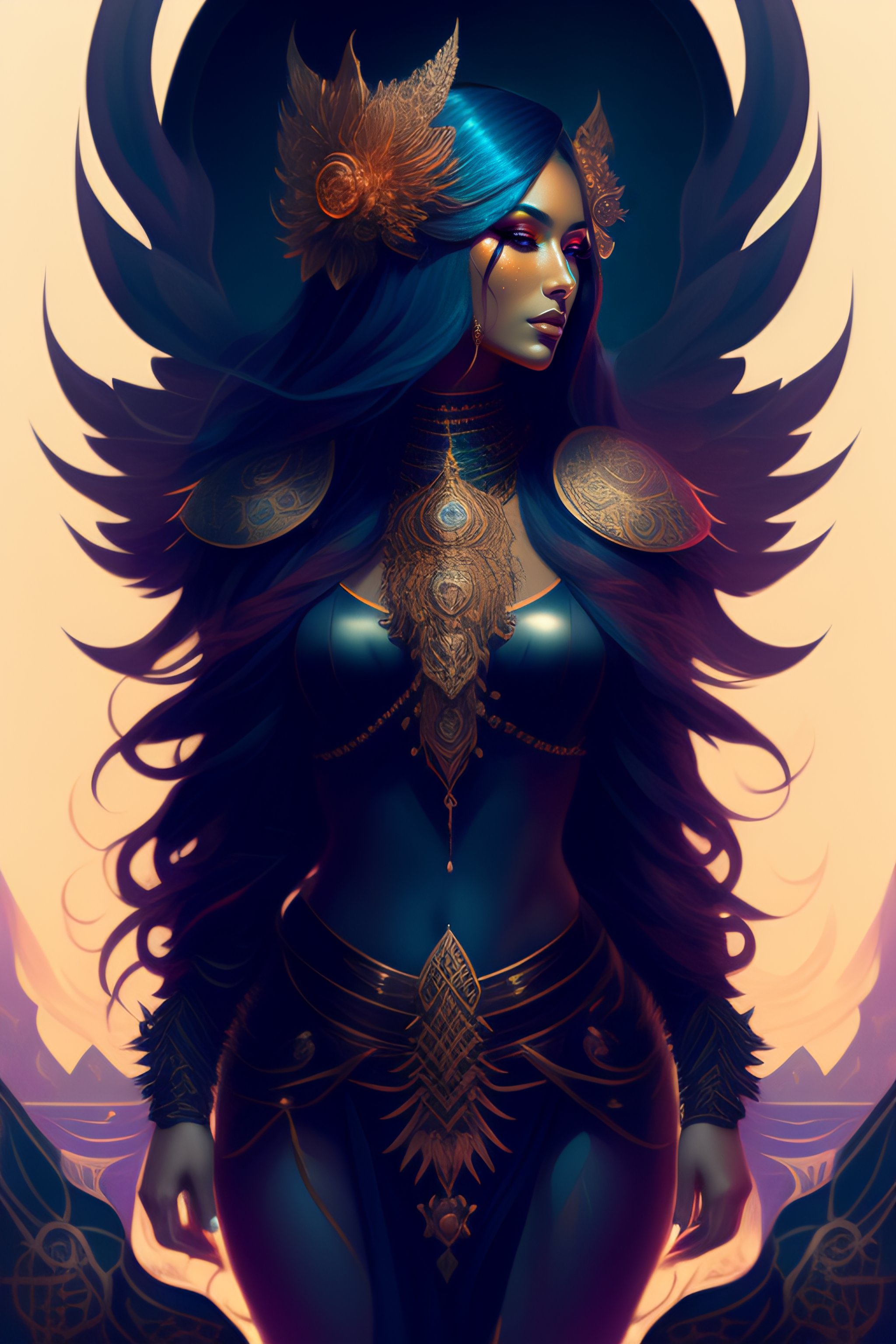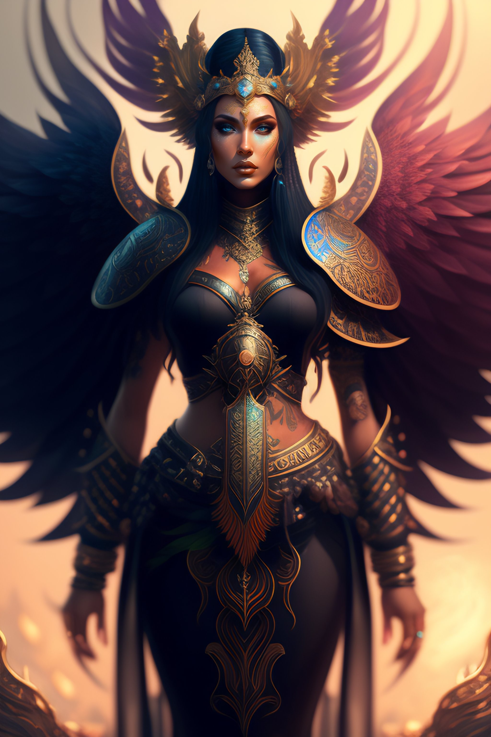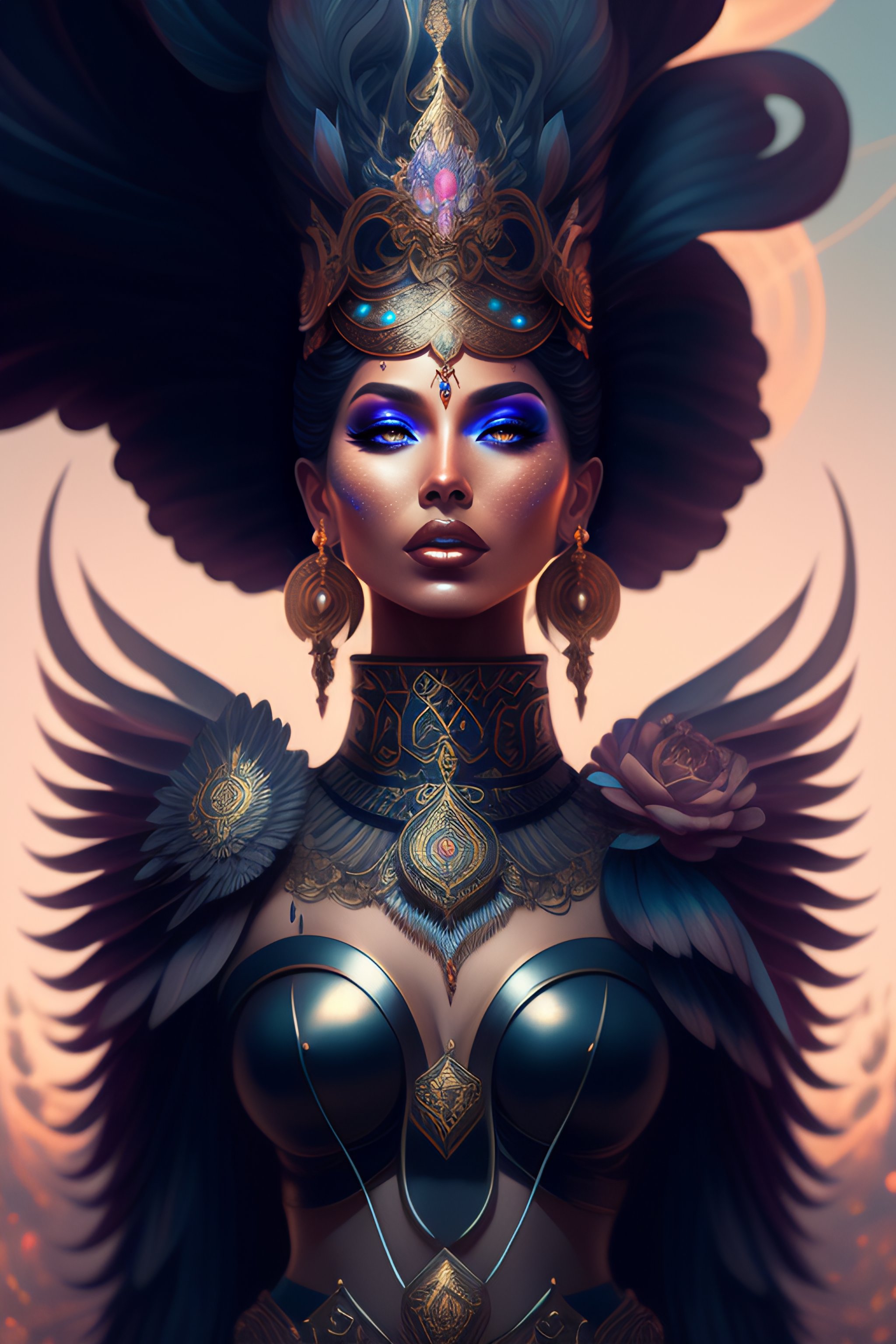 Goddess of death with full body tattoos and black feather armor, by petros afshar, ross tran, peter mohrbacher, tom whalen, underwater psychedelic smoke, highly detailed, intricate, elaborate, illustration, sharp focus, featured on artstation, hyper realistic detailed, 8 k
