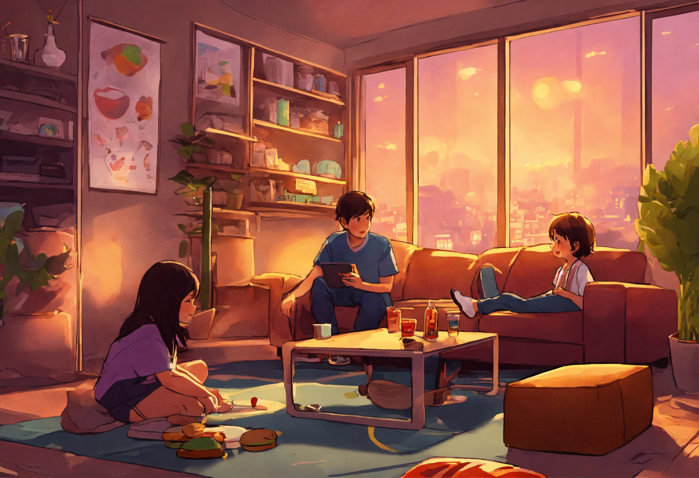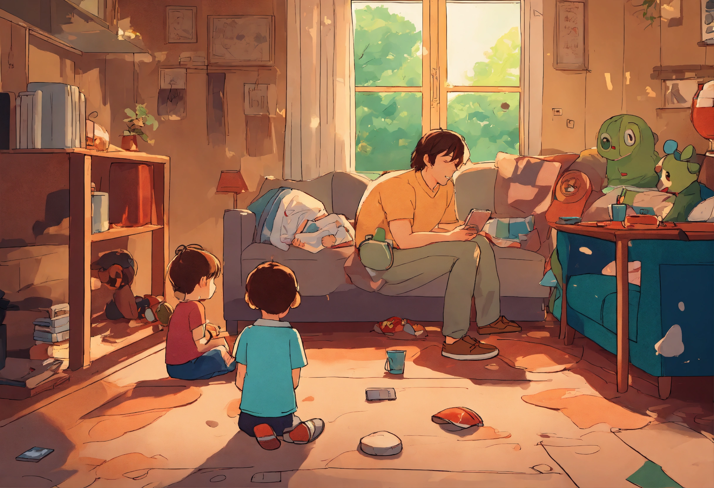"dad! when you two can't party alone at home, how can i play here alone? i also have friends whom i want to meet, play with and talk to." "in ai cartoon image