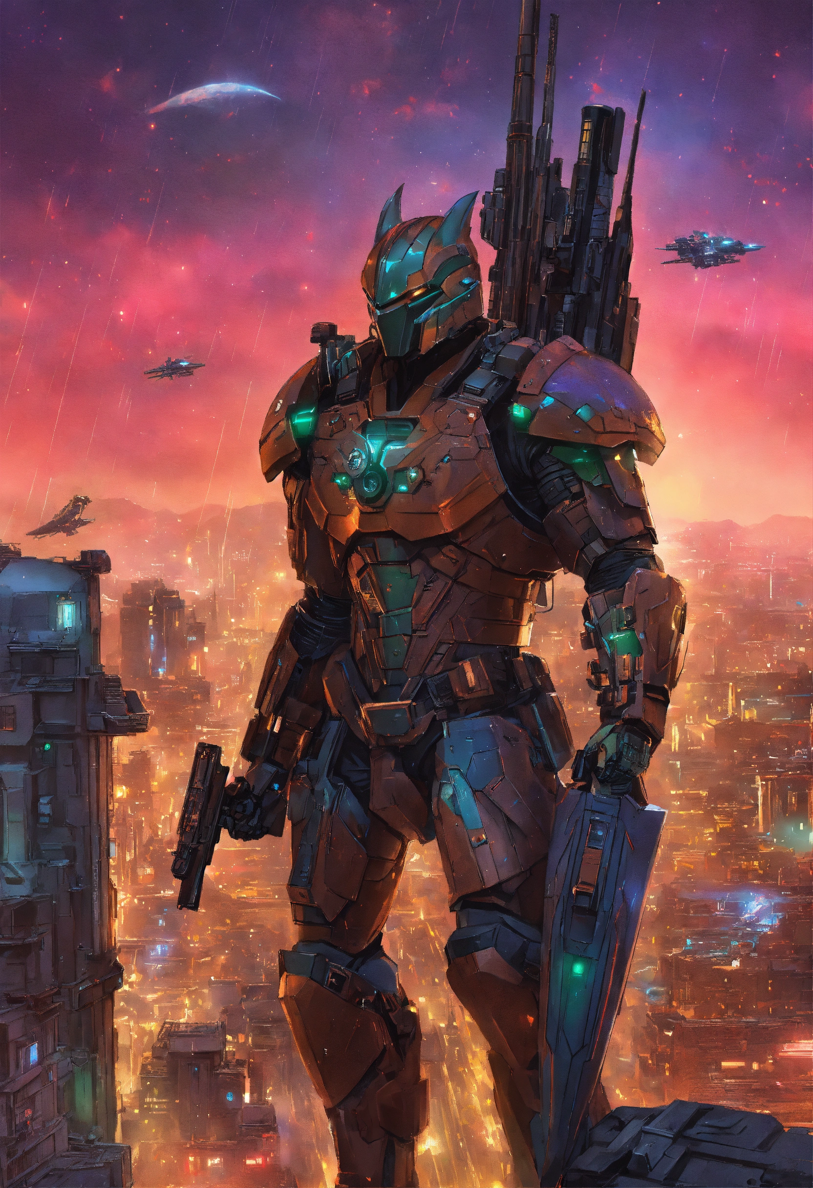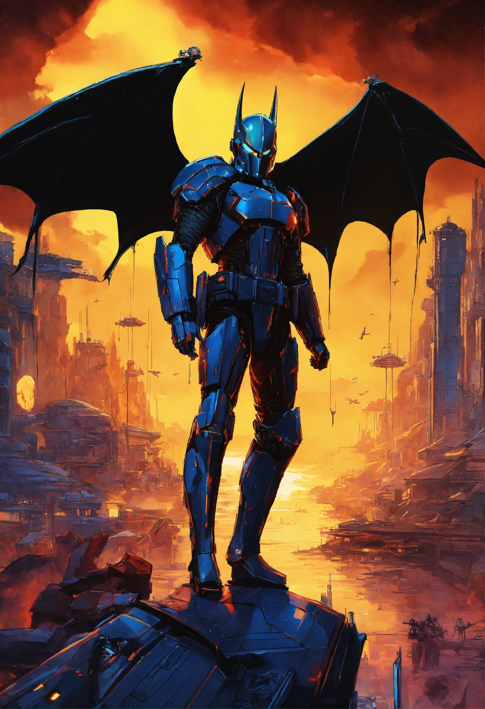 Adamantium, guyverhawk, tron, hybrid vibranium draculian batman armor, robo, casshern, asgardian, thanagarian legions, ninja, nosferatu, athletic cyborgs, amazonian of 90th-c, dracul samurai muscular hulk buster led humanoid, rainy, wet scene, batwing, galaxy bi-wing star cruiser, blade runner mega cityscape holding 9965 a.d. advanced star wars blasters, kyber railguns & ancient h. r. giger, gears of war mega guns, dune, things to come, quetzal armored streamline form, advanced futuristic civilized backdrop densely populated world of metallic chrome, wolf & vampires, titanic star bat-zeppelin, rom the space knight, galactica meta-bat cylon, spine cape, alien cyborg, flying batmobile, style of davinci, neil gaiman, picasso, laurie greasley, ghibli, akira, akkadian, atlantis, kryptonian, megatron live, tomiyama, gene roddenberry, mitsuteru yokoyama, genshin impact, nuke vfx, surreal acrylic, kyber katana & wakizashi, 8k, vibrant dark color, deviantart, high detail, cinematic quality gci