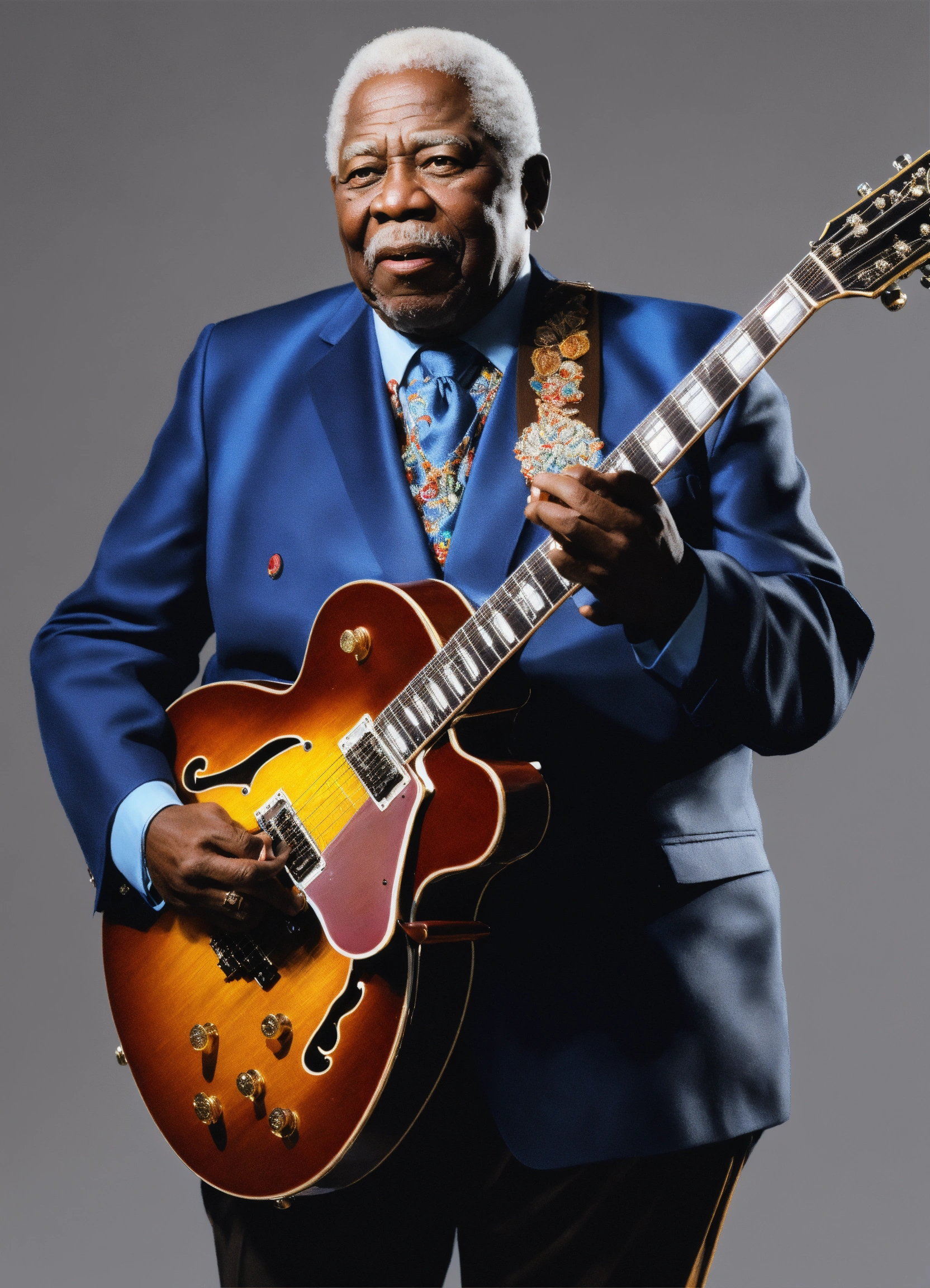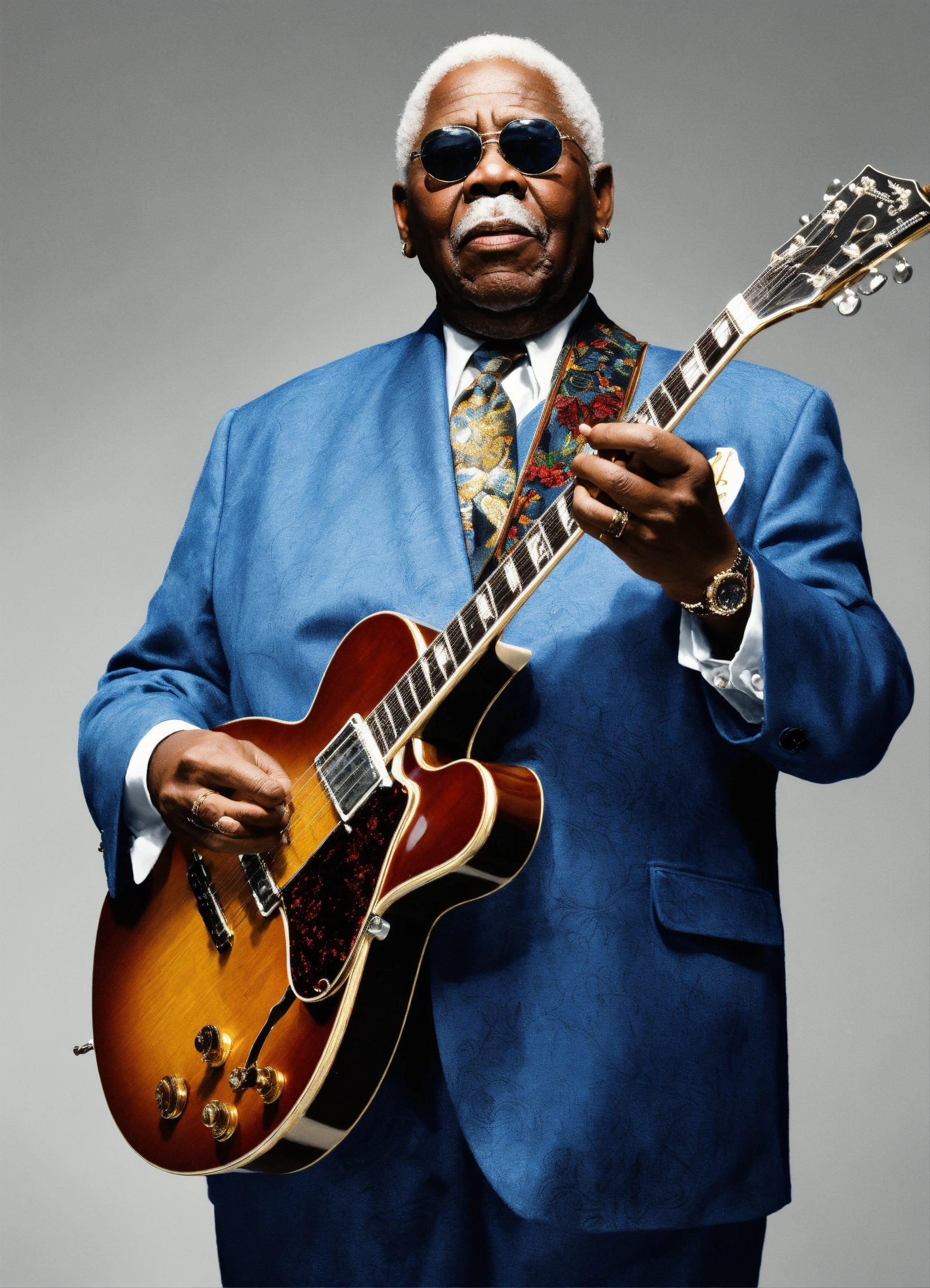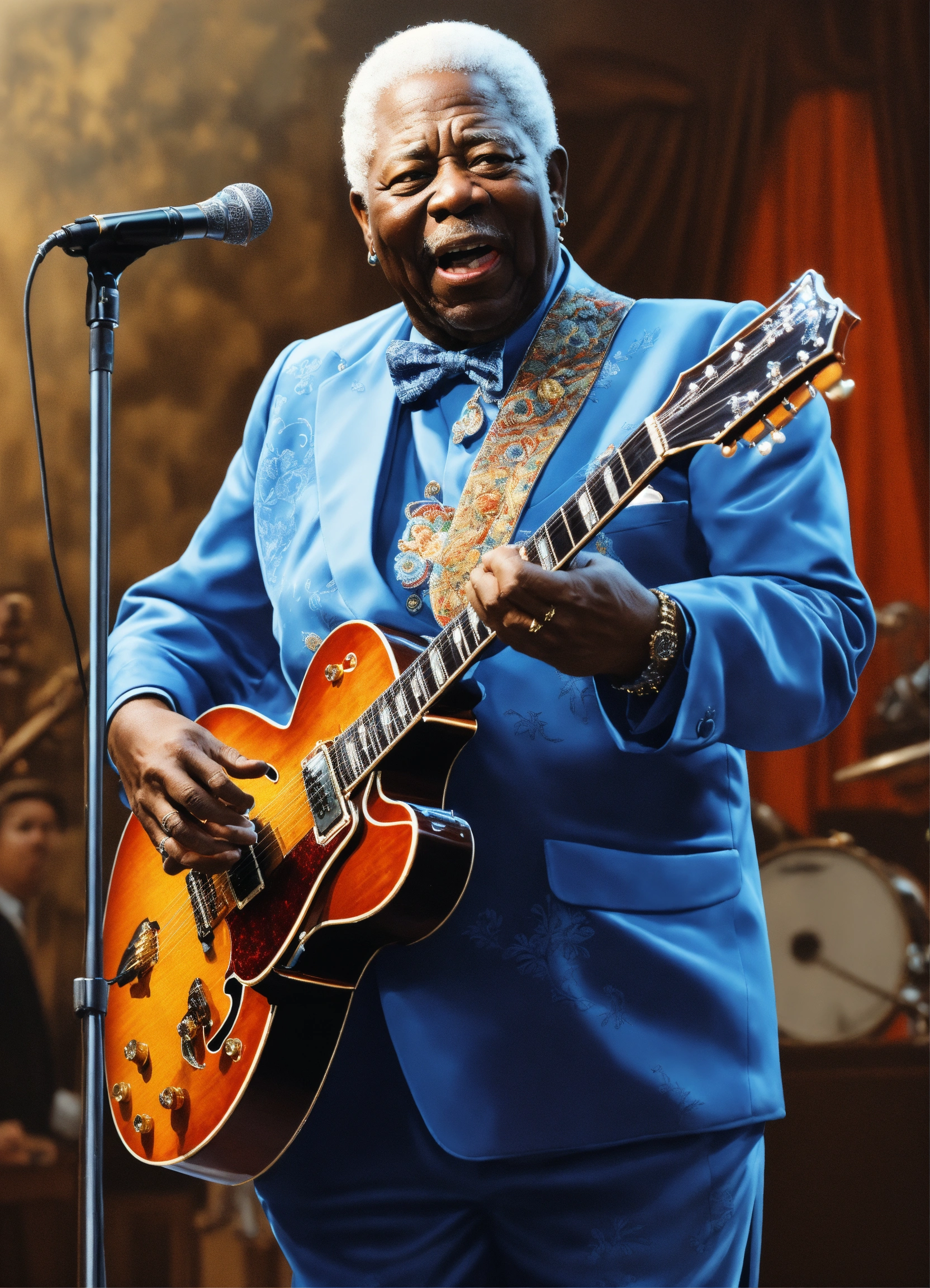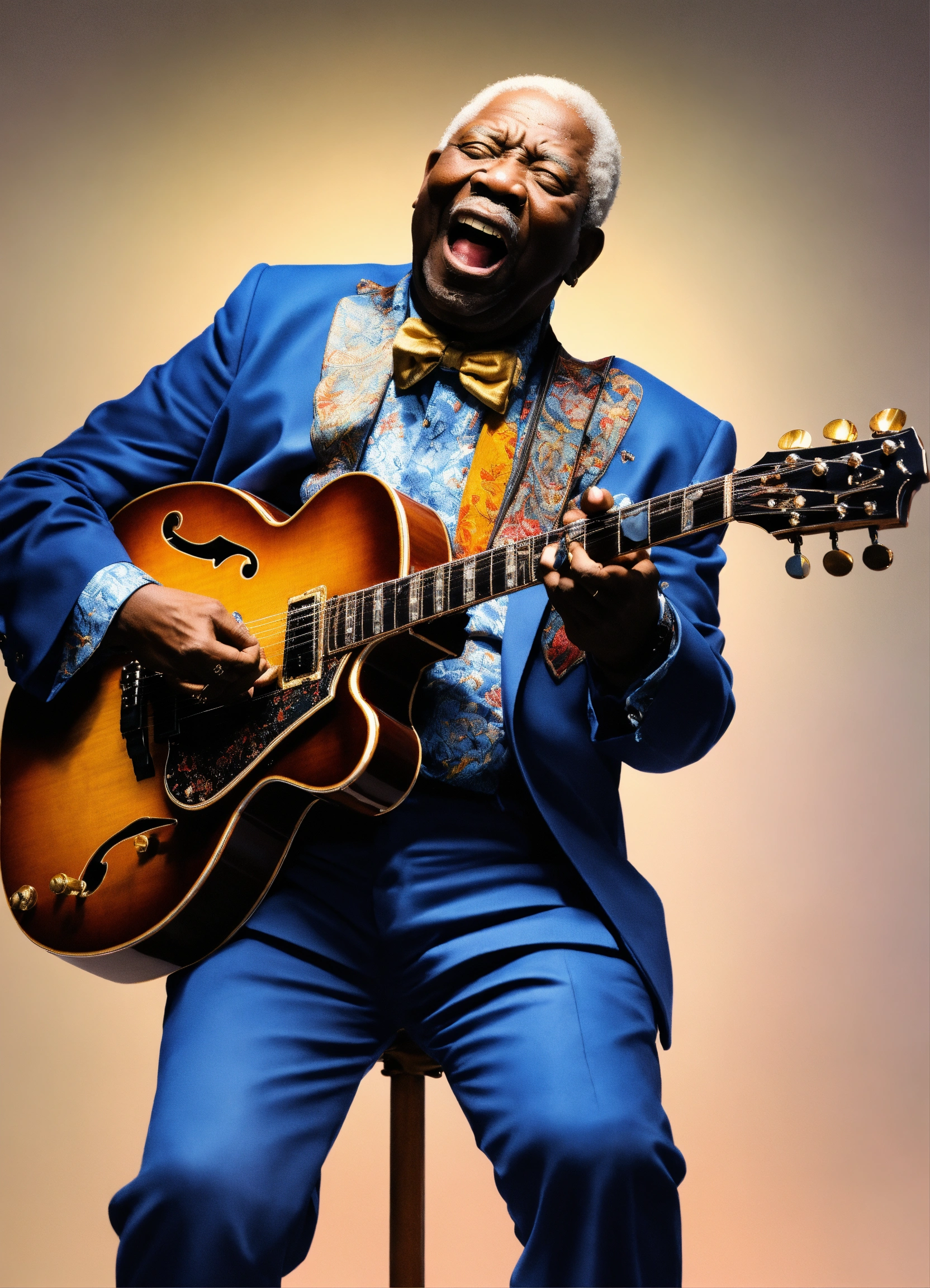 Plain white background, solid white back ground, highly detailed representation of an anatomically correct, full body length portrait, full length image, standing, color photo realistic image of an animated, blues singer b b king, standing, singing, art by greg rutowski and norman rockwell, white background, ultra hd, realistic, vivid colors, highly detailed, uhd drawing, pen and ink, perfect composition, beautiful detailed intricate insanely detailed octane render trending on artstation, 8k artistic photography, photorealistic concept art. soft natural volumetric cinematic perfect light