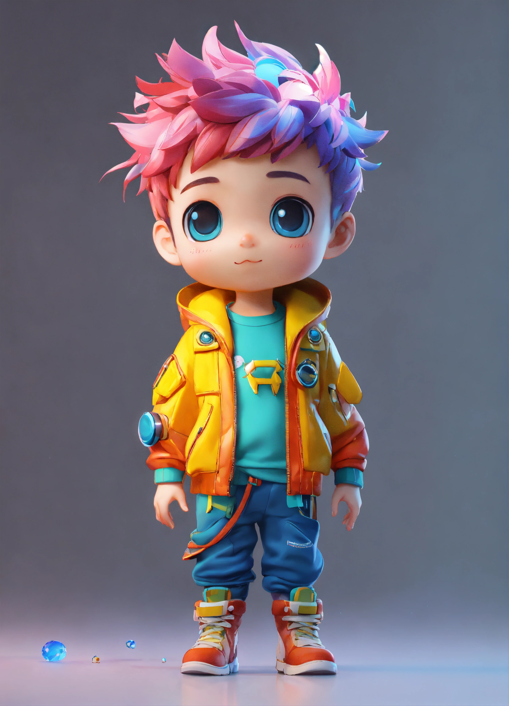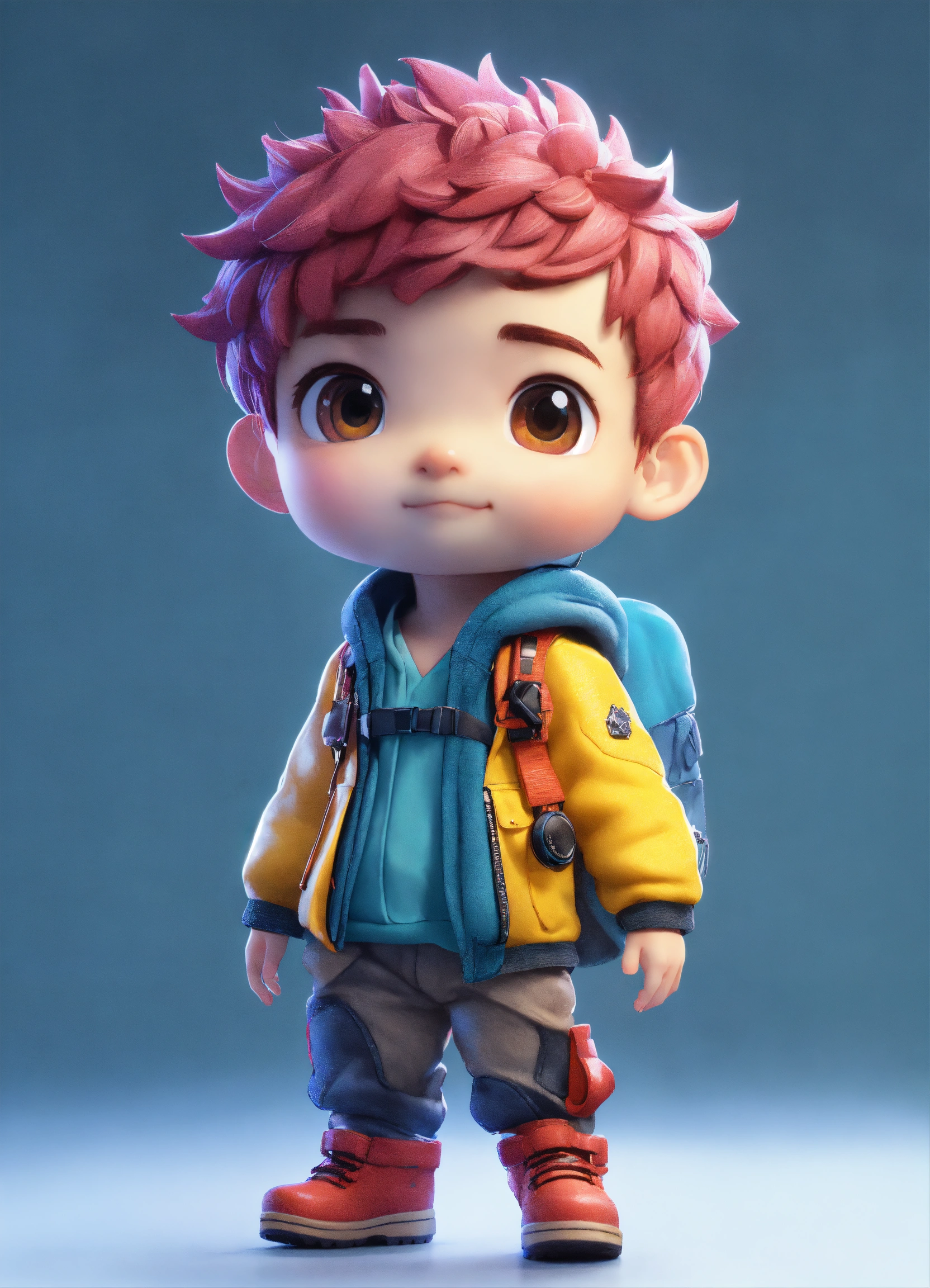 4d photographic image of full body image of a cute little chibi boy surreal, vivid colors octane render trending on artstation, artistic photography, photorealistic concept art, soft natural volumetric cinematic perfect light, uhd white background
