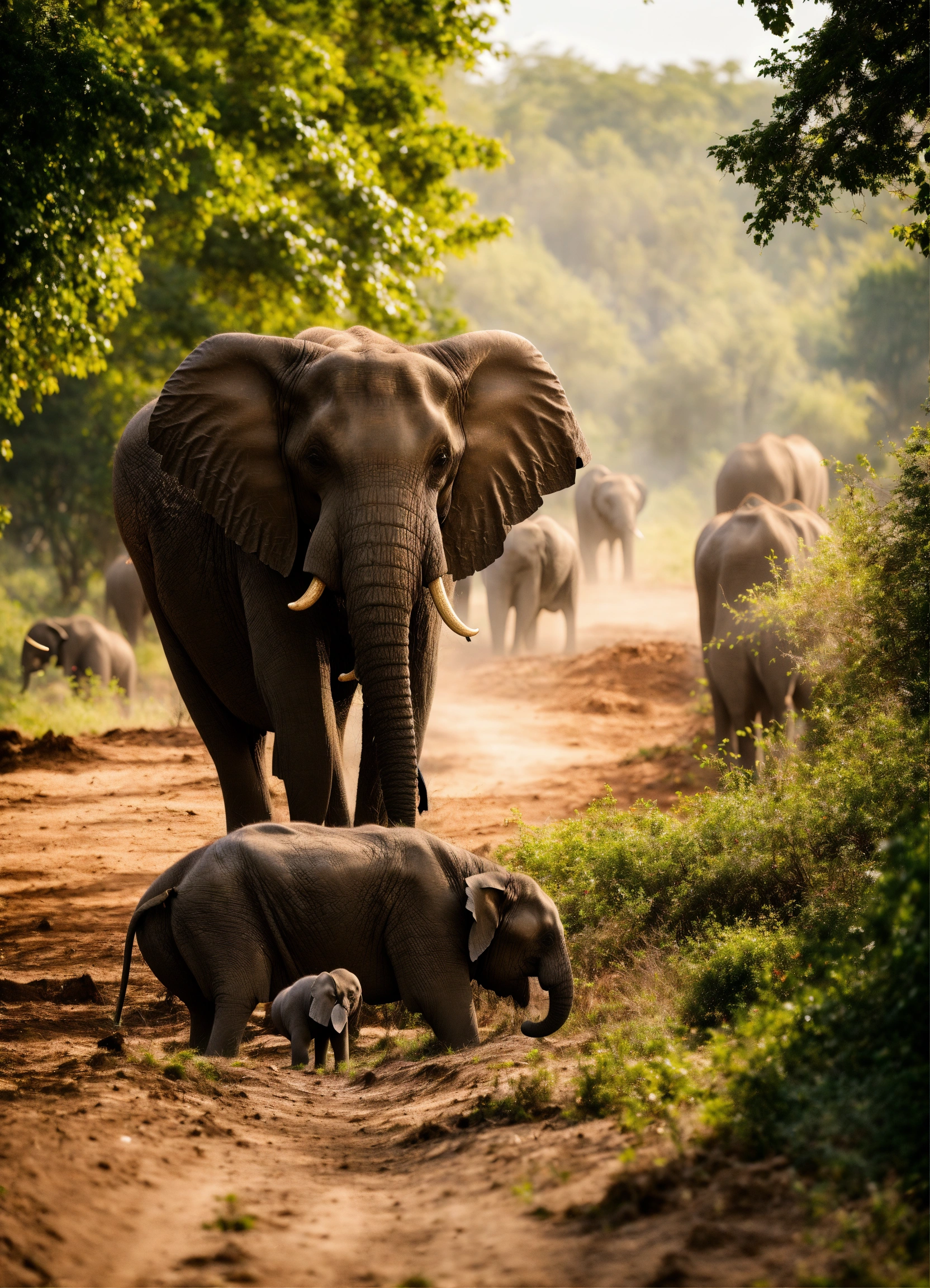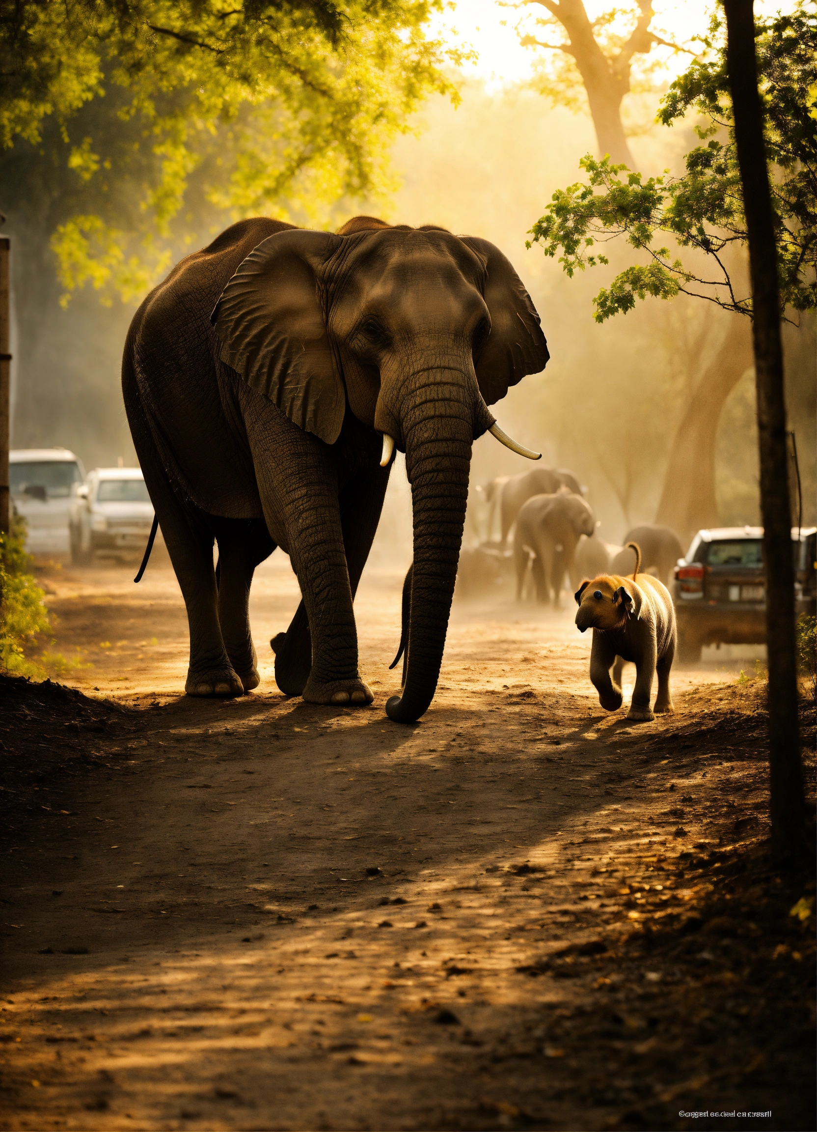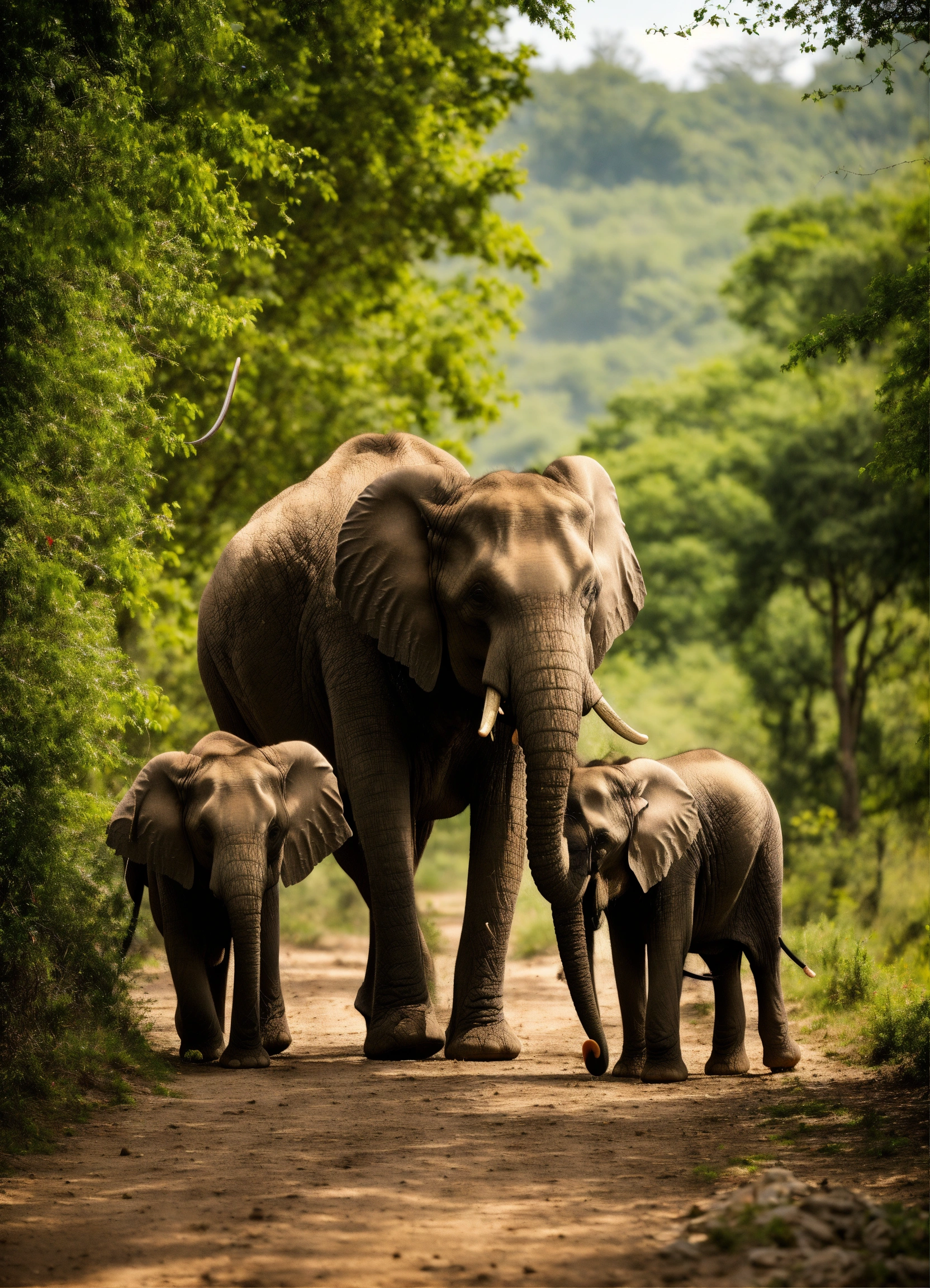 Une image montrant des éléphants se déplaçant en toute sécurité dans un environnement où les chiens-gardiens les protègent