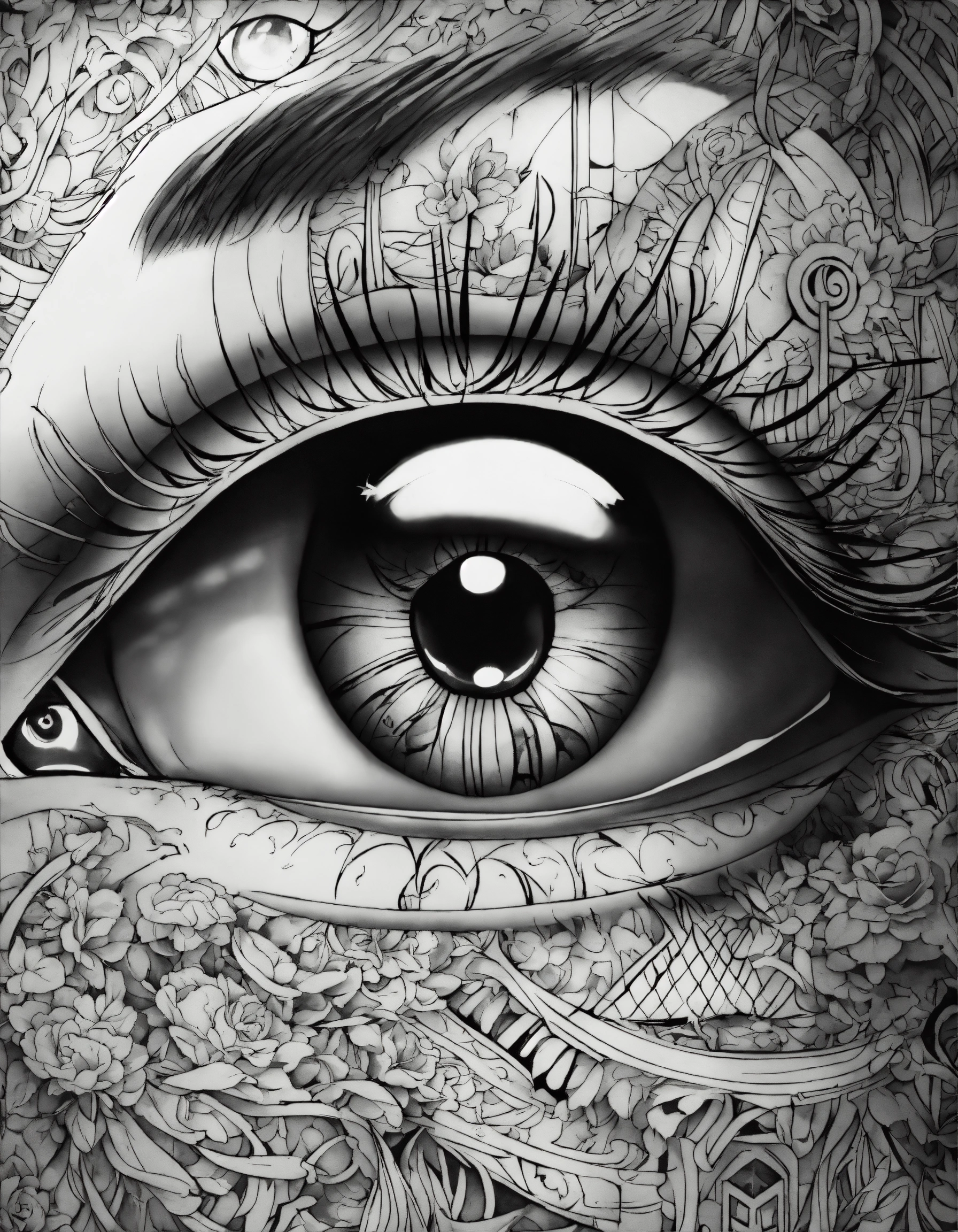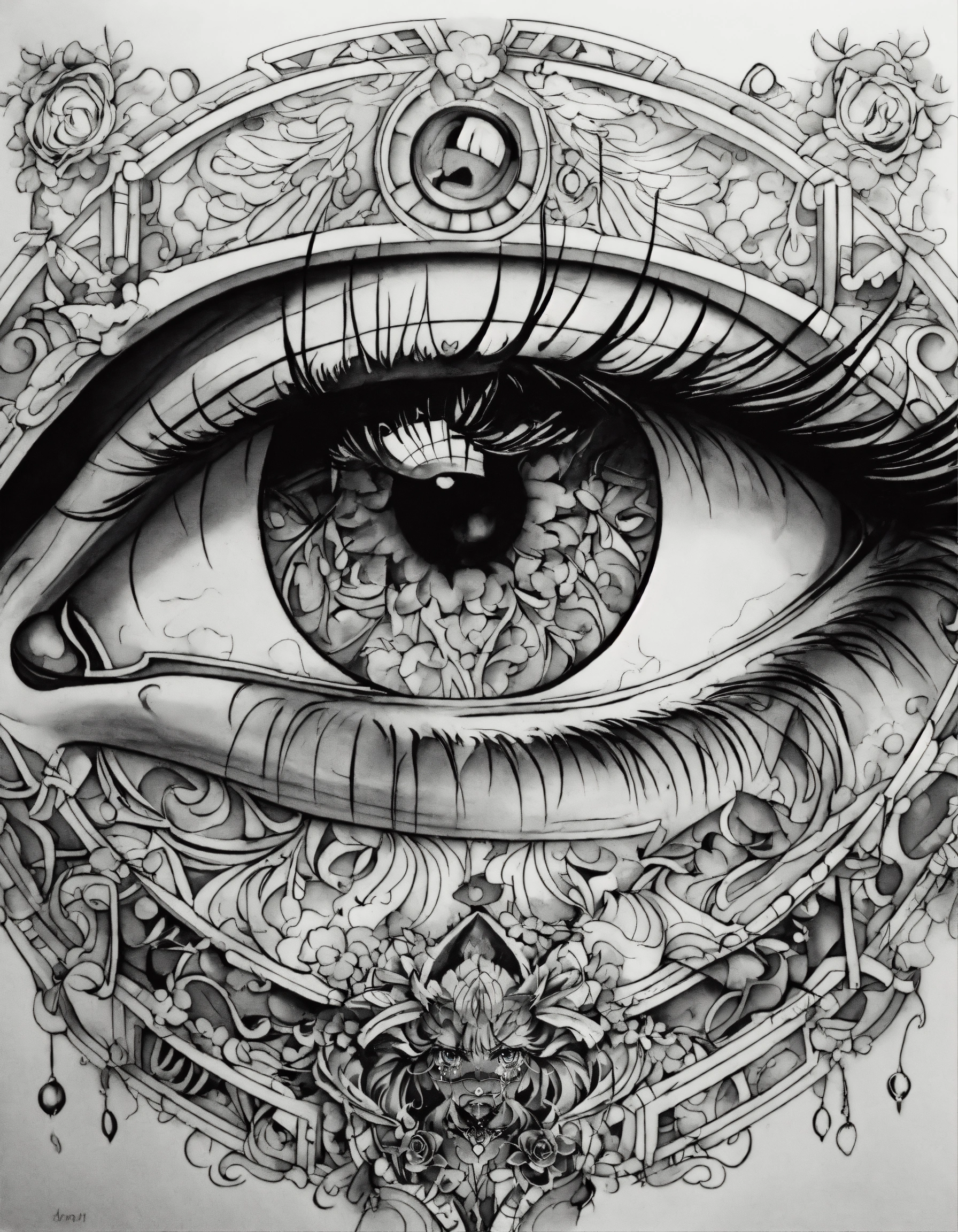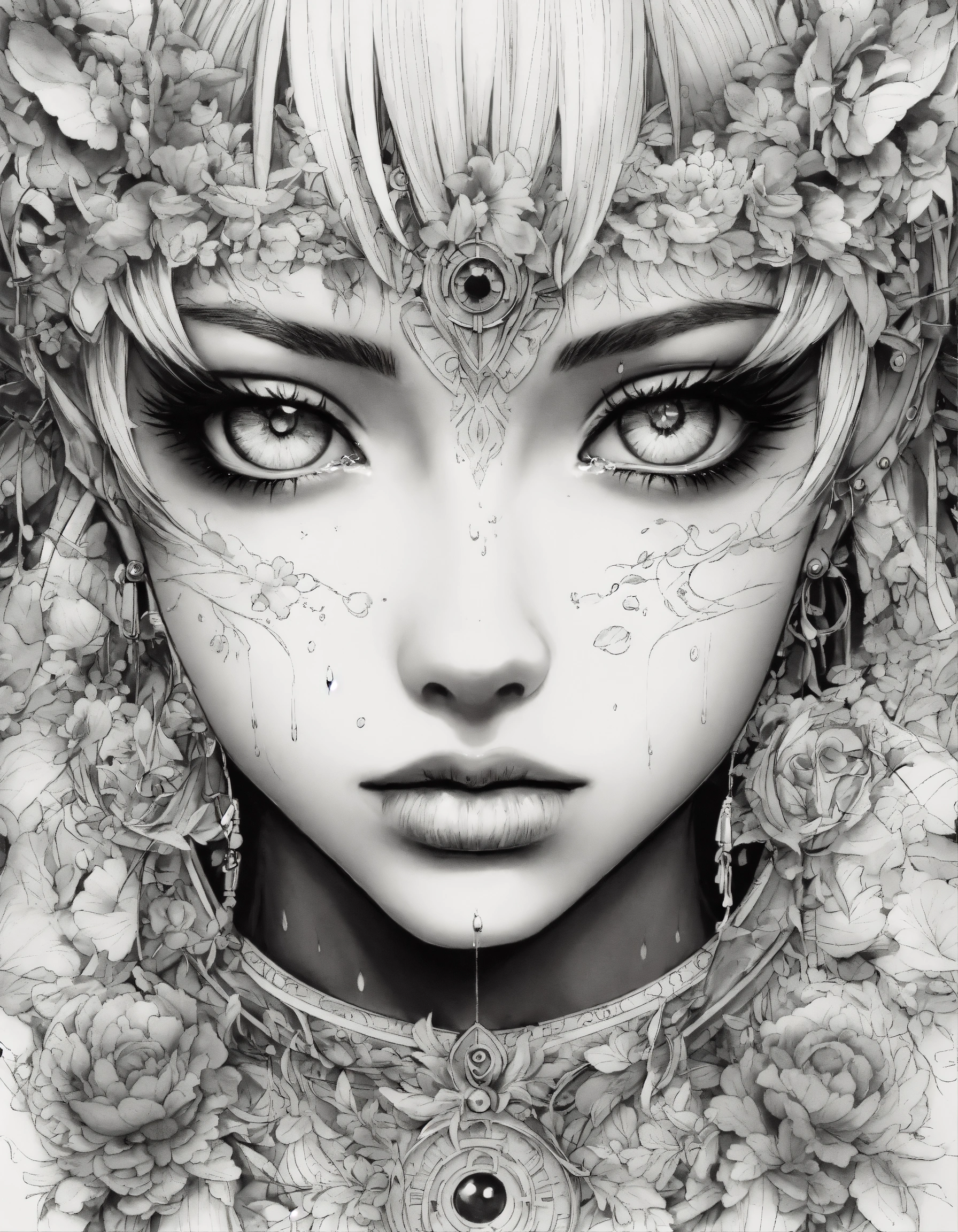 A tattoo stencil of anime eyes in blackwork style!, crying, in high definition, art station, very very detailed, many sharp edges