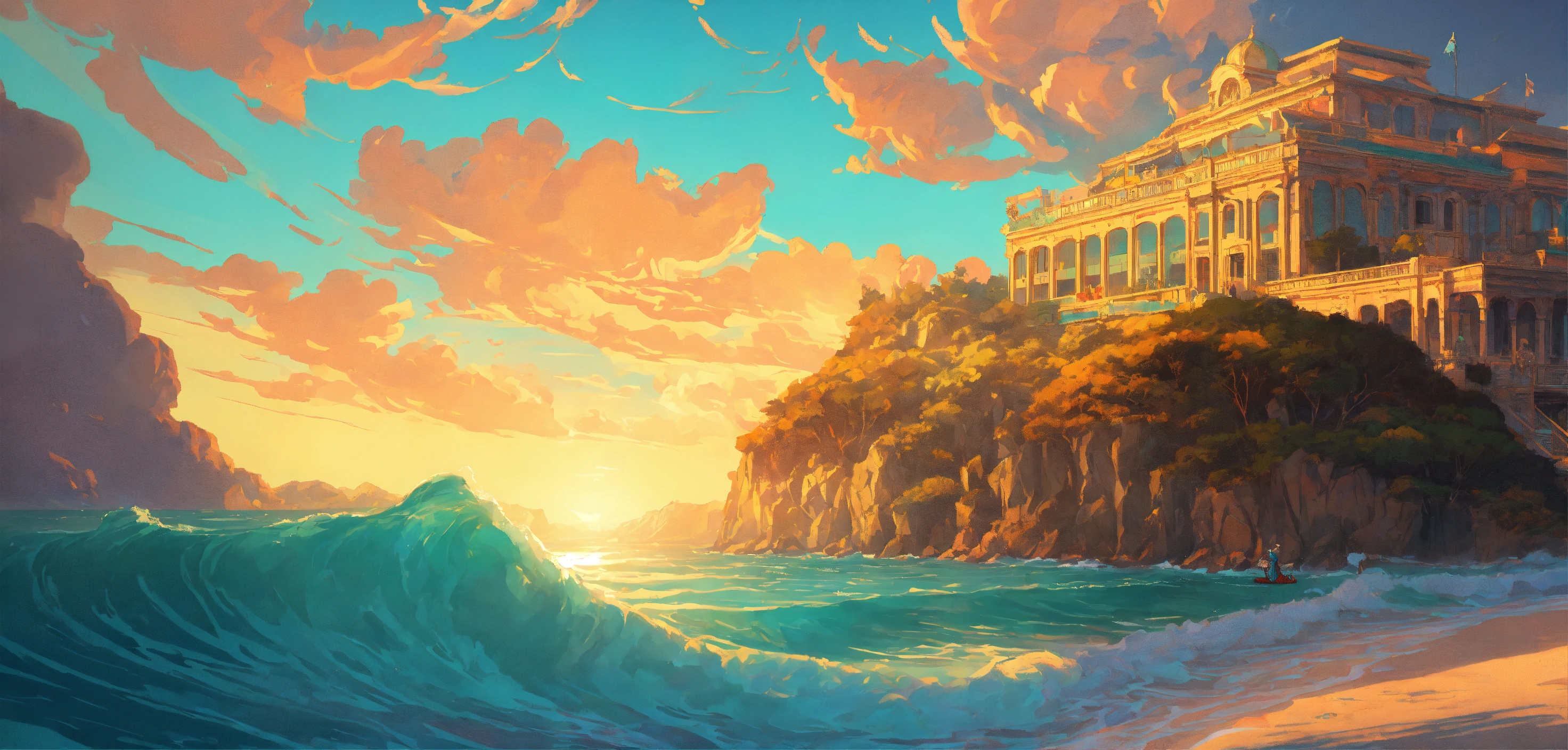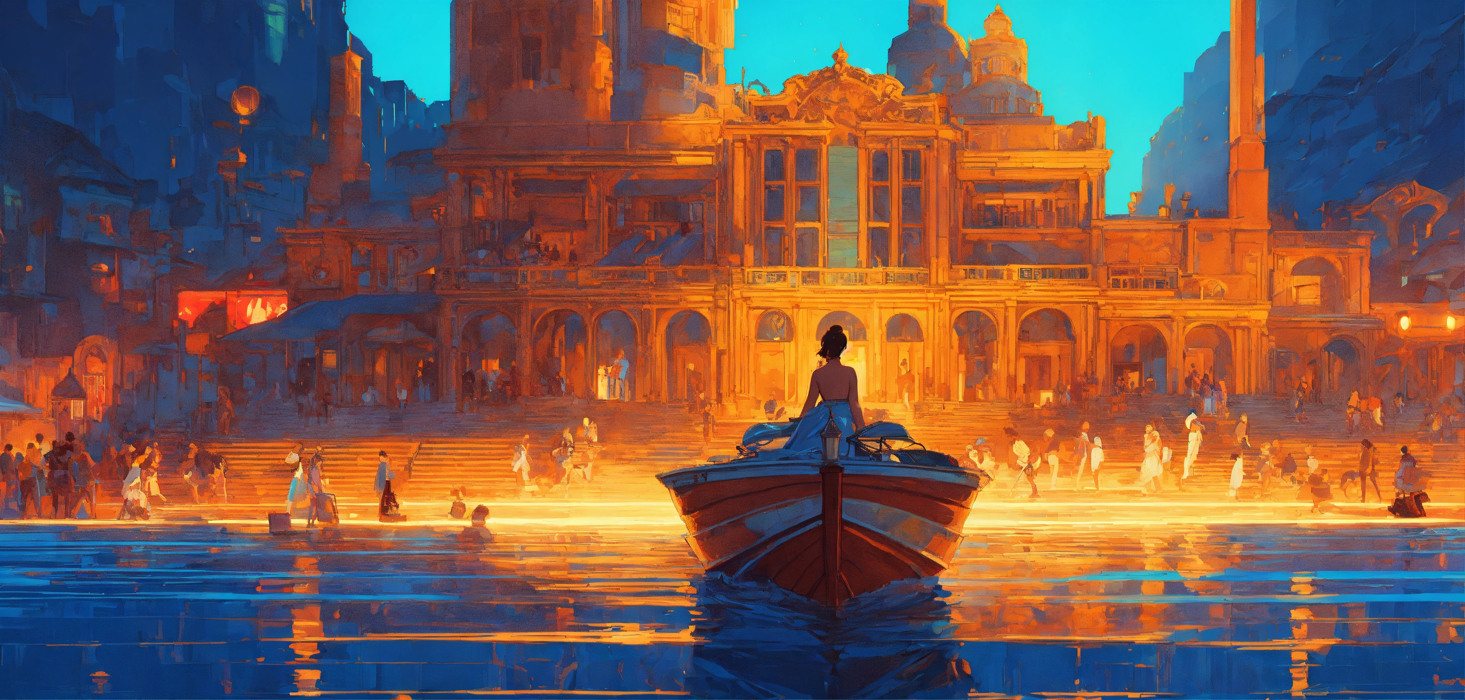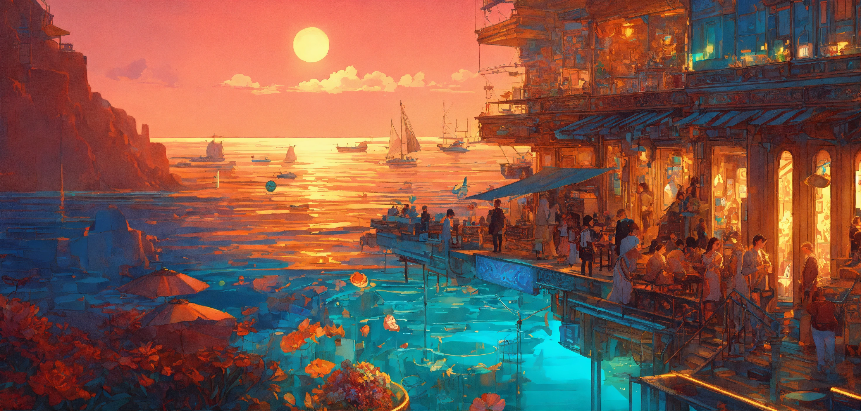 Ancient rich fantasy ocean city, grecian architecture, blue and gold, ernst haeckel maria sibylla merian. tristan eaton, victo ngai, artgerm, rhads, ross draws, kaethe butcher, hajime sorayama, greg tocchini, virgil finlay, fantasy, colors, neon lights, digital painting, pixiv, by ilya kuvshinov, neon lights, 3d, perspective