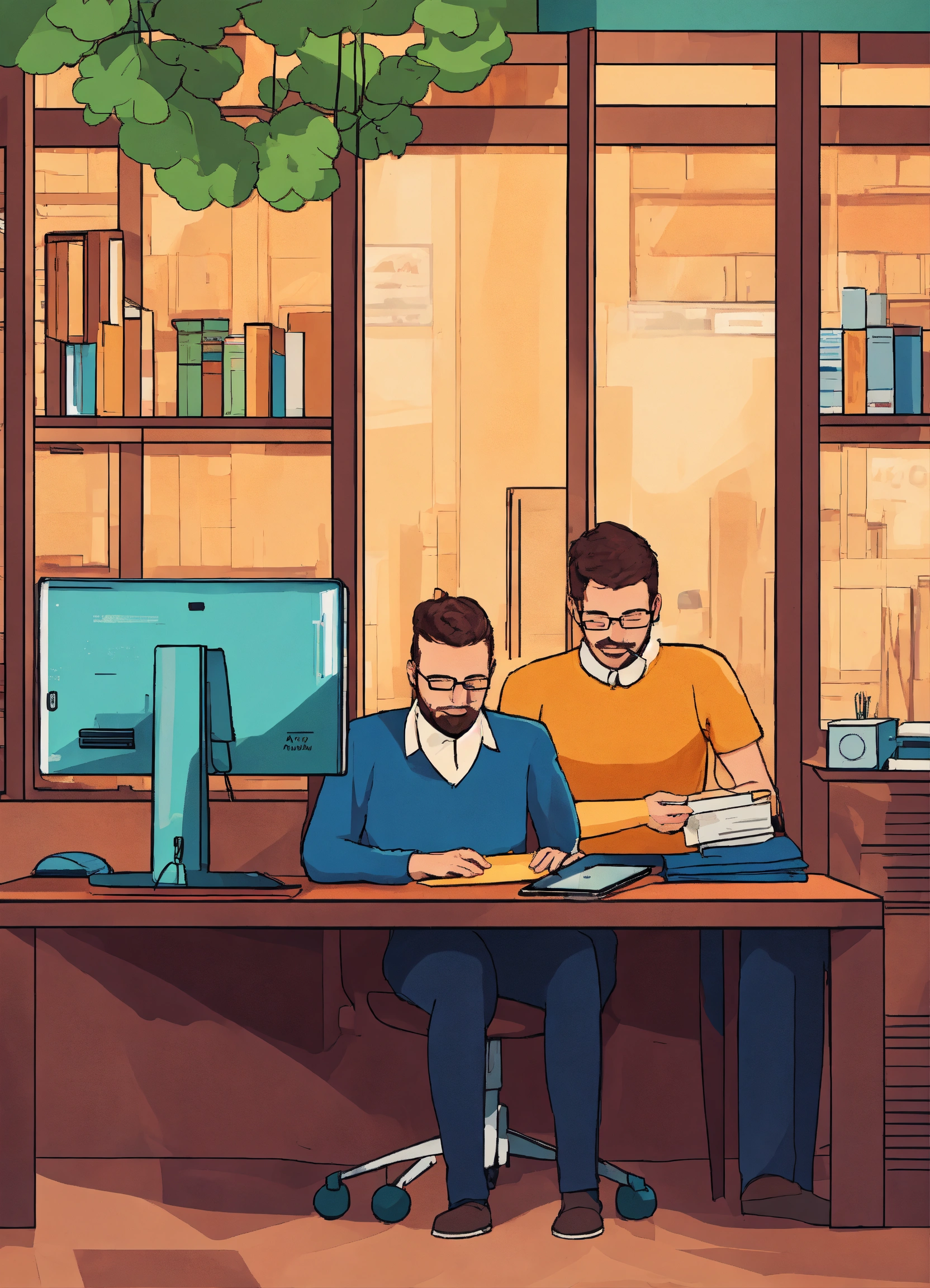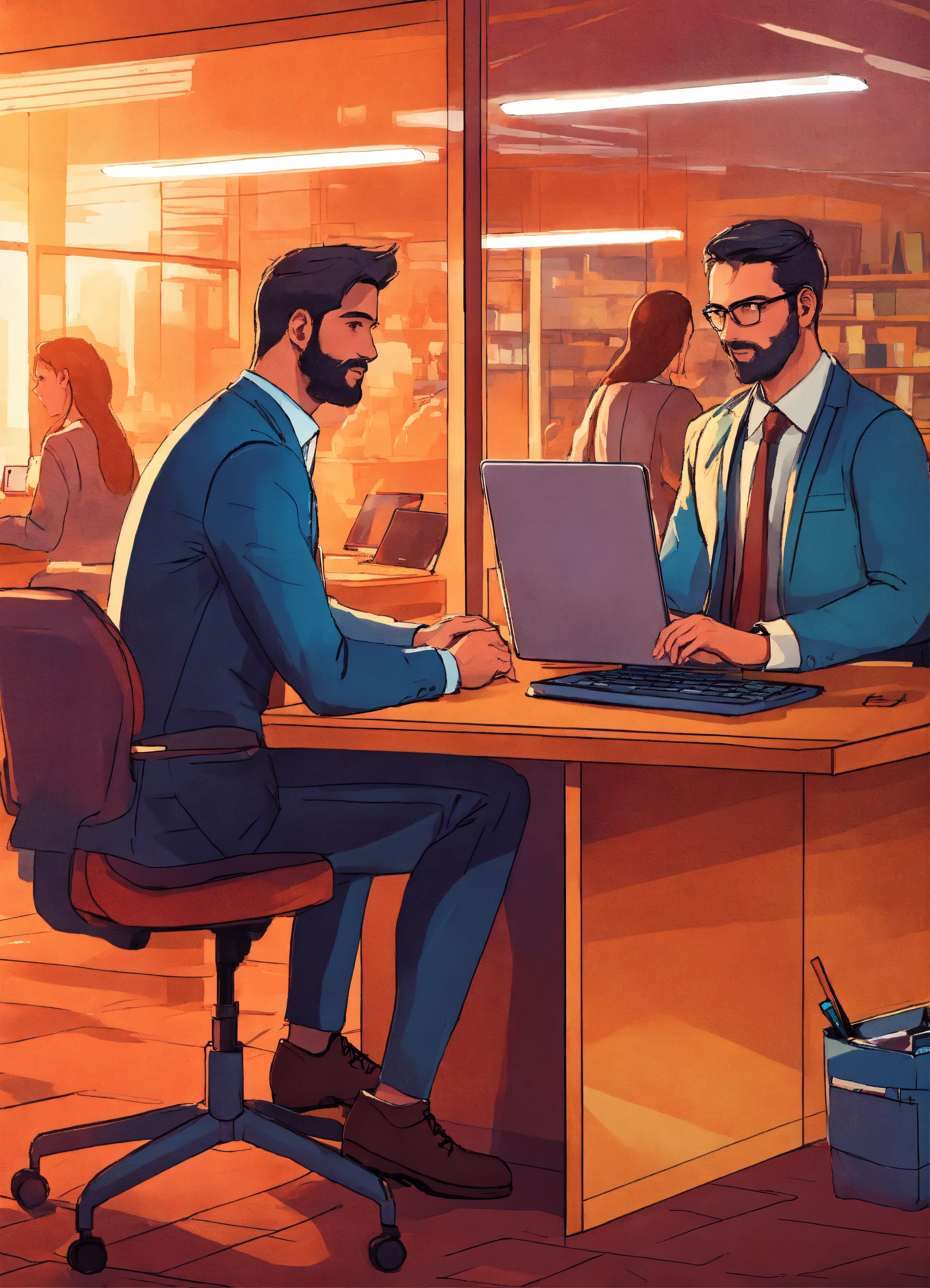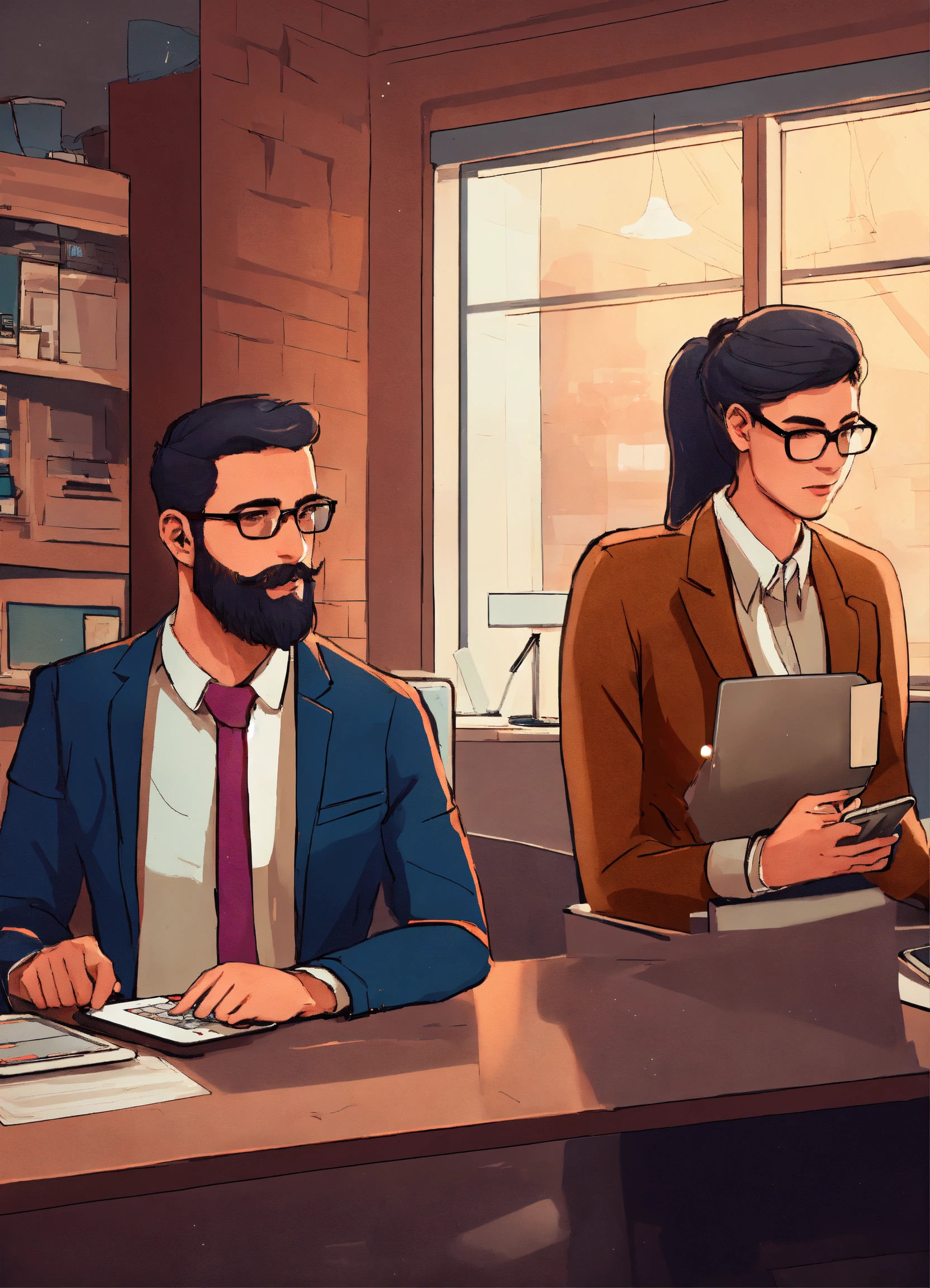 Área de soporte al cliente con dos personas, cliente y trabajador, tablet, celular, teléfono, computadora, equipo de atención al cliente, canales de atención digital, whatsapp, facebook, correo, trabajador atendiendo a un cliente, soporte a un cliente por parte del personal, oficina en un banco, dos a tres personas, soporte ayuda