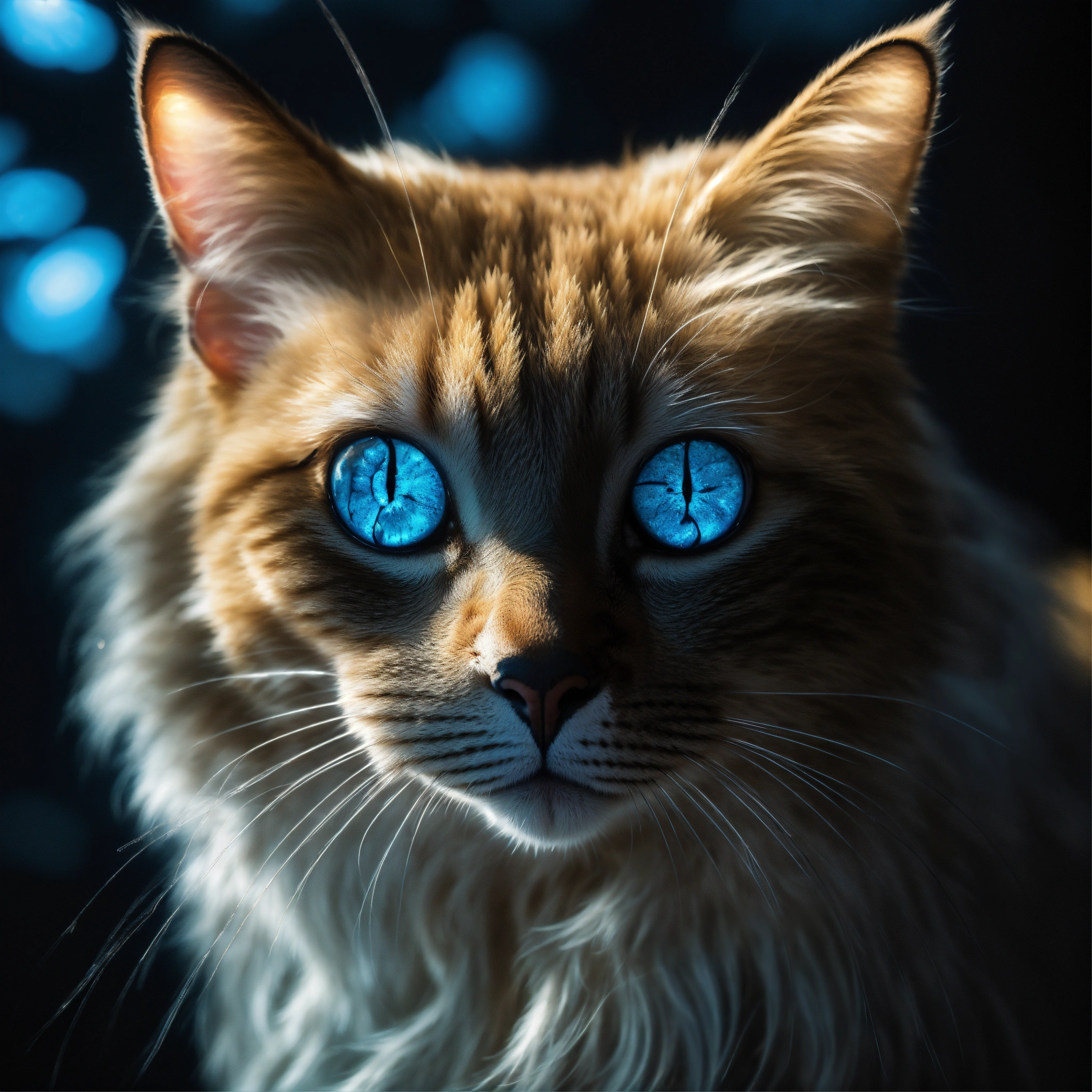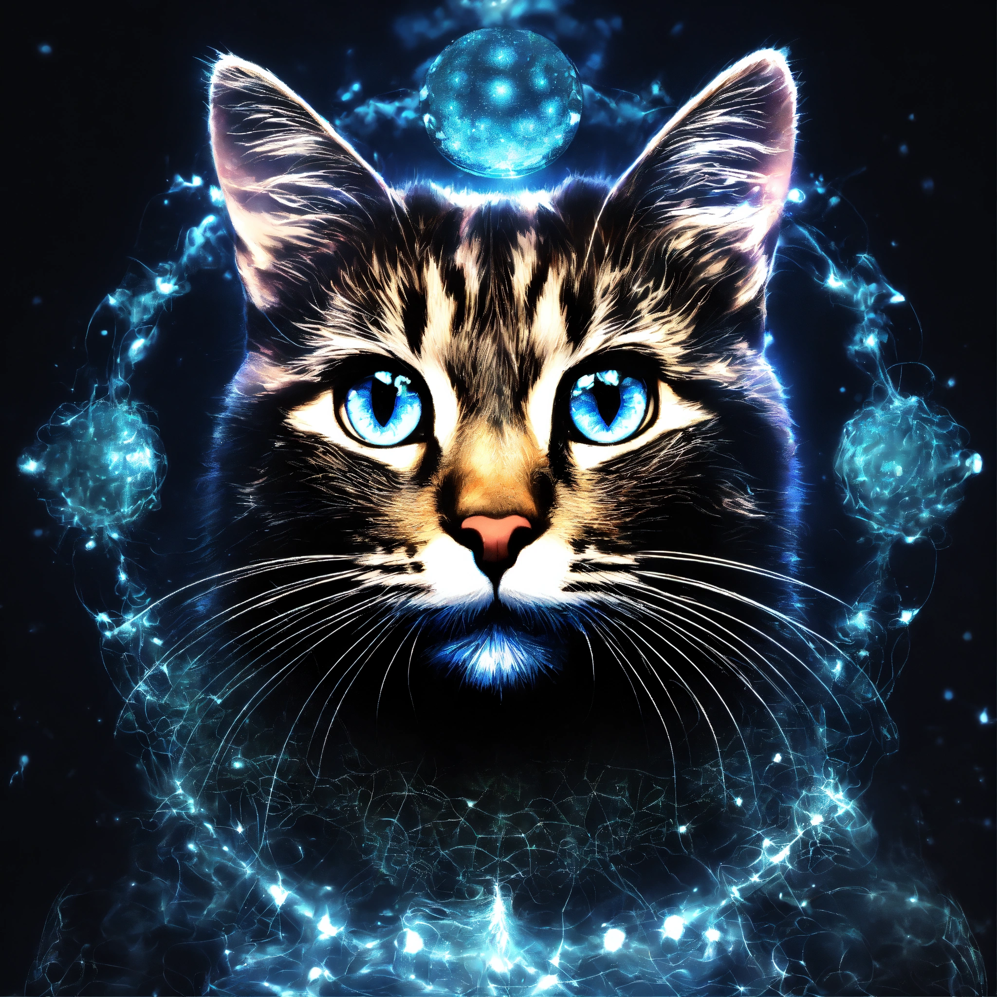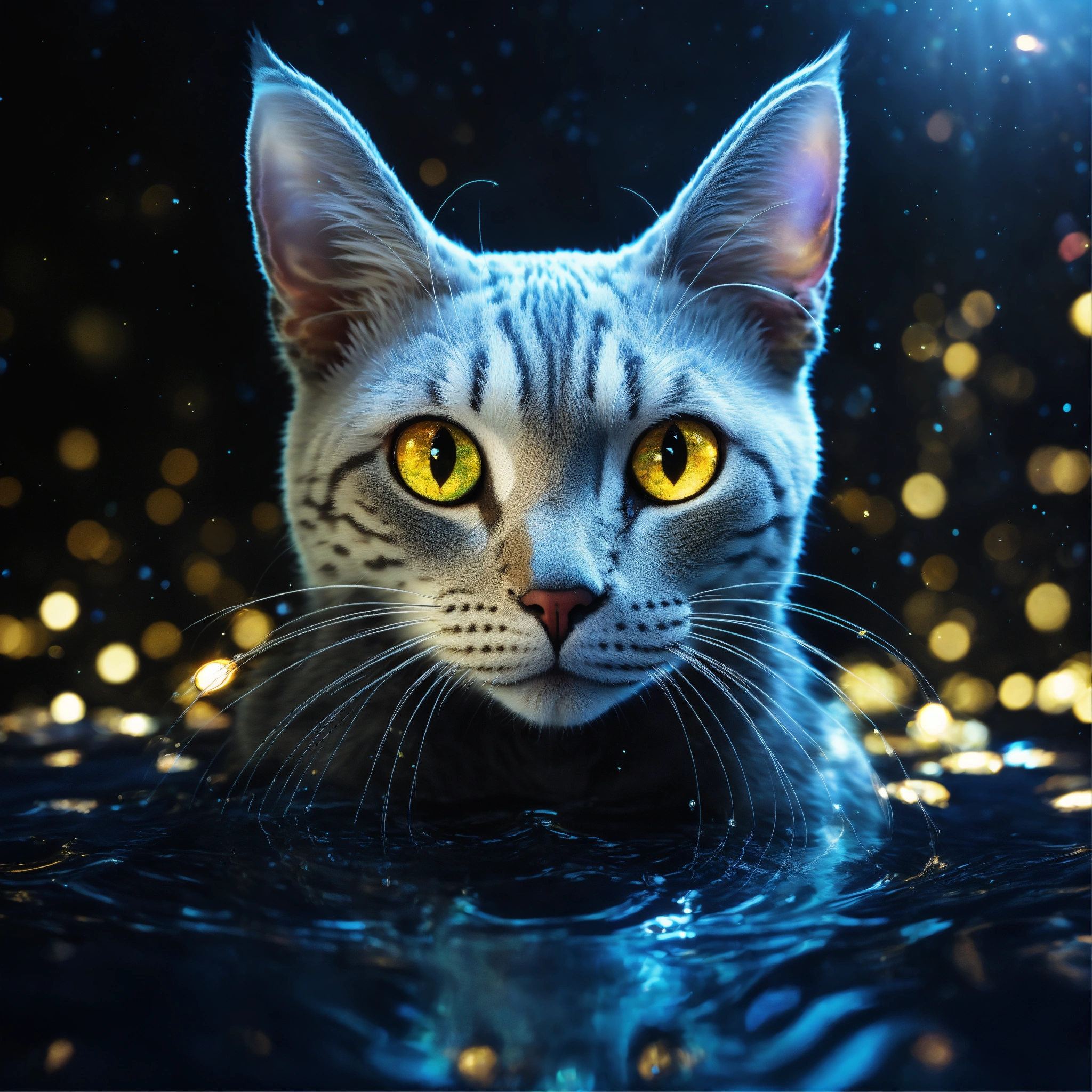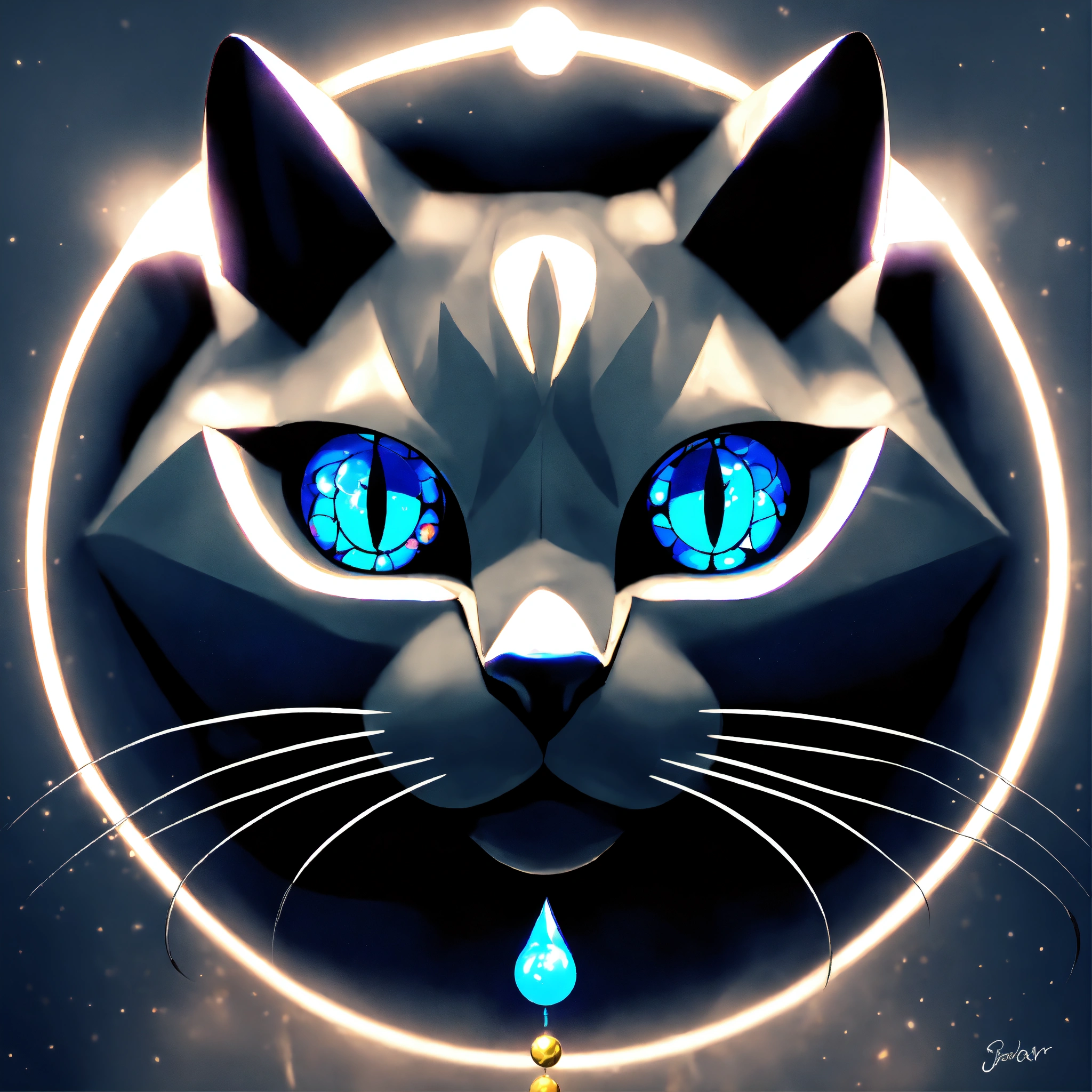 Underwater cat portrait photography, long exposure, graceful elegant angelic cartoon smiley black and white cosmic mystic cat face portrait facing front, blue eyes. front view. front portrait, no angle. cartoon style. backlit. sacred geometry patterns on the face, in the style of disney, pixar, tim burton, beauty and the beast, and peter pan. enchanting glowing orb aura. fractal, volumetric lighting, backlit. the power of the god. god-like, spirit-like. no gender. all genders. white background, no background, zero background, 0 background. nothing around the face.